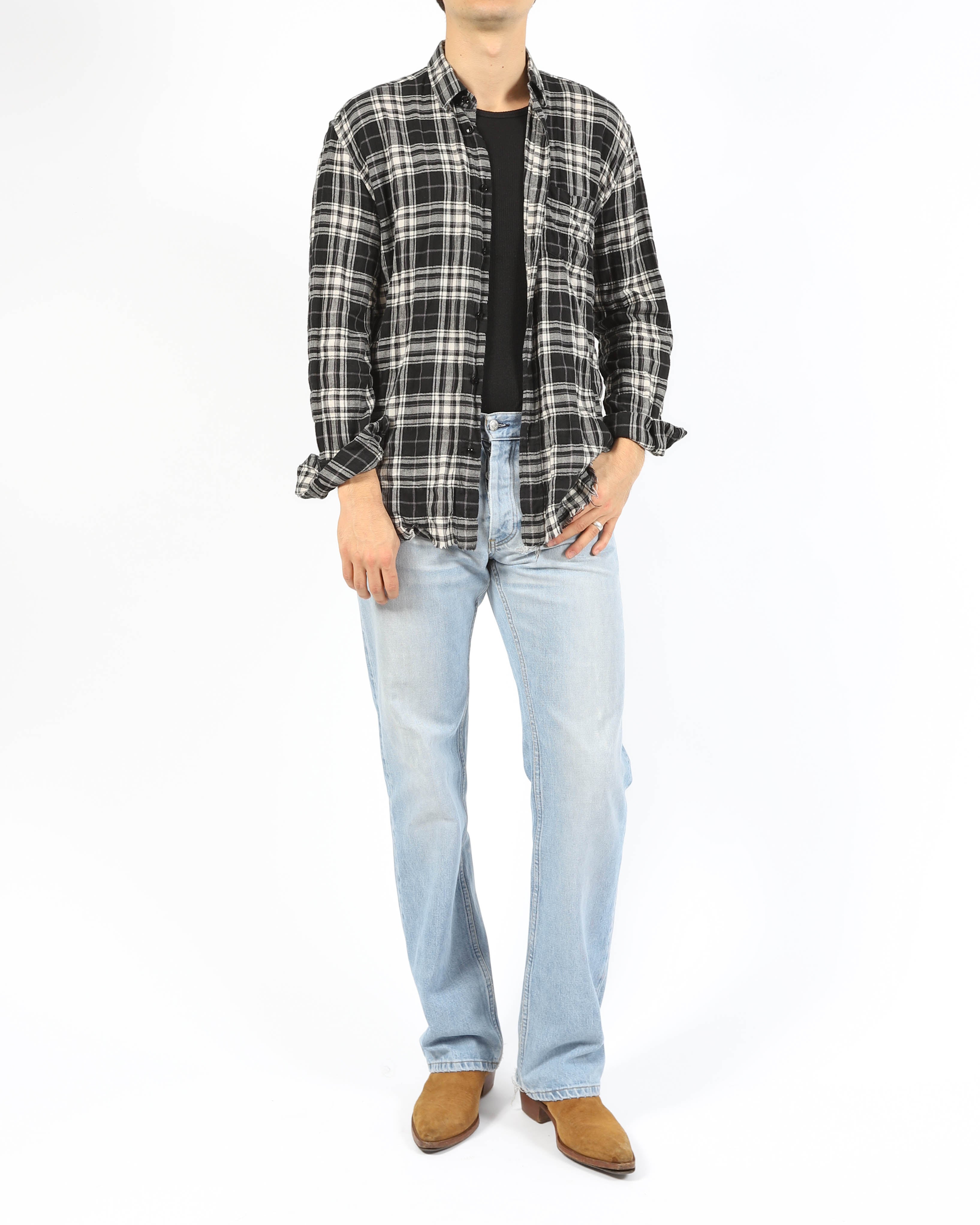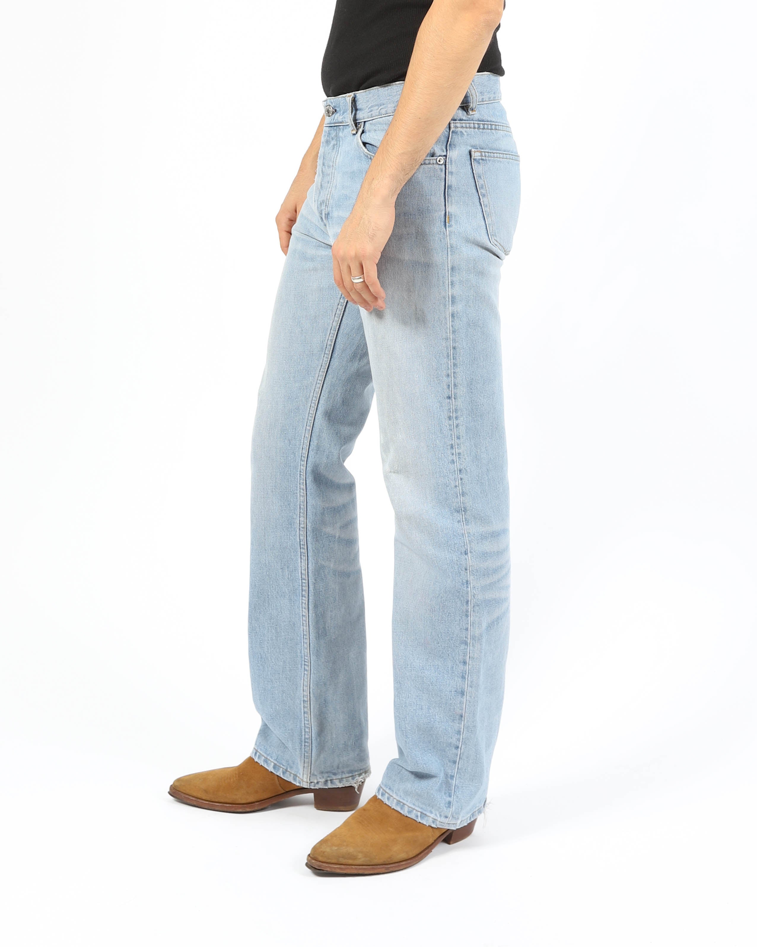 Classic five pocket construction and tonal stitching keep the design minimal and direct, emphasizing the quality of the denim. The silhouette draws from Helmut Lang’s late 90s approach to essential wardrobe pieces, combining precision with quiet restraint.