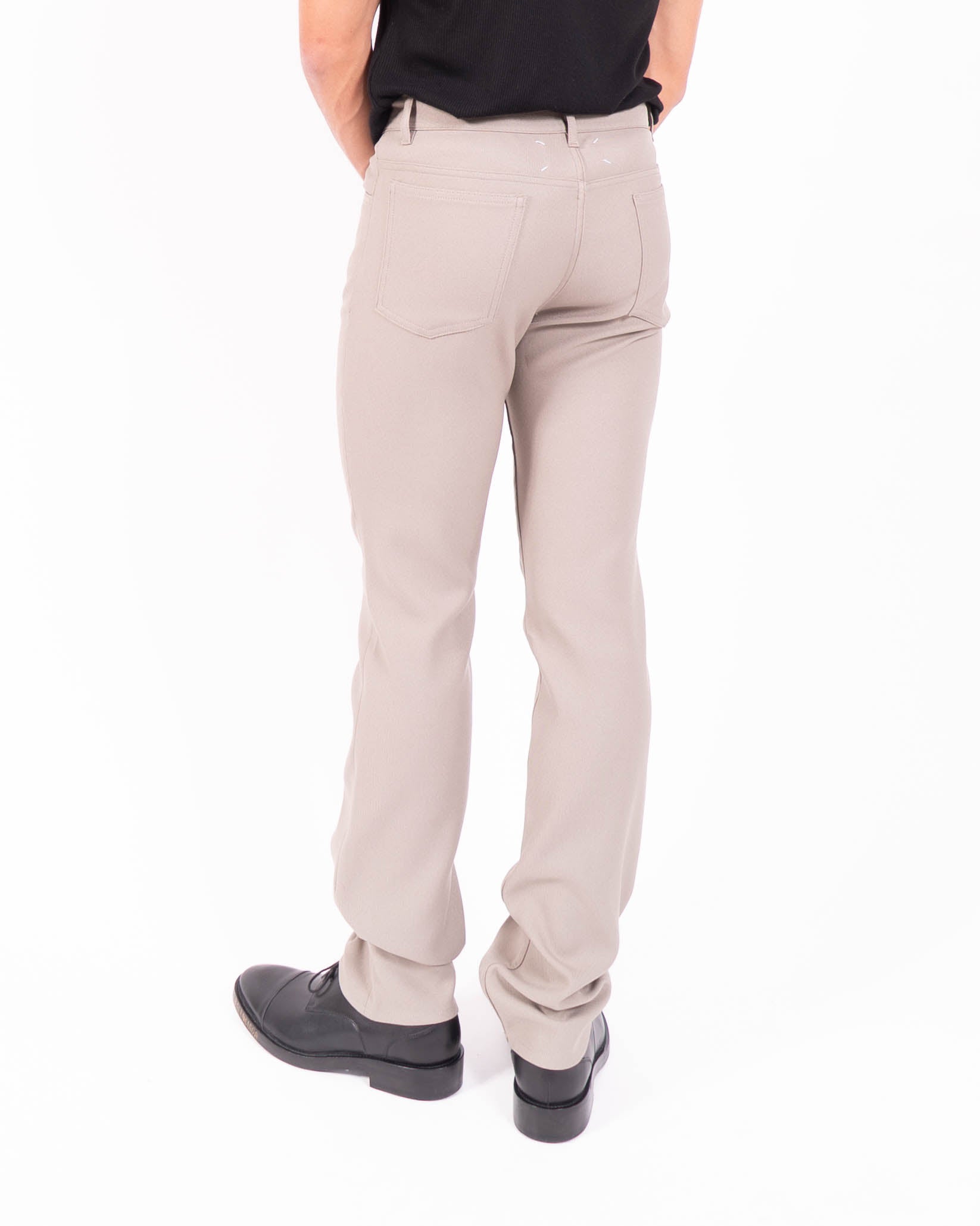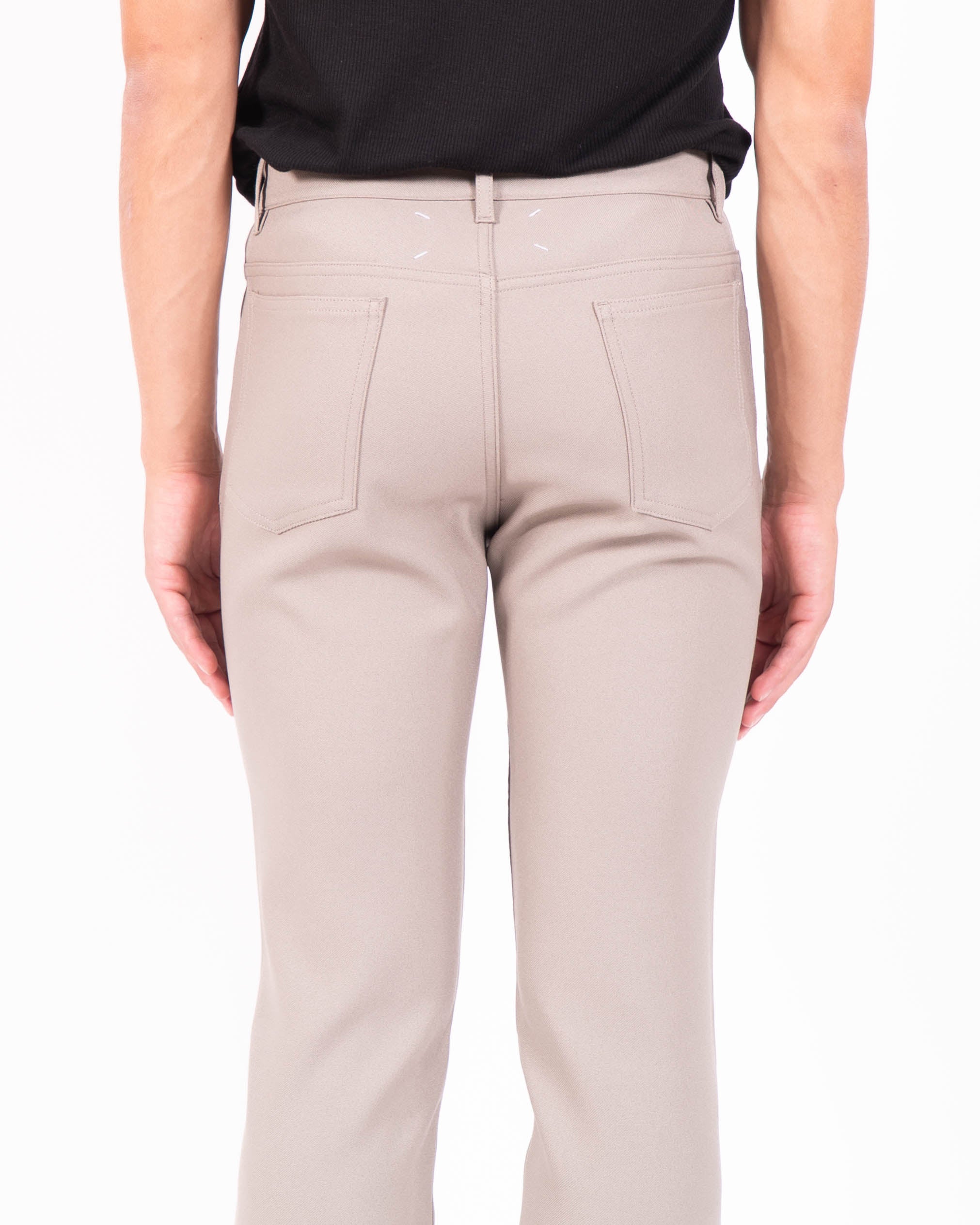 In keeping with the house’s codes, the trousers reinterpret classic menswear through subtle distortion, balancing restraint with a quiet subversion that has defined Margiela’s vision.