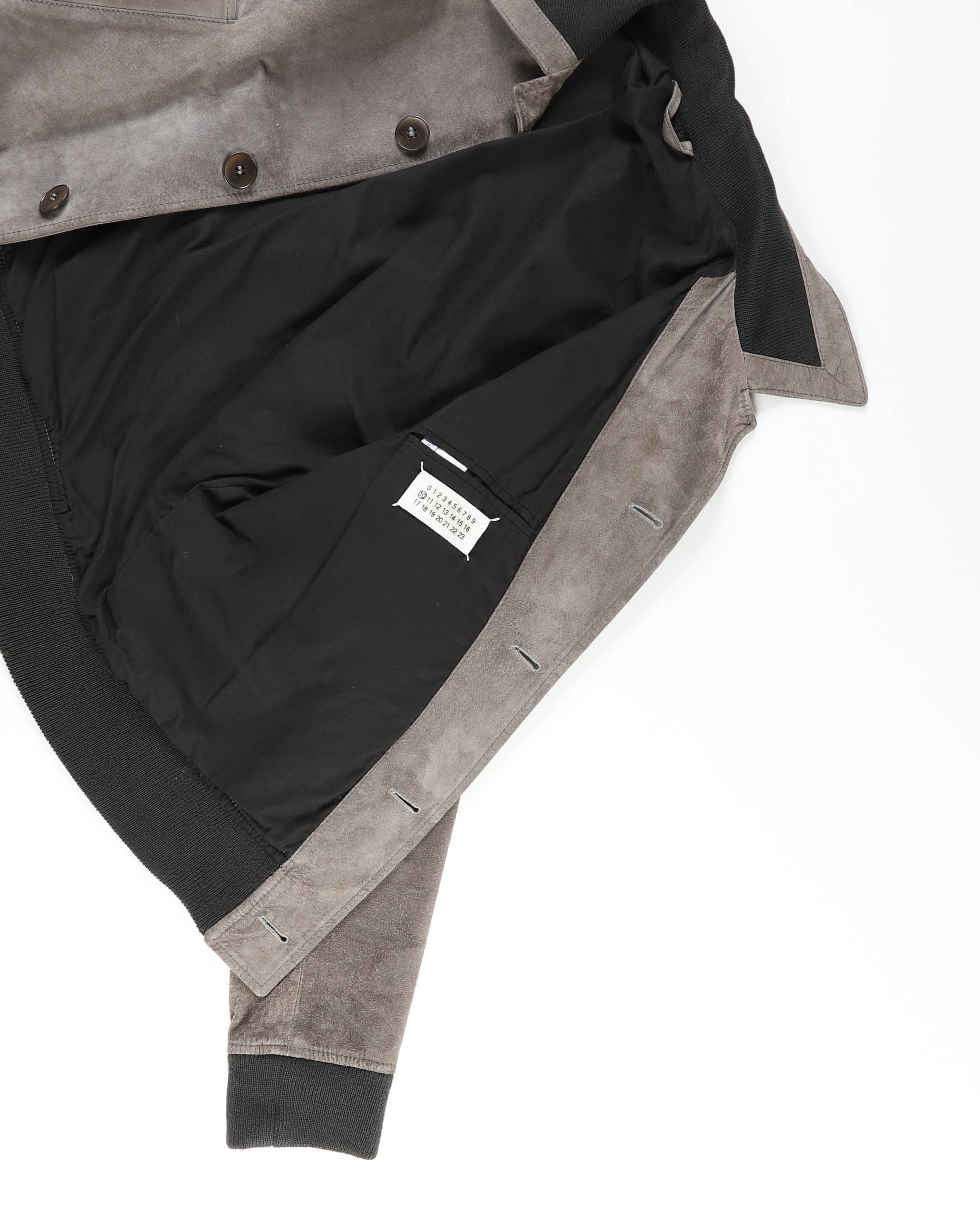 A zip front and minimal hardware keep the look refined and understated. The supple suede gives the jacket a rich, tactile finish that softens its structured outline. From FW03, the piece reflects Margiela’s early focus on subtle contrasts and a precise, deconstructed approach to outerwear.