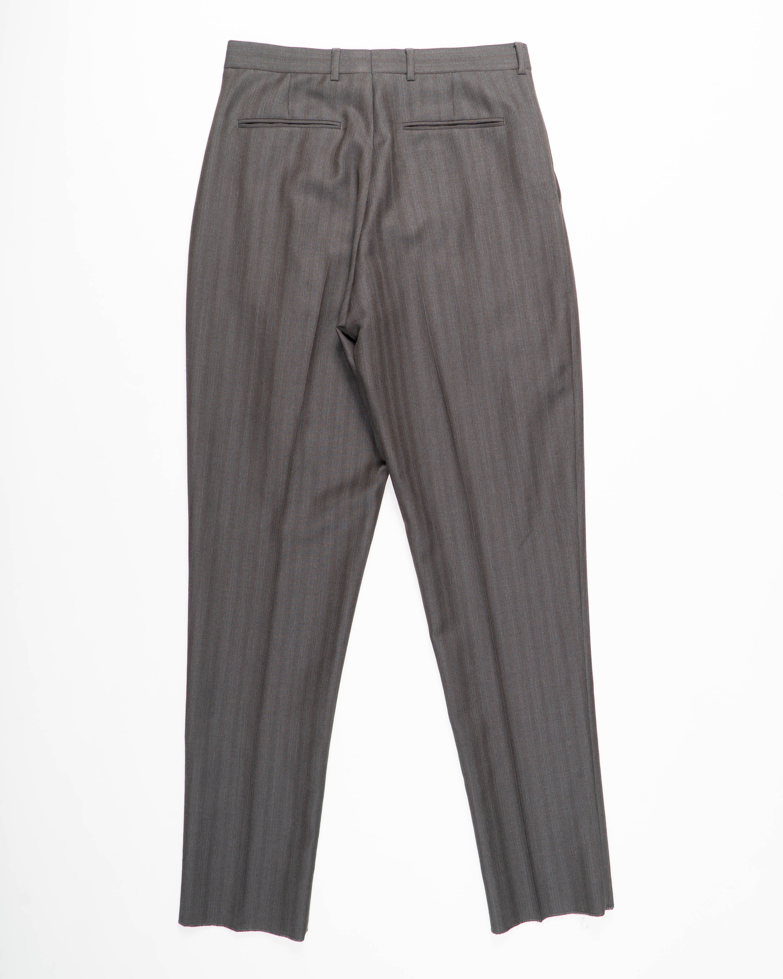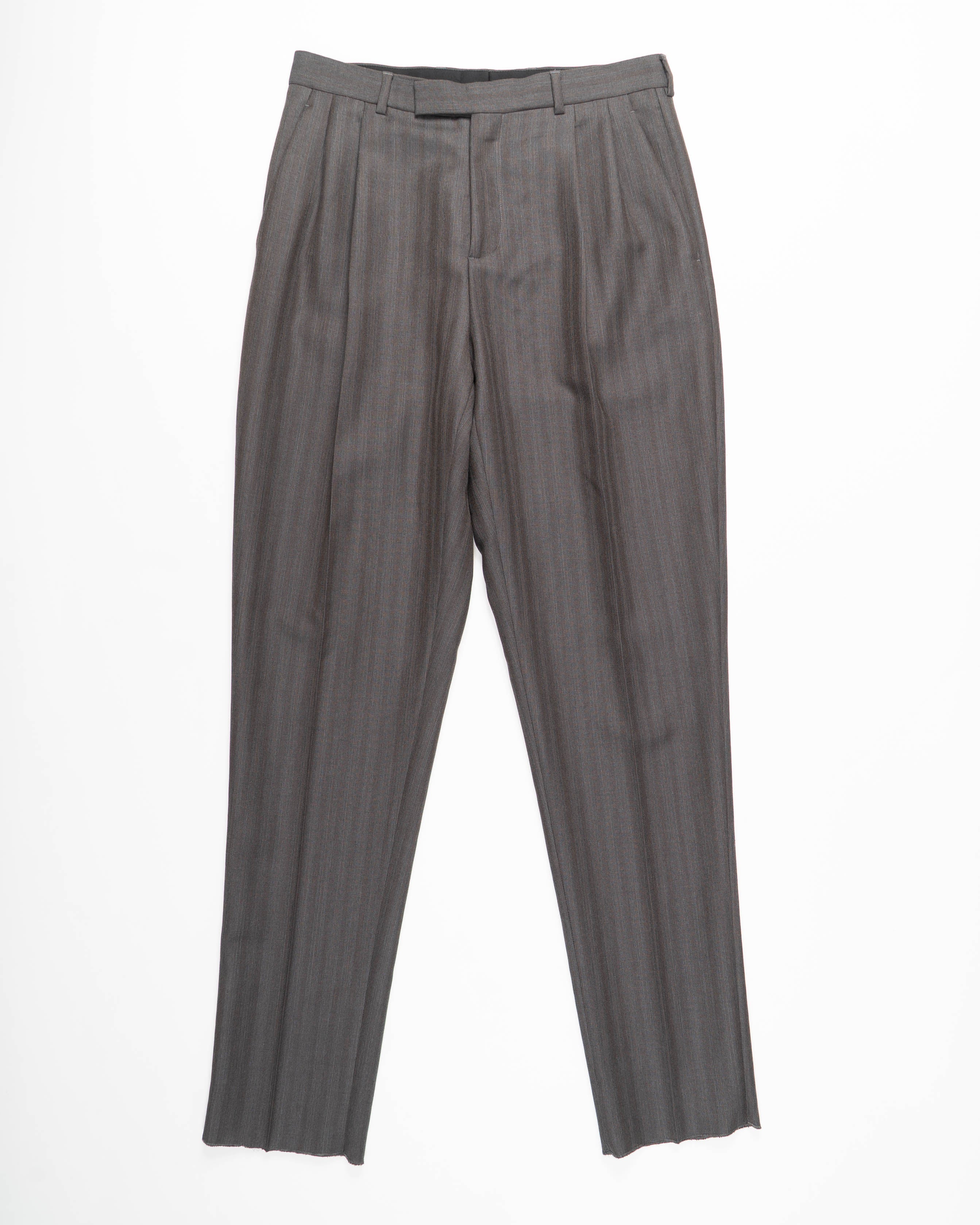 These high waisted pleated trousers in grey wool by Dior are understated yet beautifully structured. The soft, midweight wool drapes elegantly while maintaining a clean silhouette.