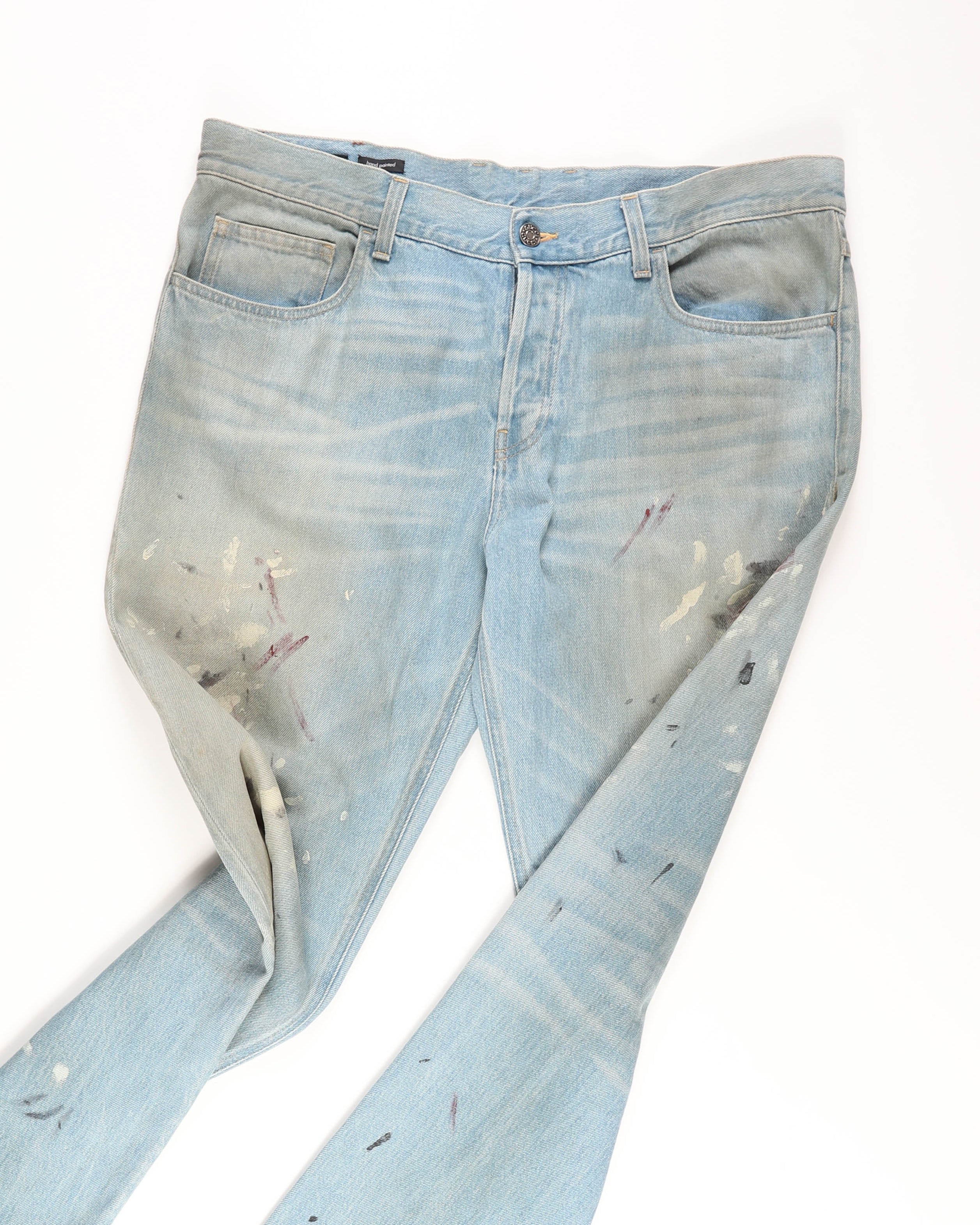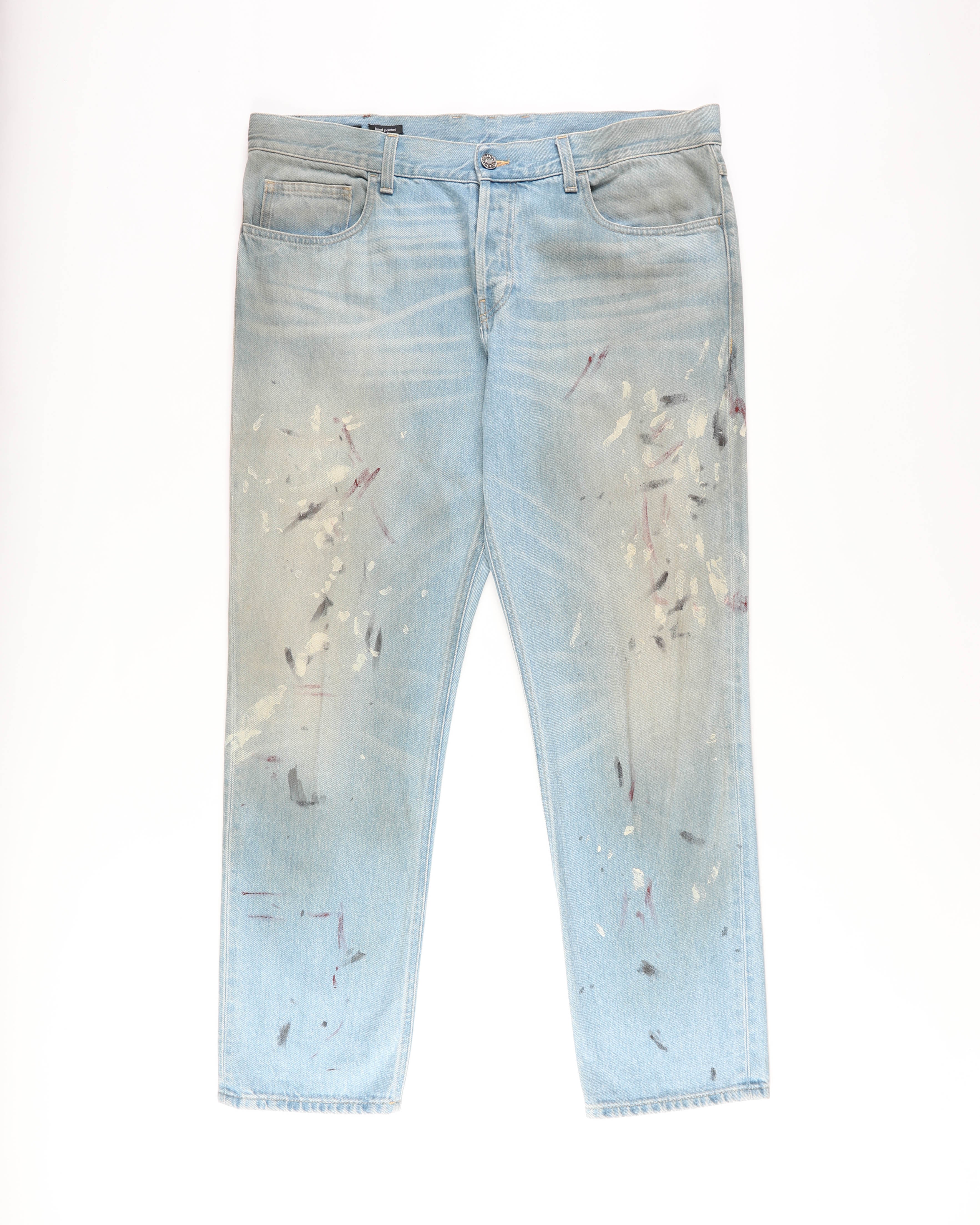 FW15 Relaxed Hand-Painted Jeans in Light Washed Denim