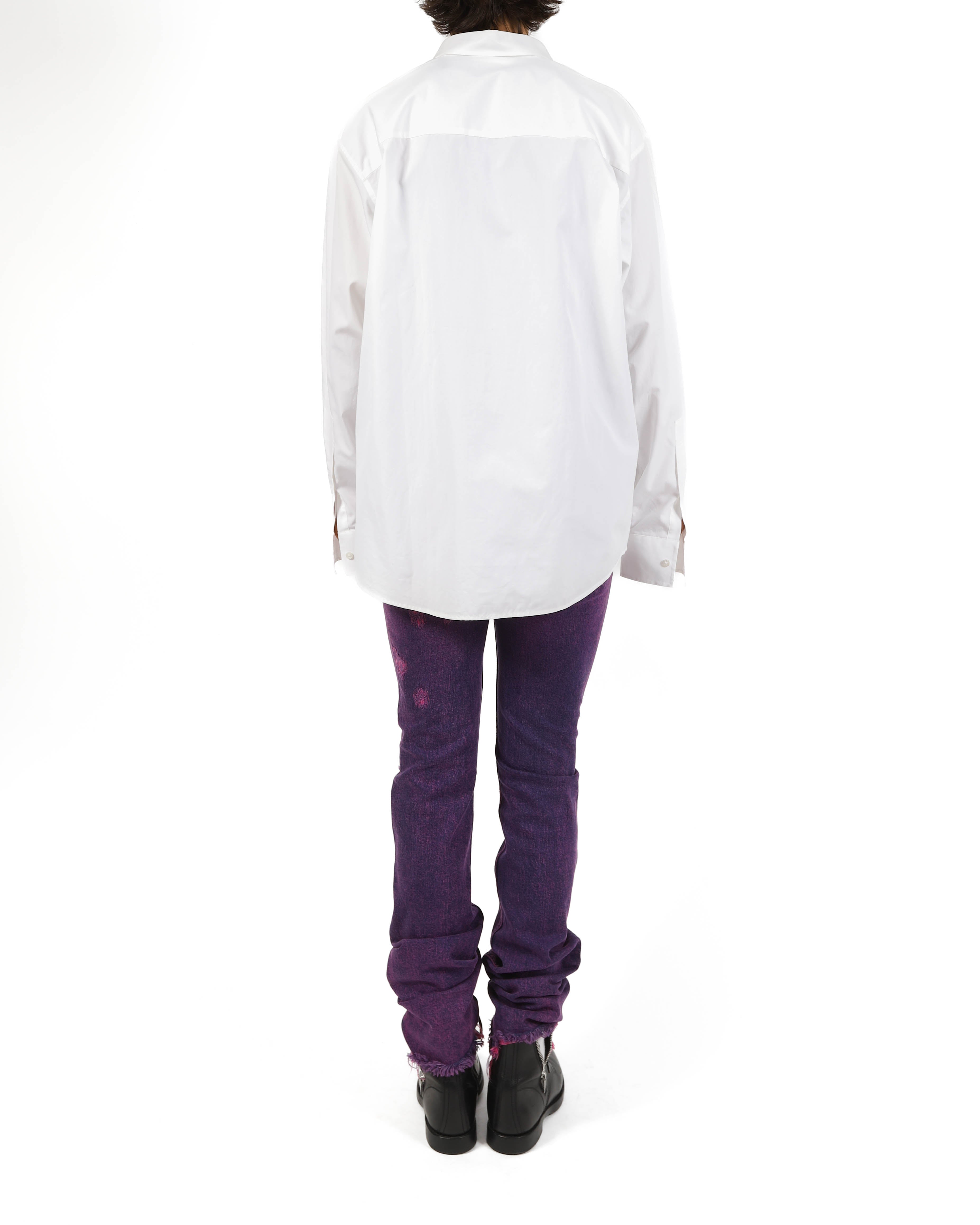 This oversized Brooke Shields shirt in white cotton by Calvin Klein 205W39NYC features a crisp silhouette and clean construction. Made from 100% cotton, the fabric holds its shape while remaining soft and lightweight.