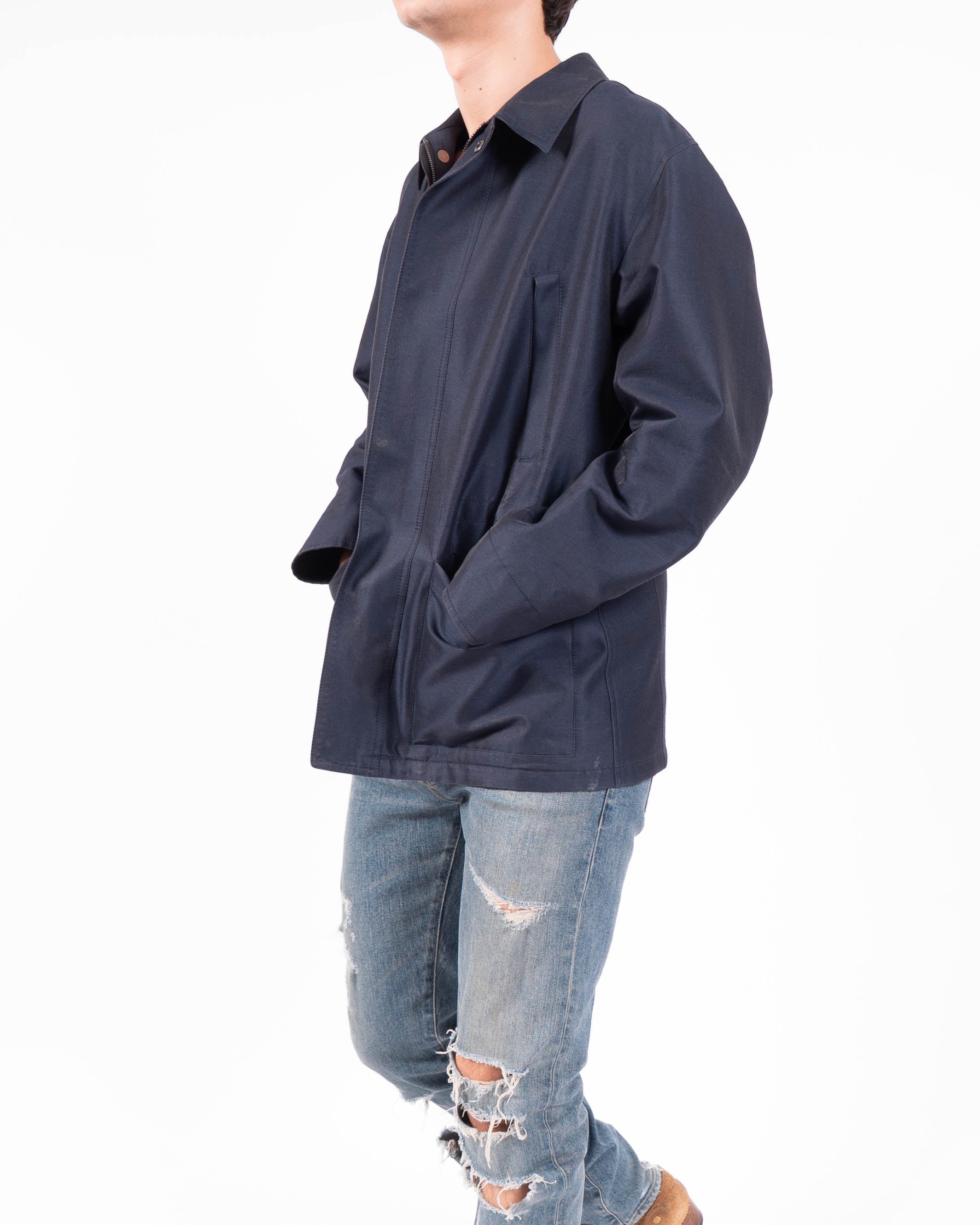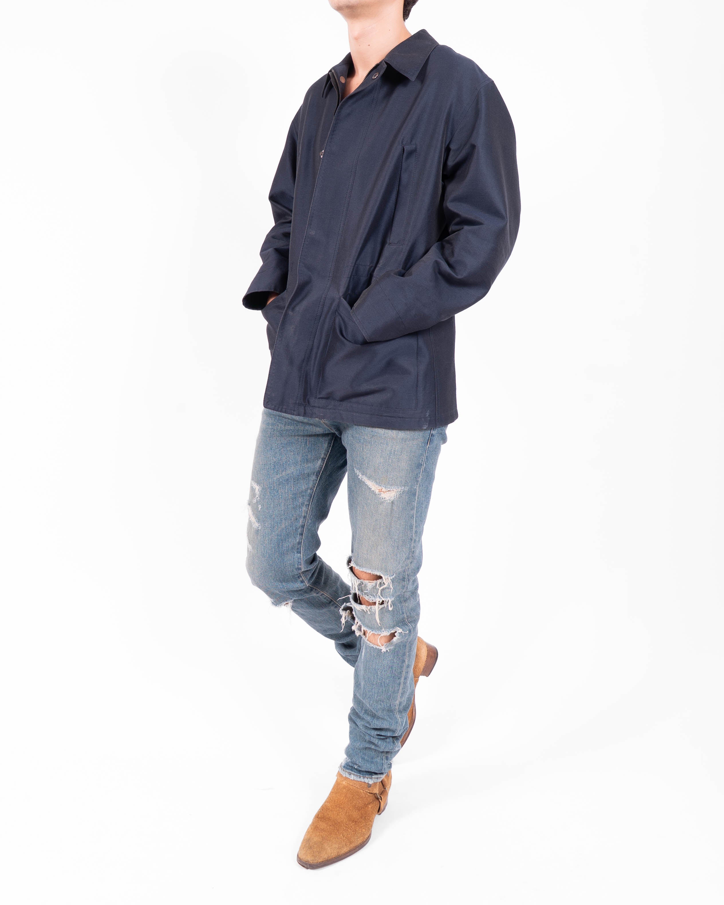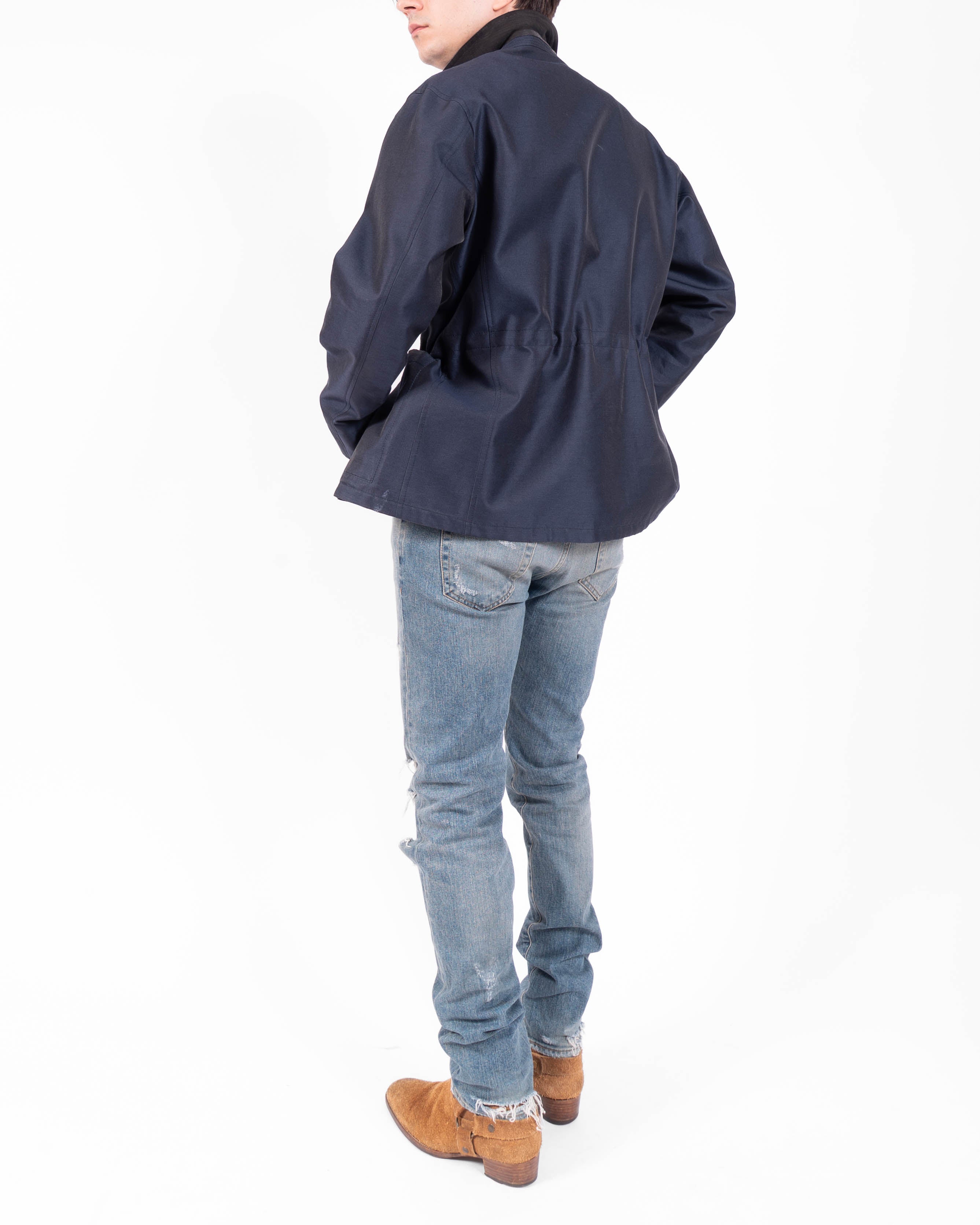 This military-inspired jacket from Berluti’s FW18 collection is crafted from a luxurious blue wool-silk blend, offering both structure and subtle sheen. The piece embodies Berluti’s refined approach to tailoring, merging utilitarian design elements with elegant ease.