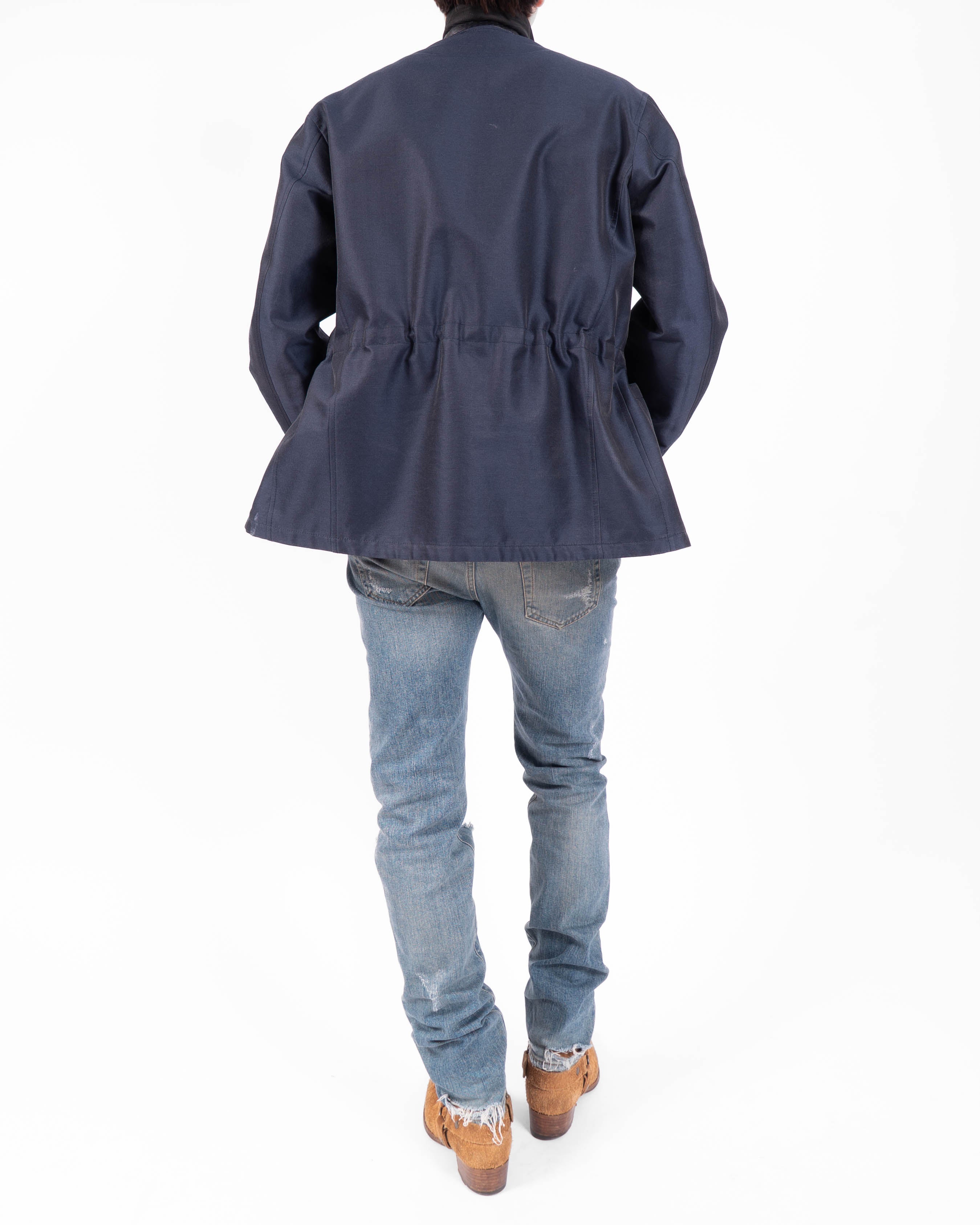 FW18 Oversized Military Jacket in Blue Silk Blend