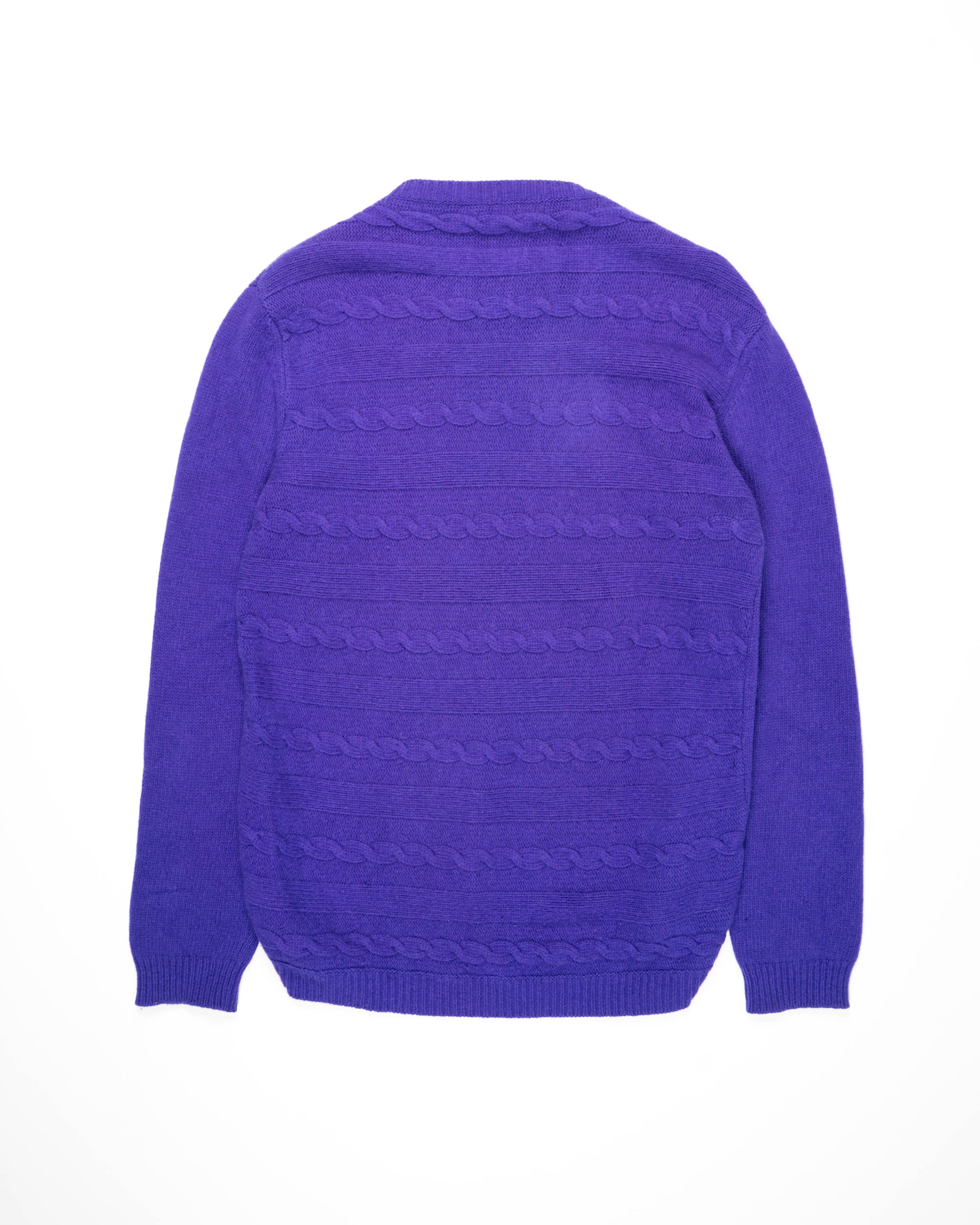 Crafted entirely from wool, the knit offers warmth and structure while remaining lightweight and comfortable. The vivid purple tone is striking yet sophisticated, bringing character to everyday garments