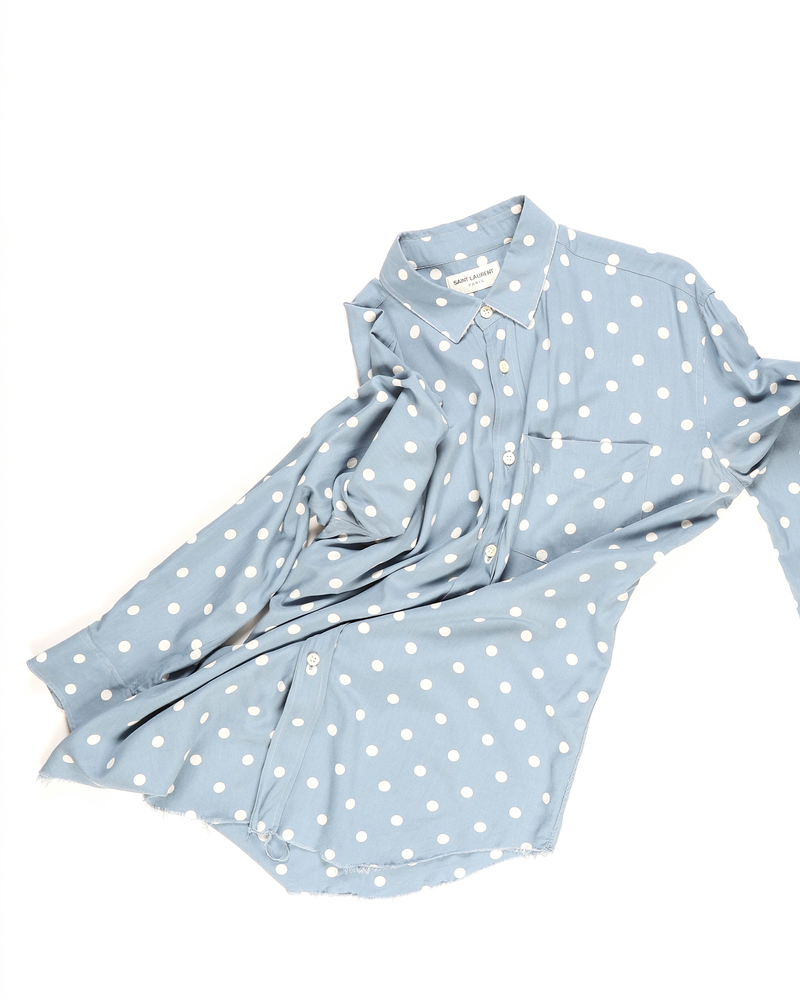 The print is playful but restrained, keeping the overall look clean and wearable. Released in SS16 by Saint Laurent the piece reflects a casual yet intentional approach to pattern, material, and cut.