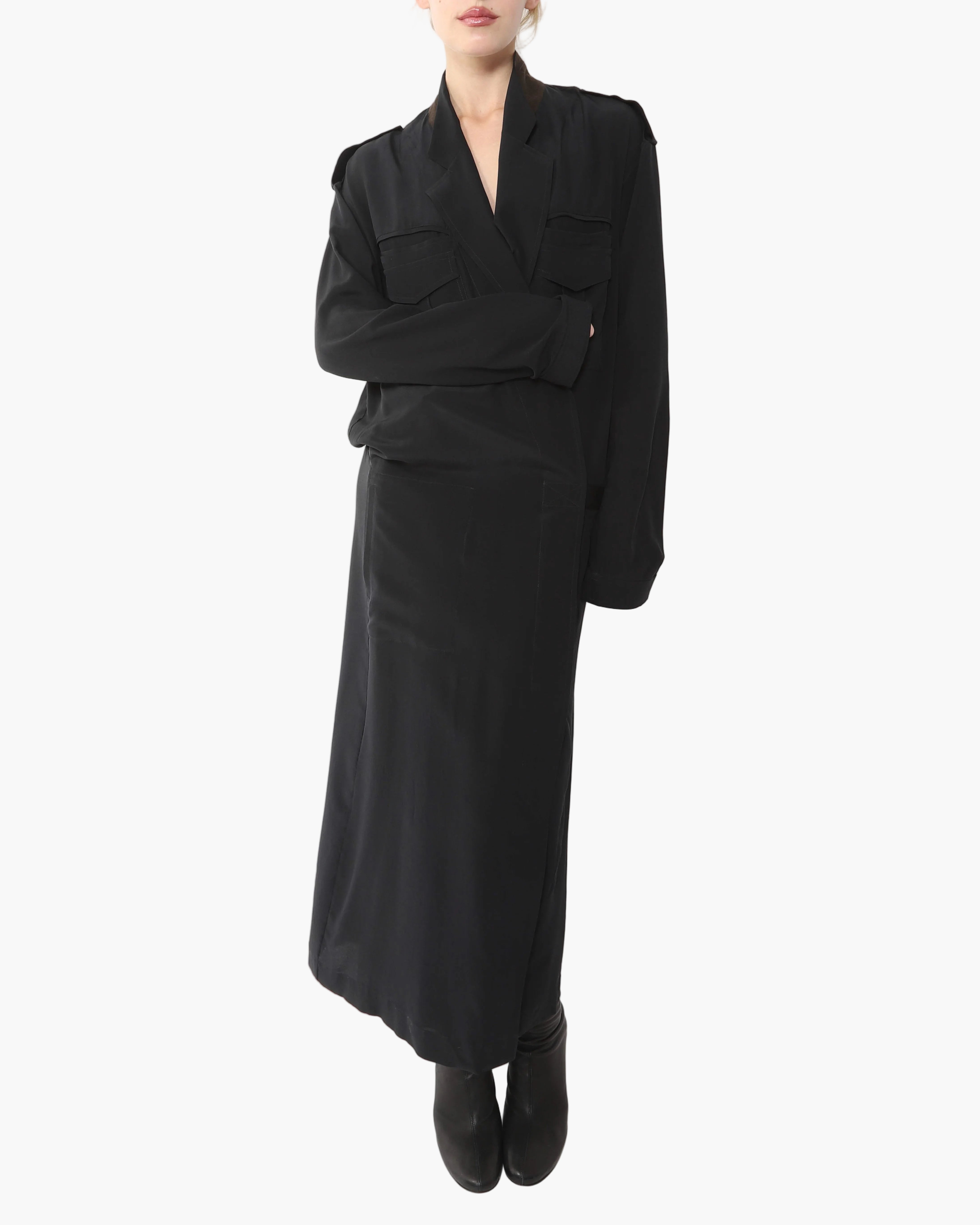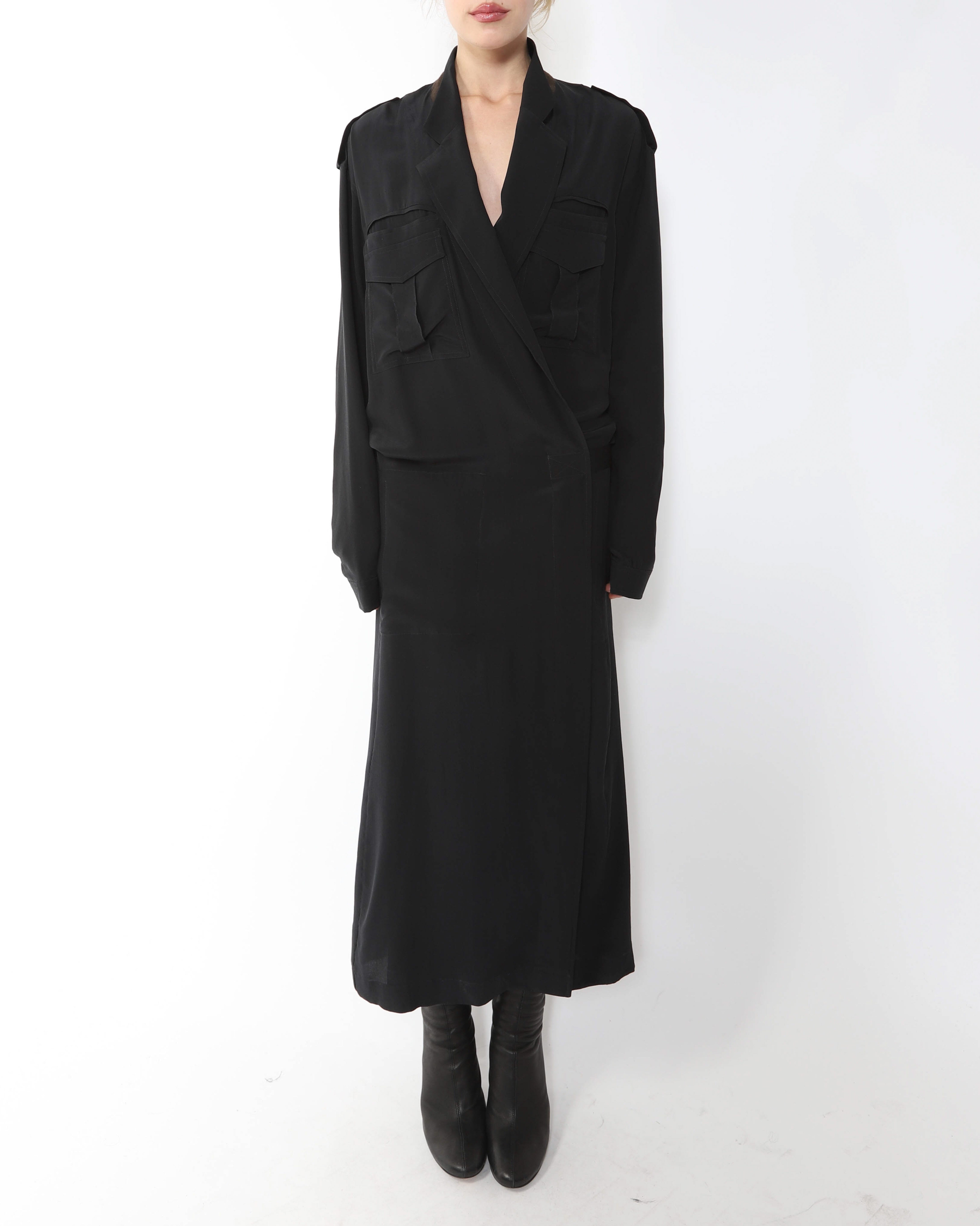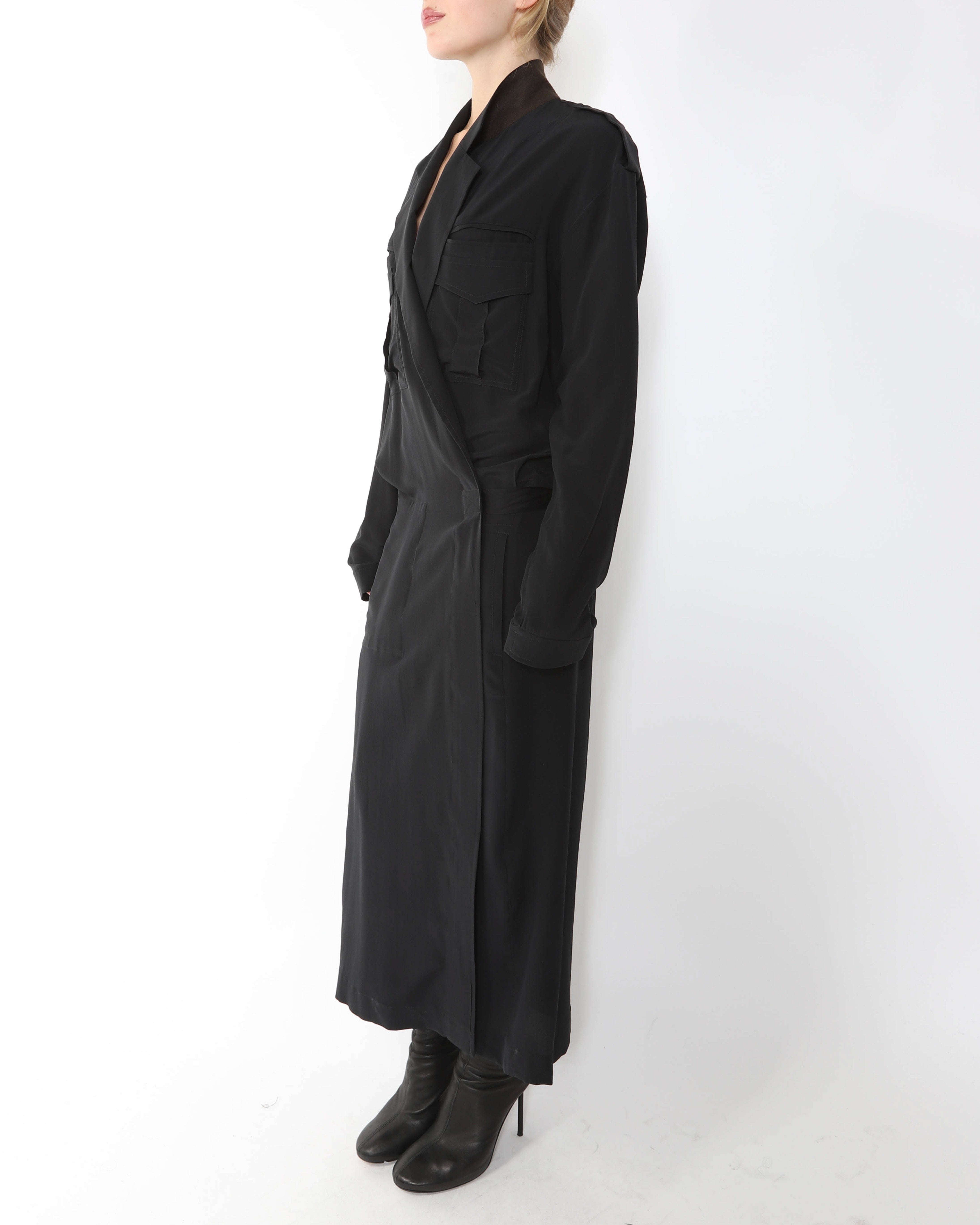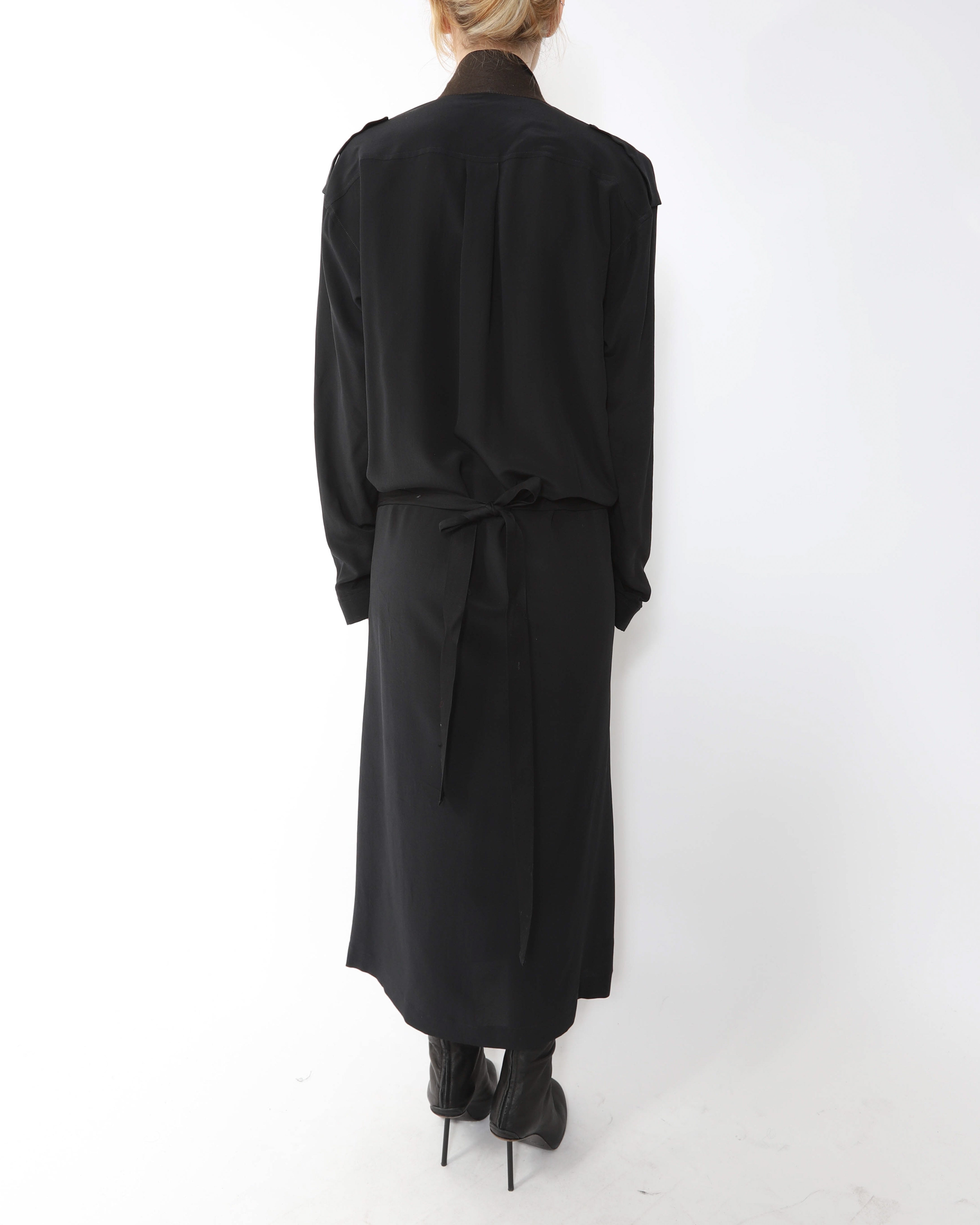 FW14 Kimono Dress with Military Details in Black Silk