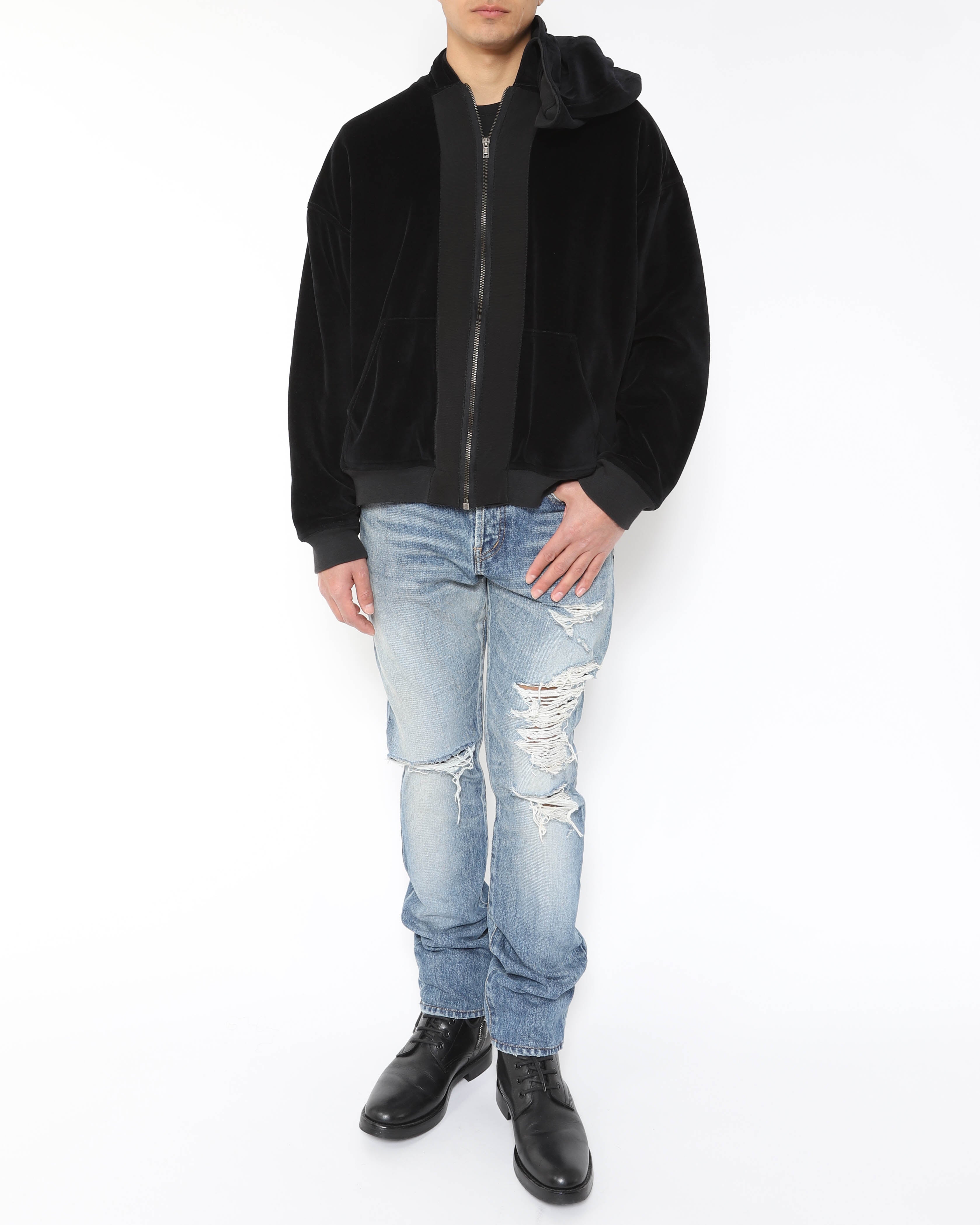 FW15 Oversized Double Layer Hoodie in Black Velvet