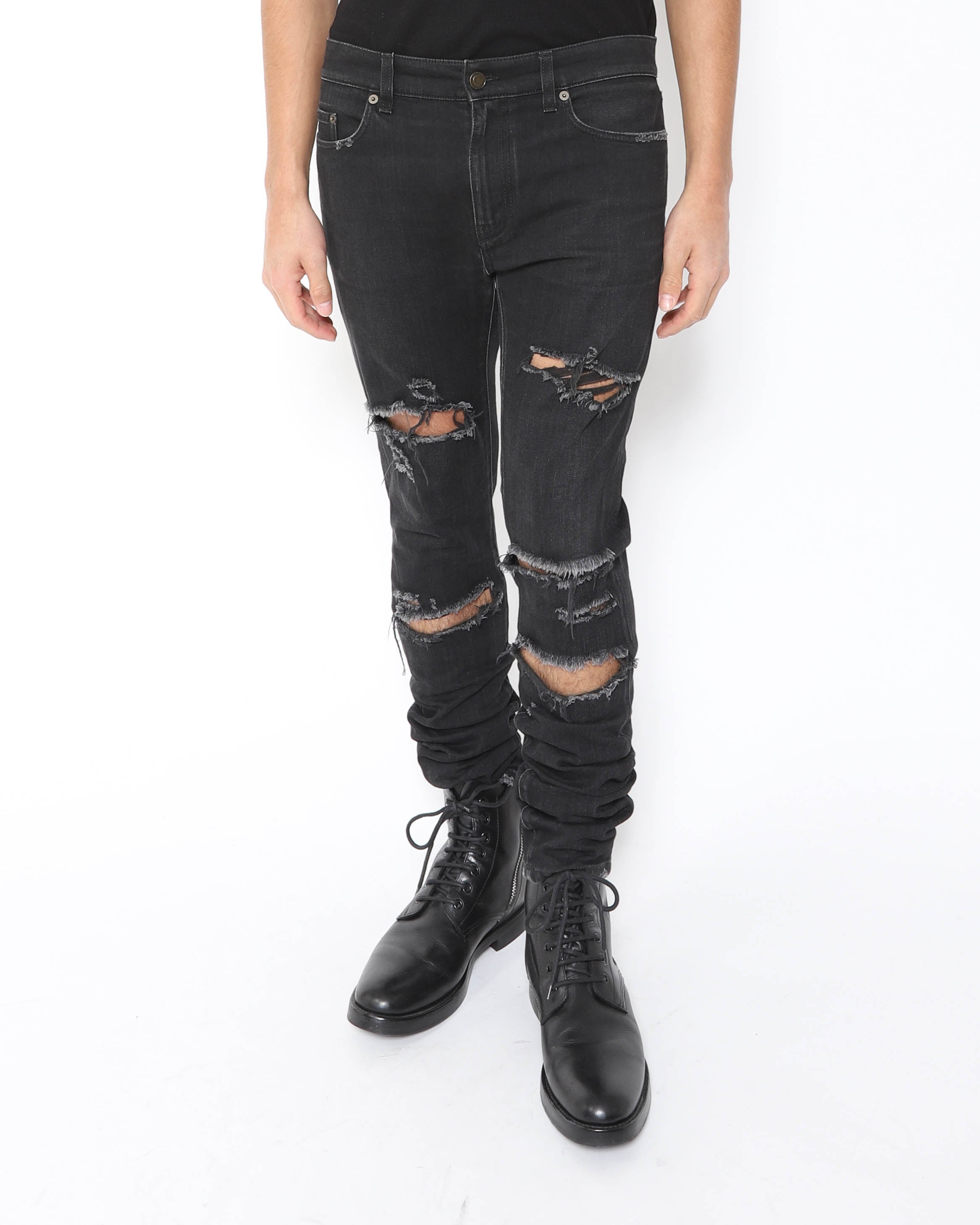 FW16 Distressed Jeans in Black Denim