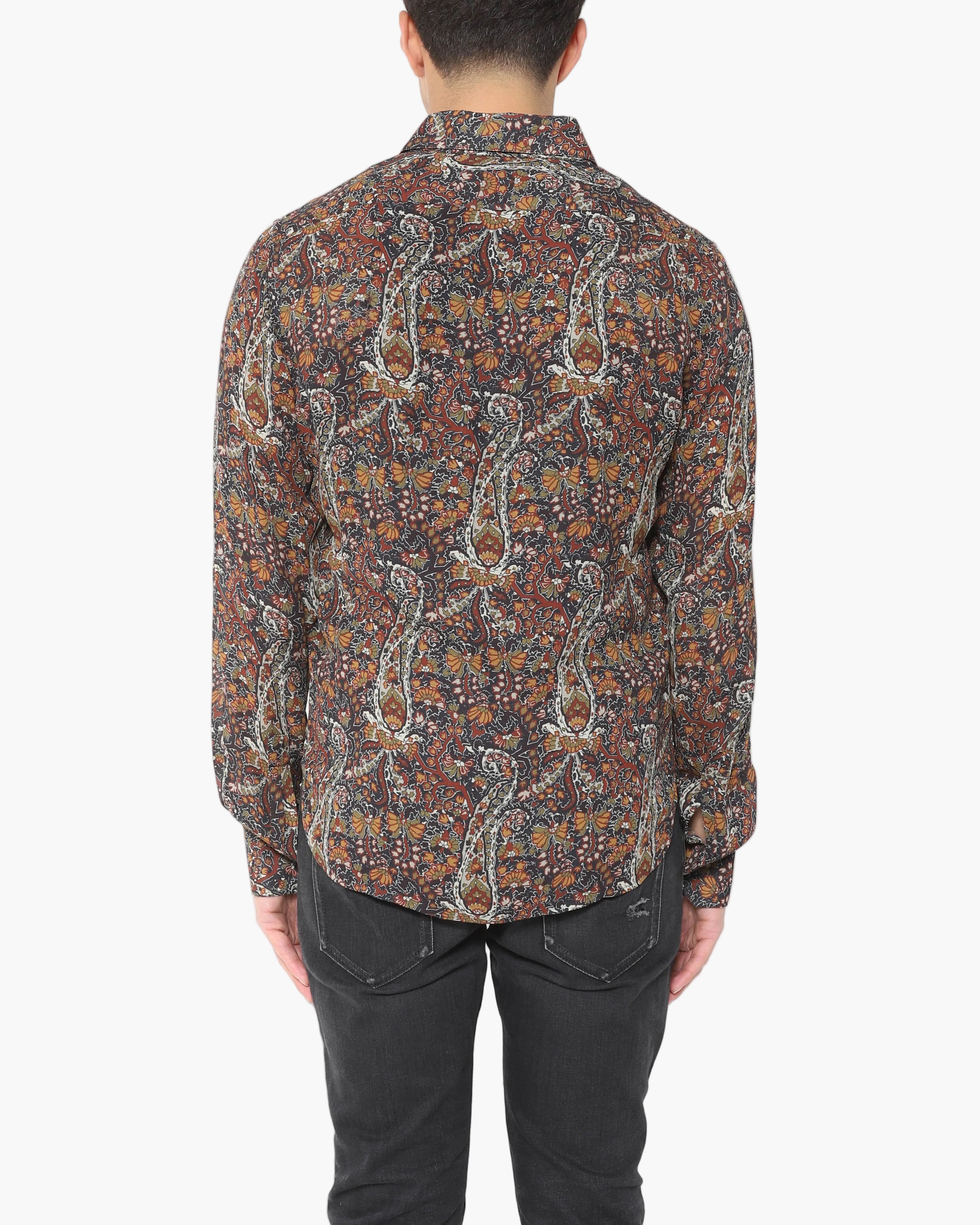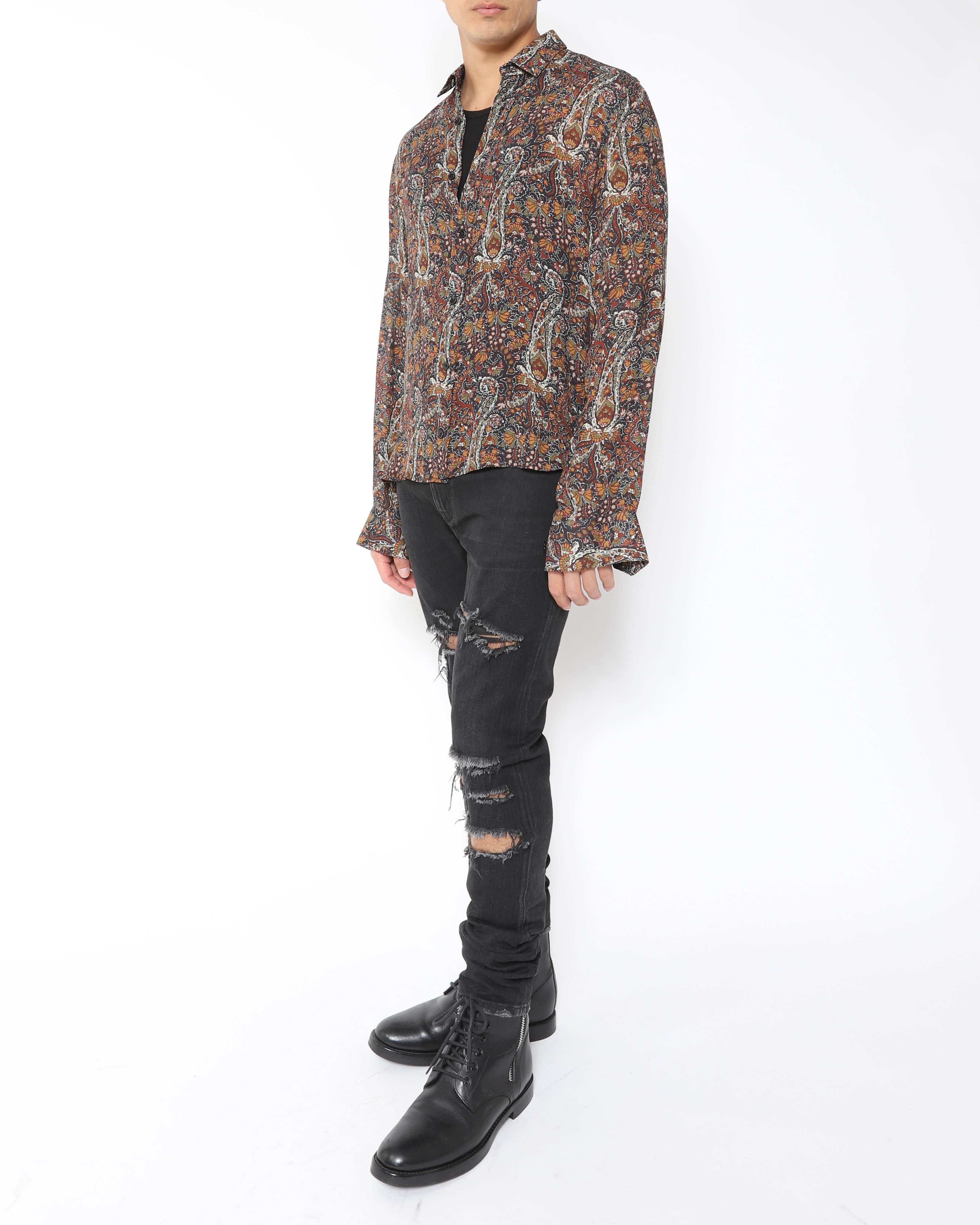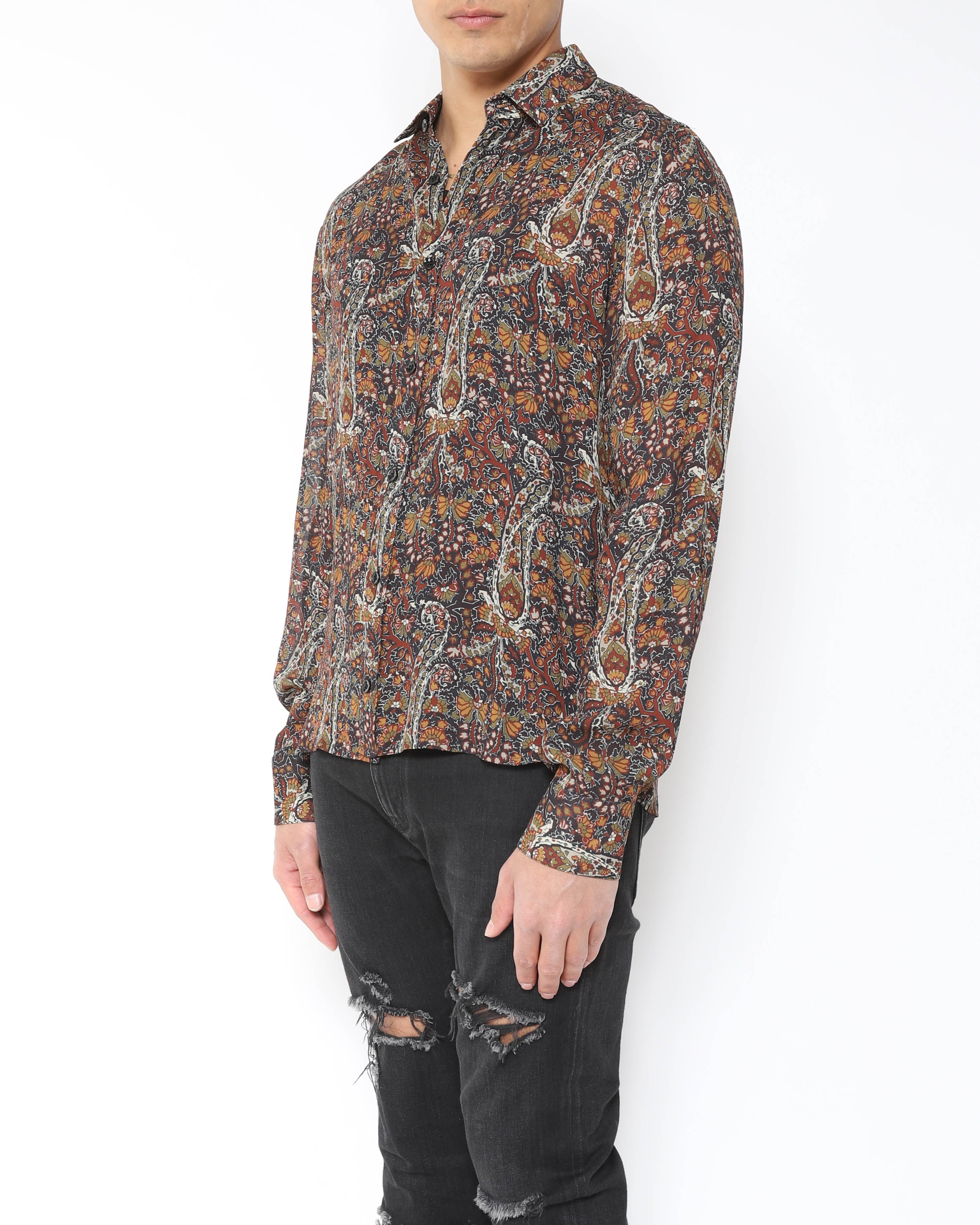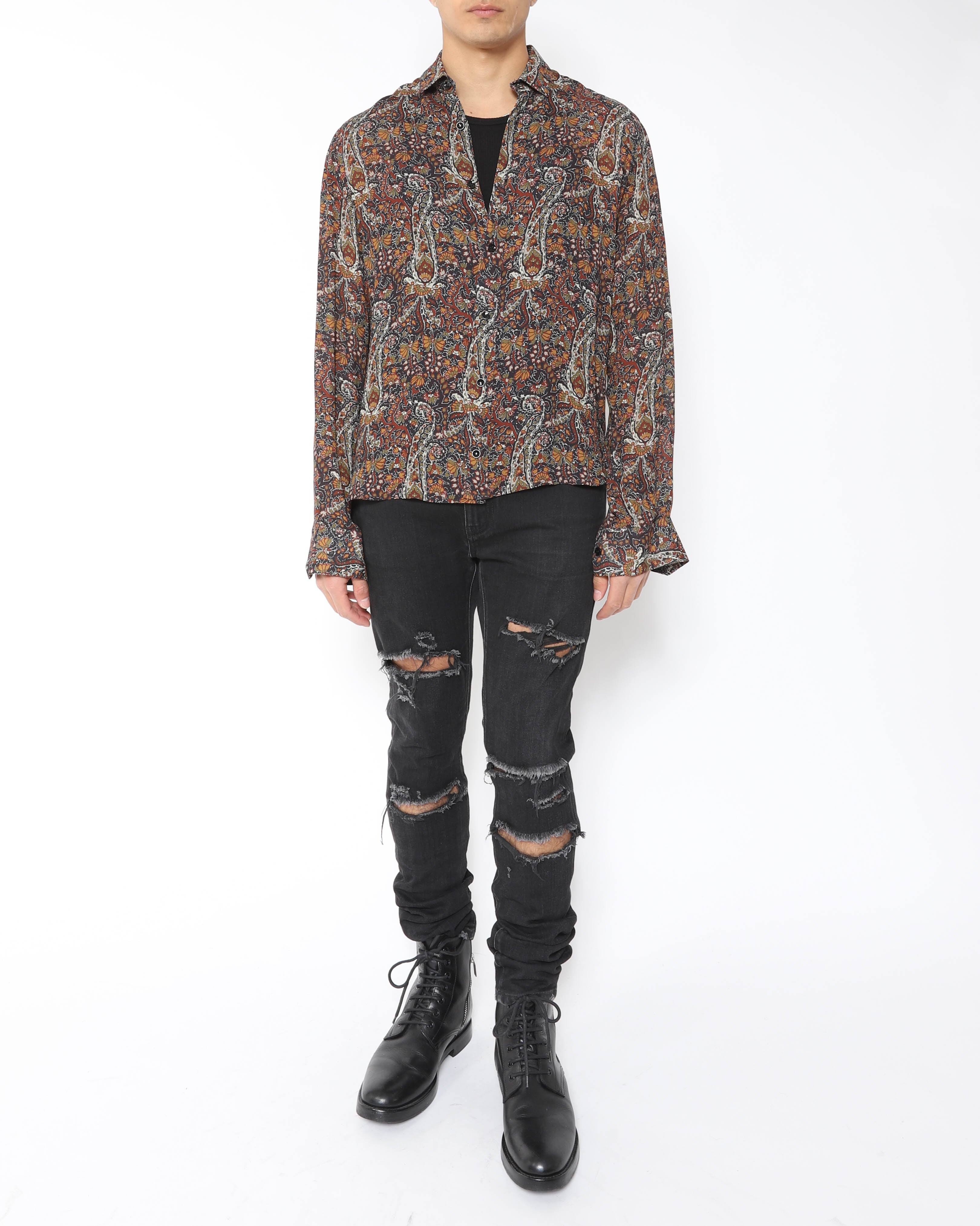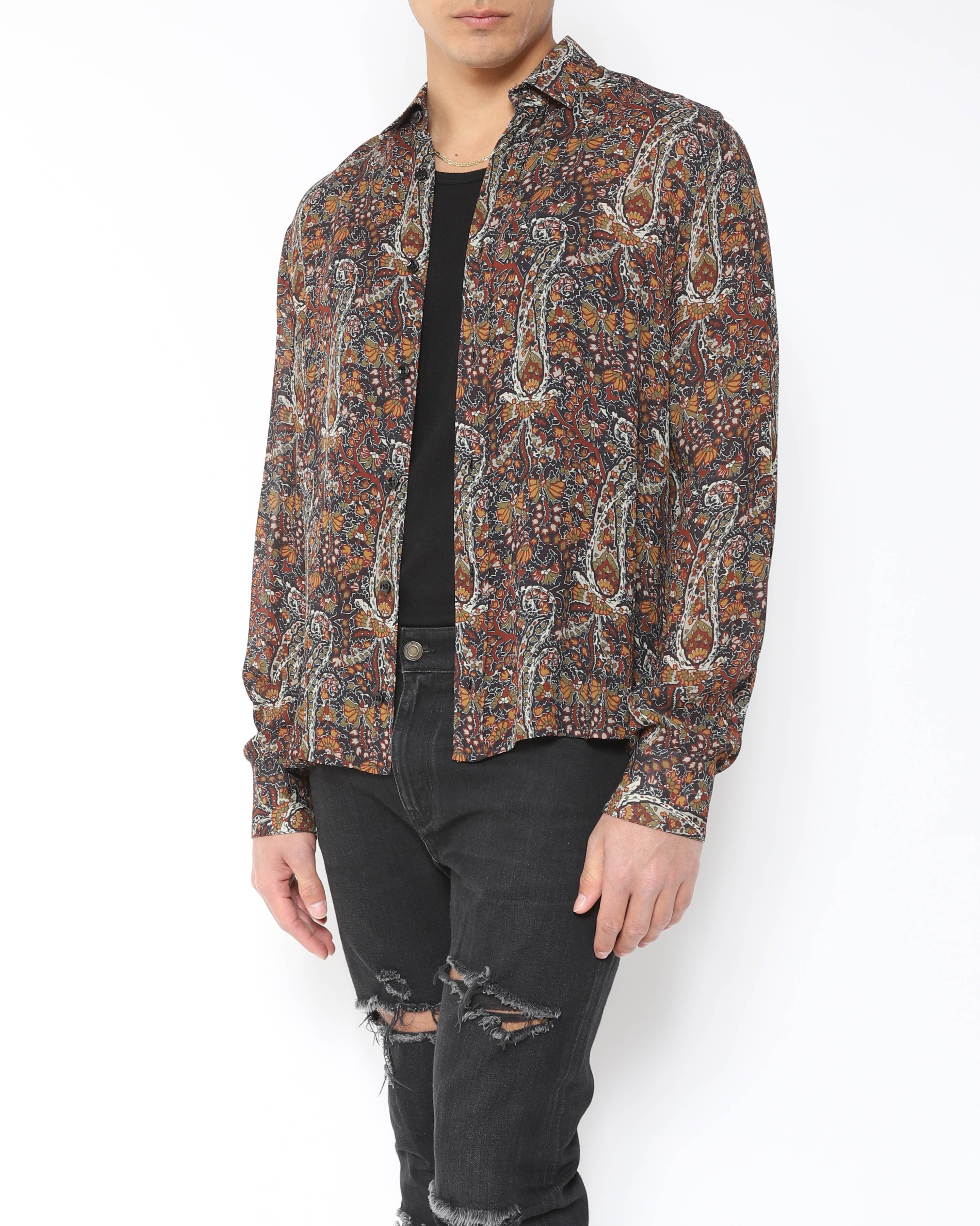 This FW16 paisley print shirt from Saint Laurent captures Hedi Slimane at his most recognizable: sharp, clean, and grounded in a rock leaning wardrobe. Introduced during the house’s Los Angeles era and shown at the Hollywood Palladium, the piece balances classic shirting with a more expressive surface pattern, easy to wear buttoned up or layered open.