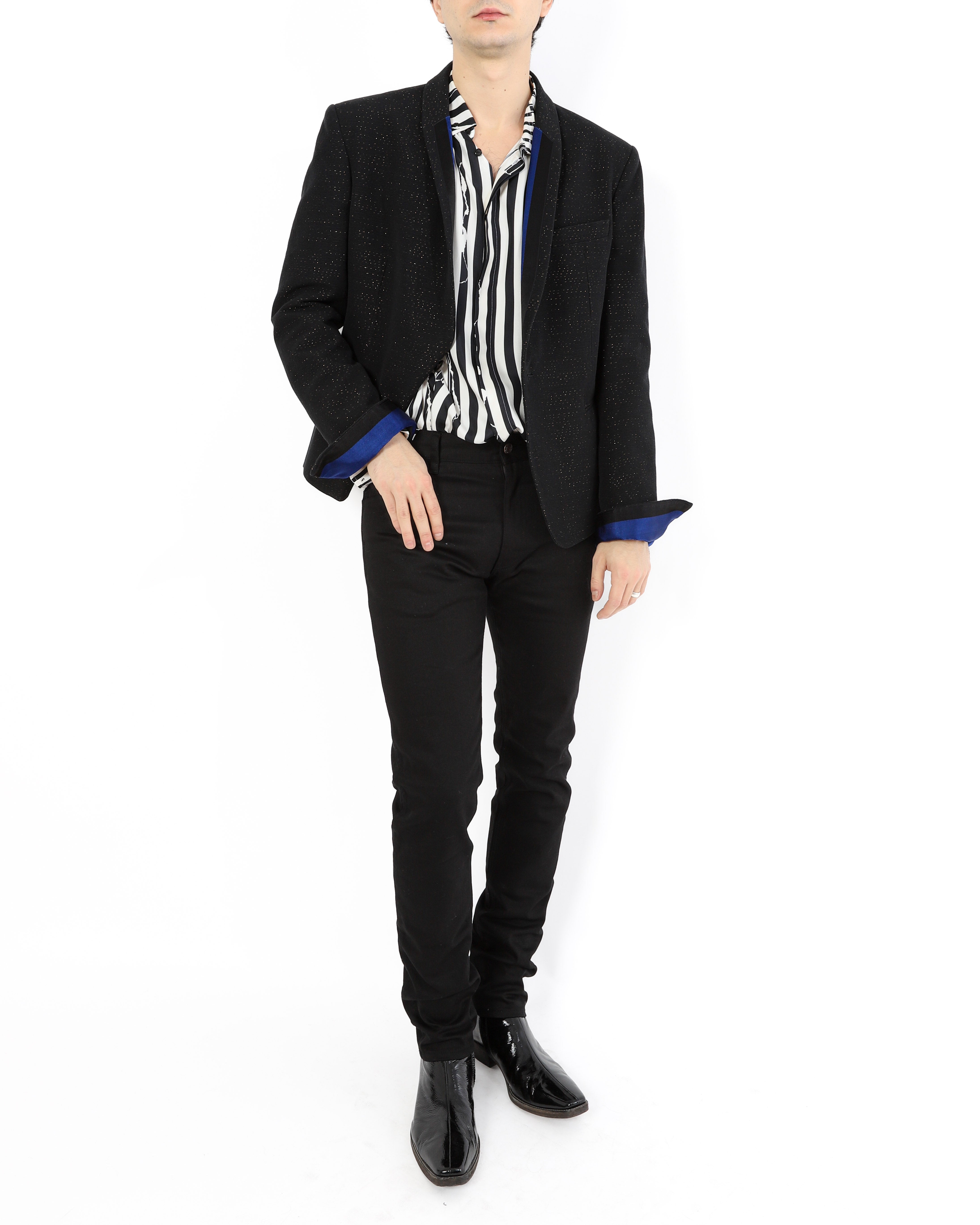 Inspired by this unburdened spirit, Ackermann infused his designs with a lightheartedness that felt fresh and playful. Oversized silk kimono shirts, fitted leather pants, and bombers in electrifying colors all exuded the carefree attitude of youth. This was a celebration of freedom and joy, a departure from his usual brooding elegance, yet unmistakably true to Ackermann's signature style.
