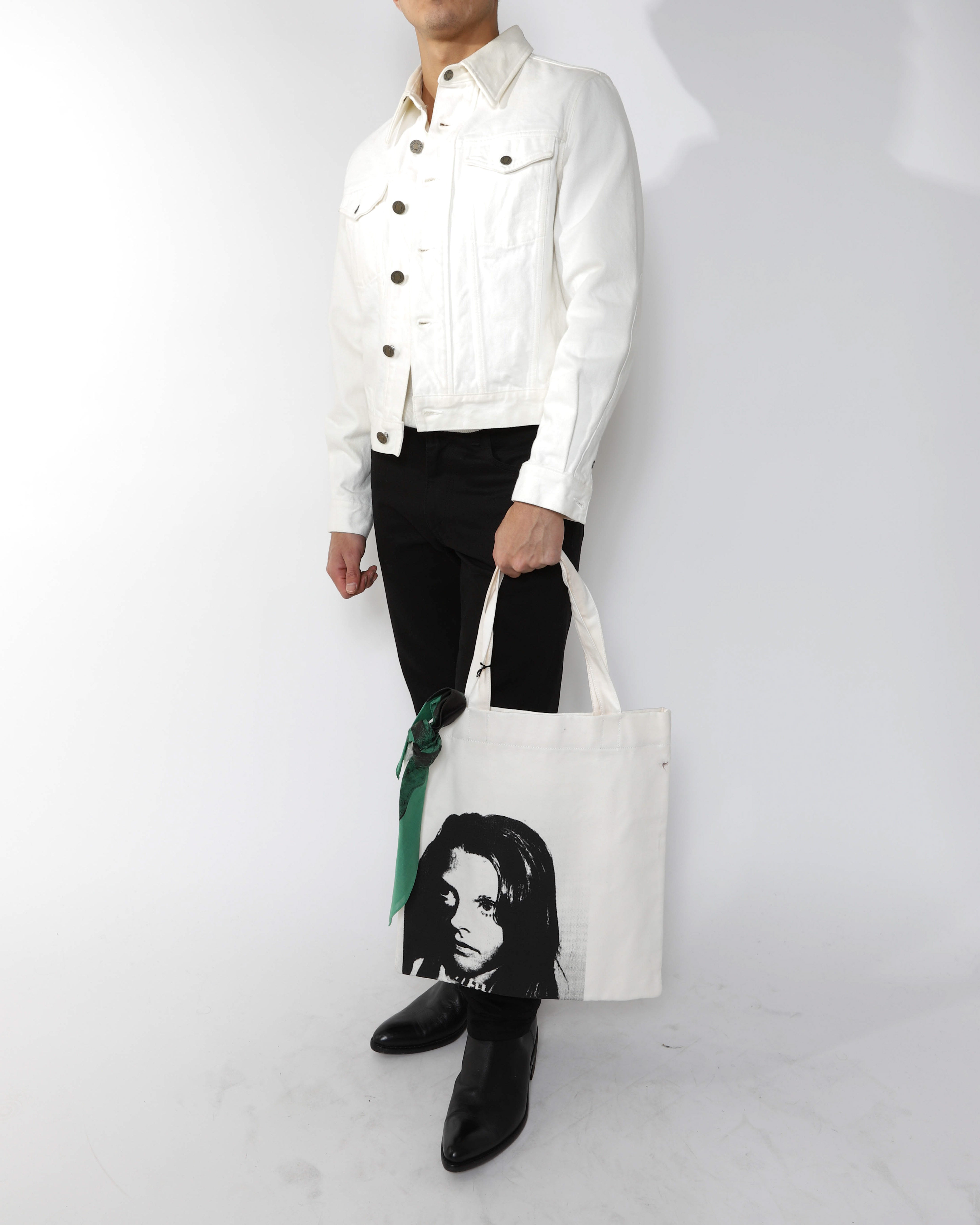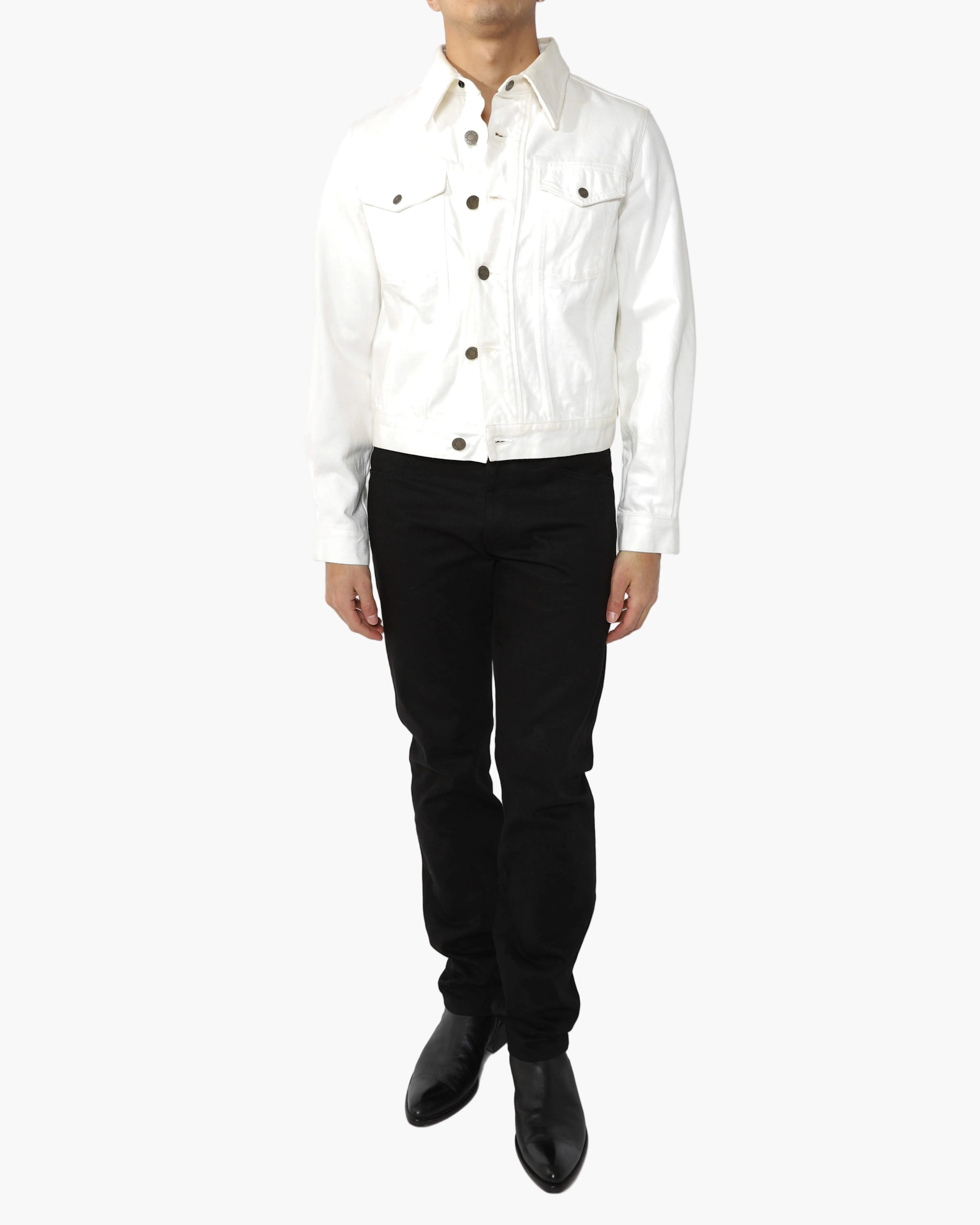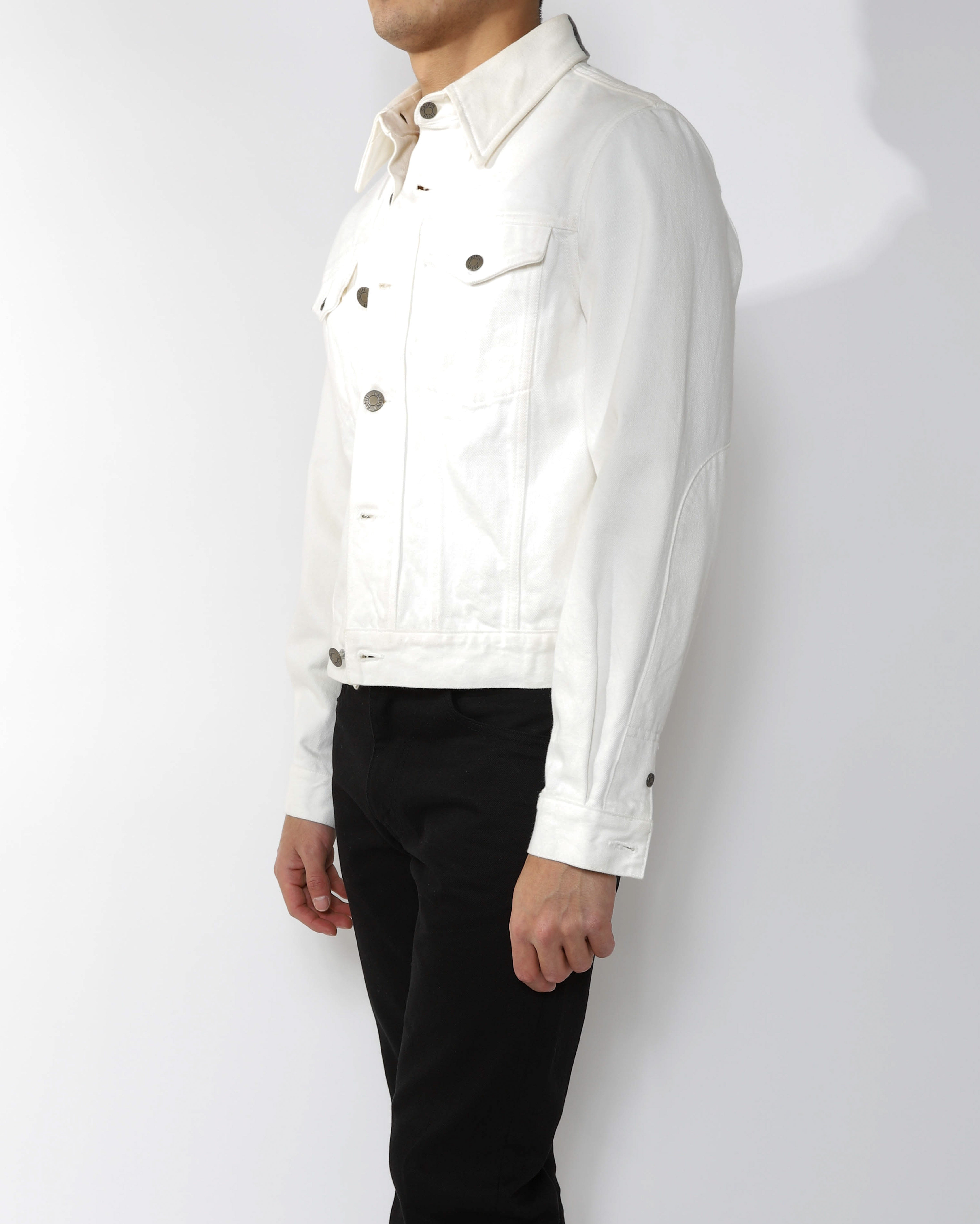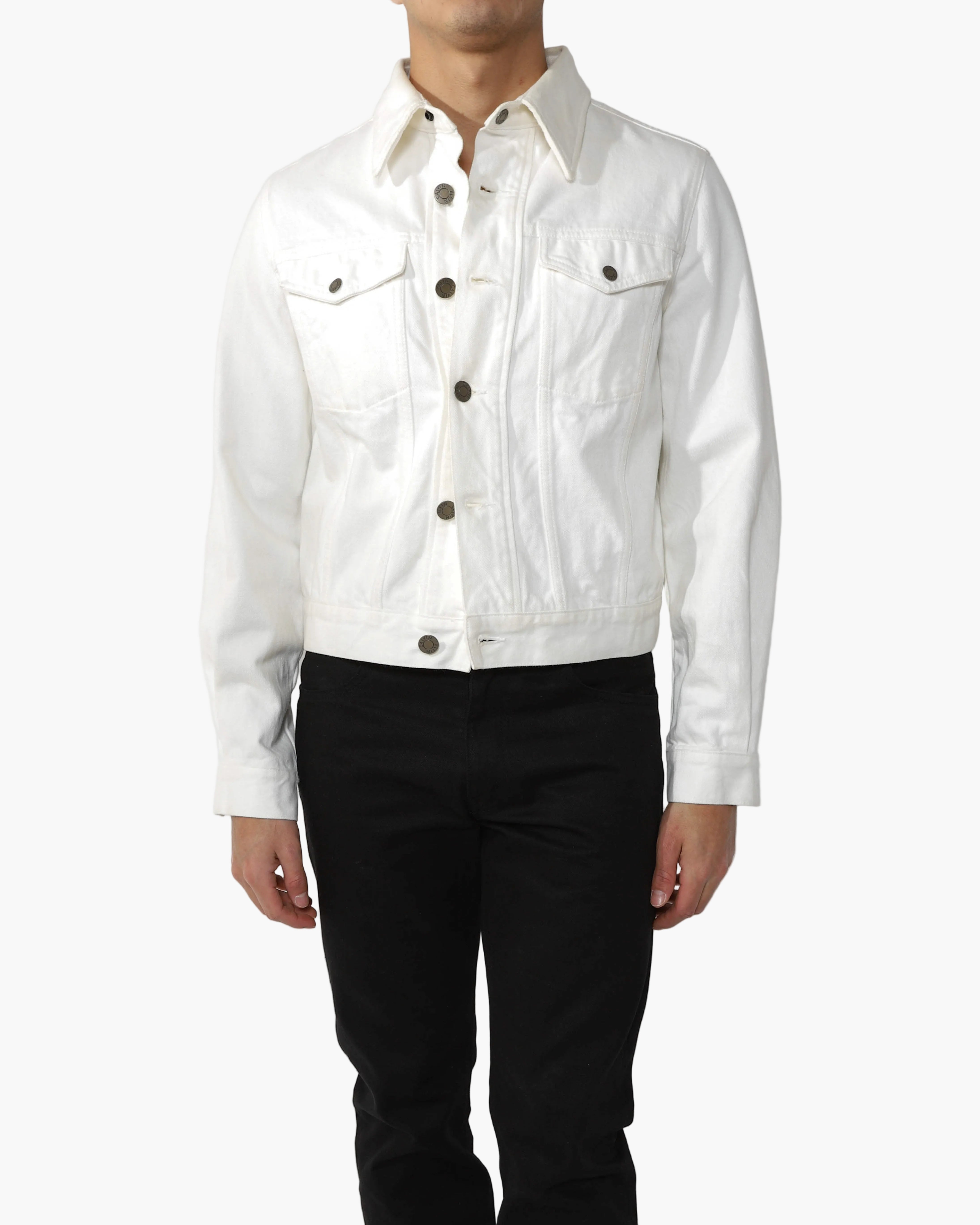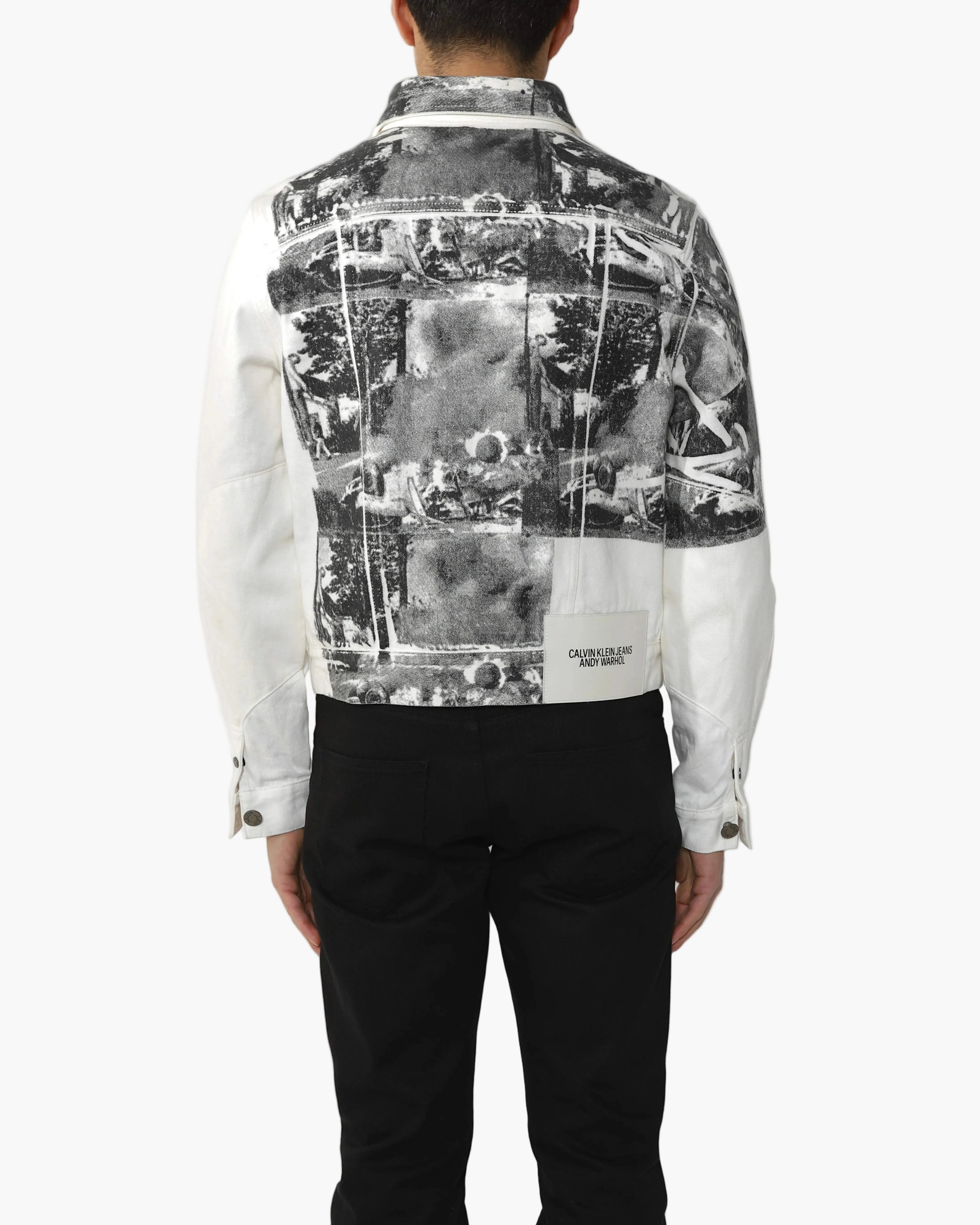 SS18 Back Screenprinted Trucker Jacket in White Denim