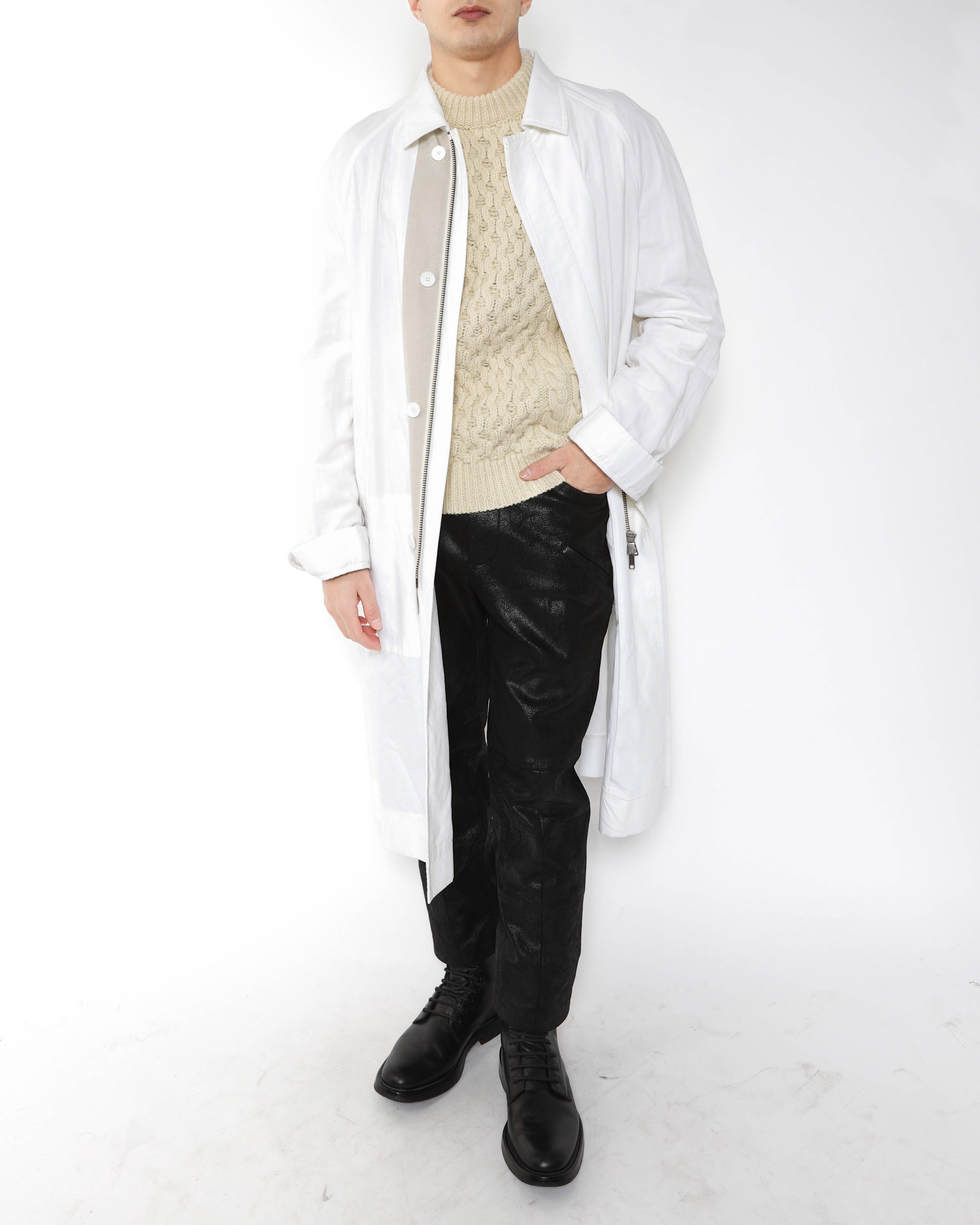 This season, Ackermann shifted focus toward a more refined and sharply tailored silhouette, setting a new direction for his brand. Moving away from his typical emphasis on accessories, he honed in on clean lines and structured forms, creating an overall aesthetic that felt precise and sophisticated. The collection’s key themes—minimalism and tailoring were underscored by meticulously crafted pieces that celebrated Ackermann’s commitment to luxury and detail.