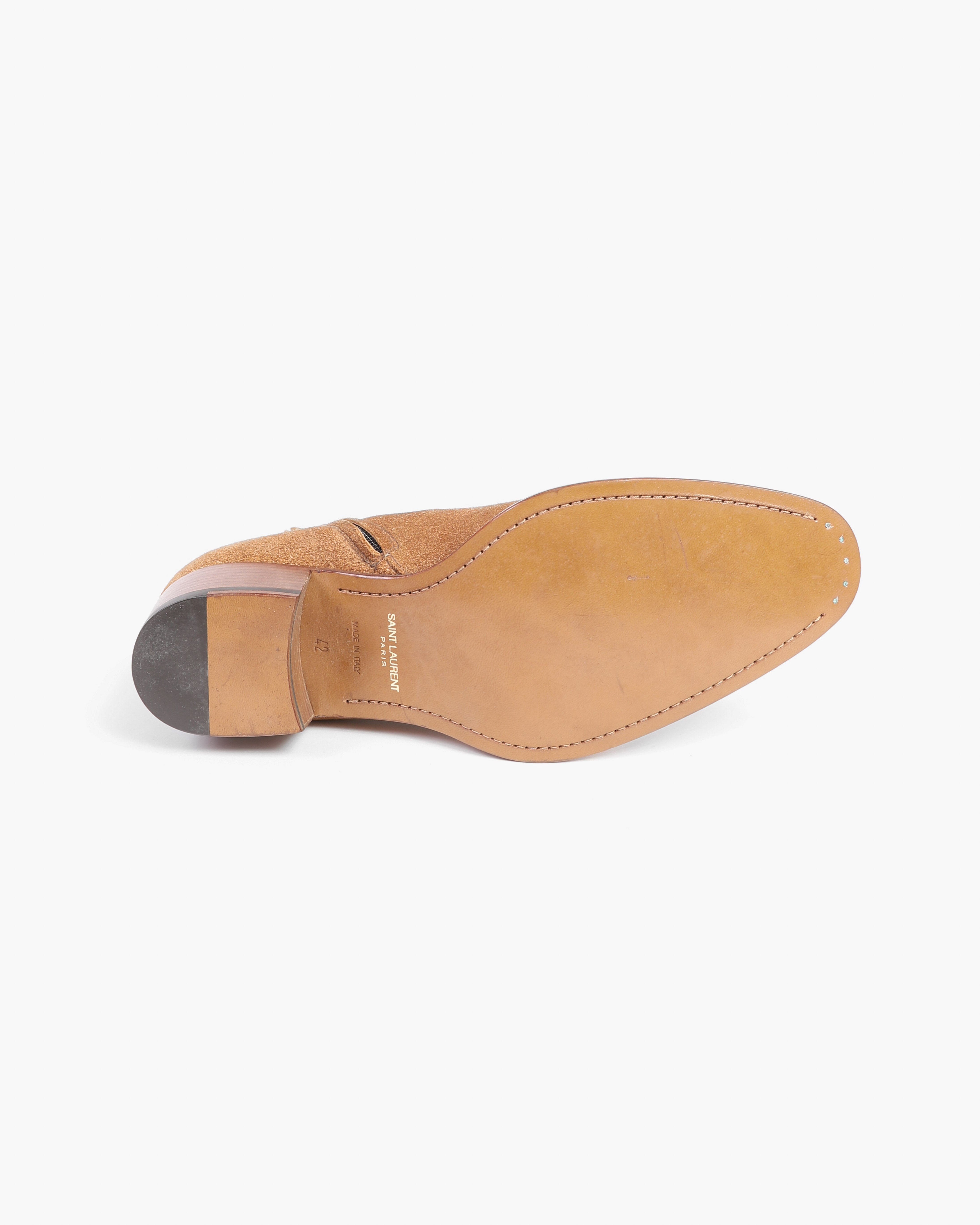 The upper is crafted from a nappy nut suede with a texture richer and more tactile than standard suede, a material that develops character with every wear. Produced only across select seasons, this silhouette remains among the rarer boots from Hedi's tenure at Saint Laurent Paris especially in brand new condition like this pair.