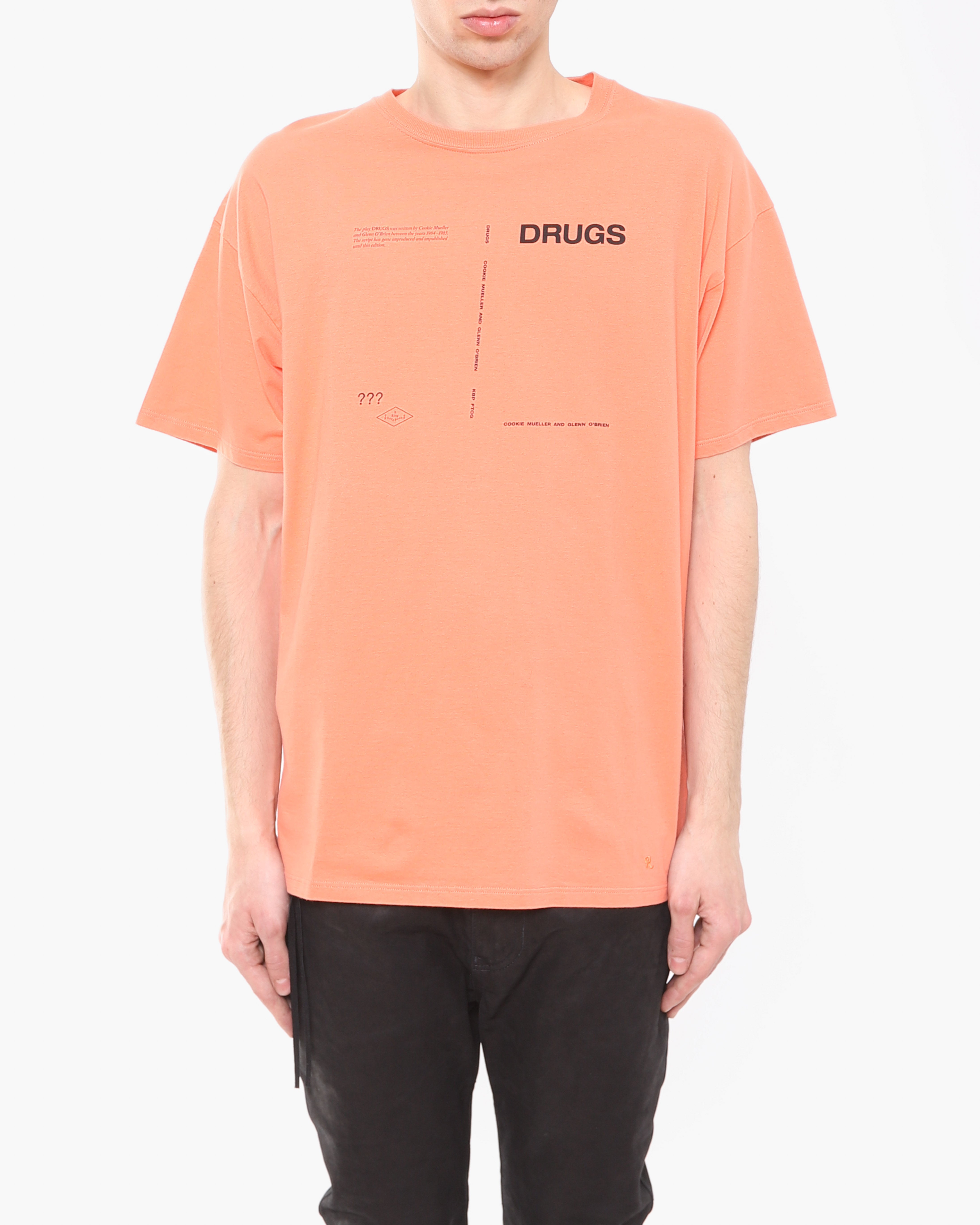 SS19 Drugs Print T-Shirt in Orange Cotton