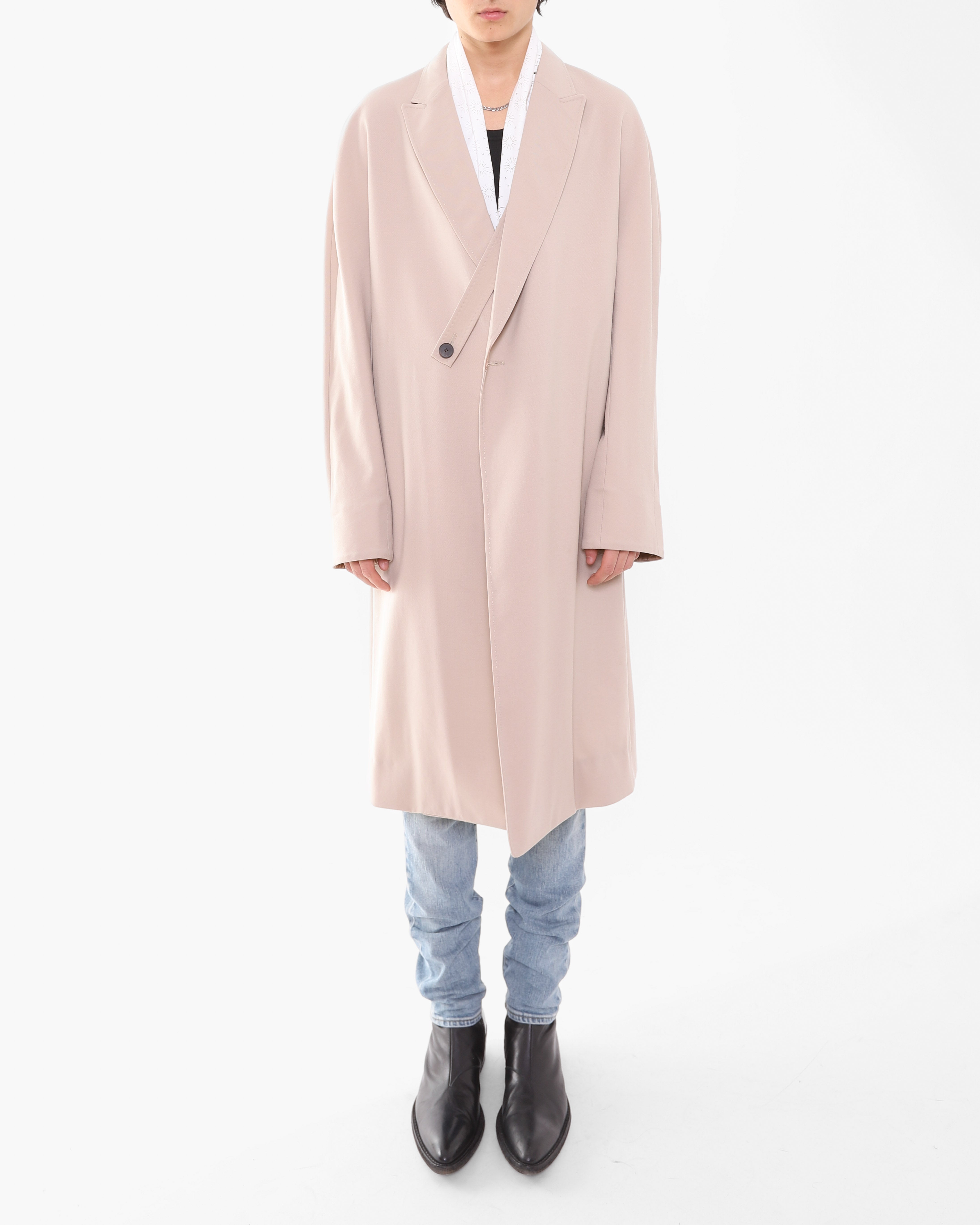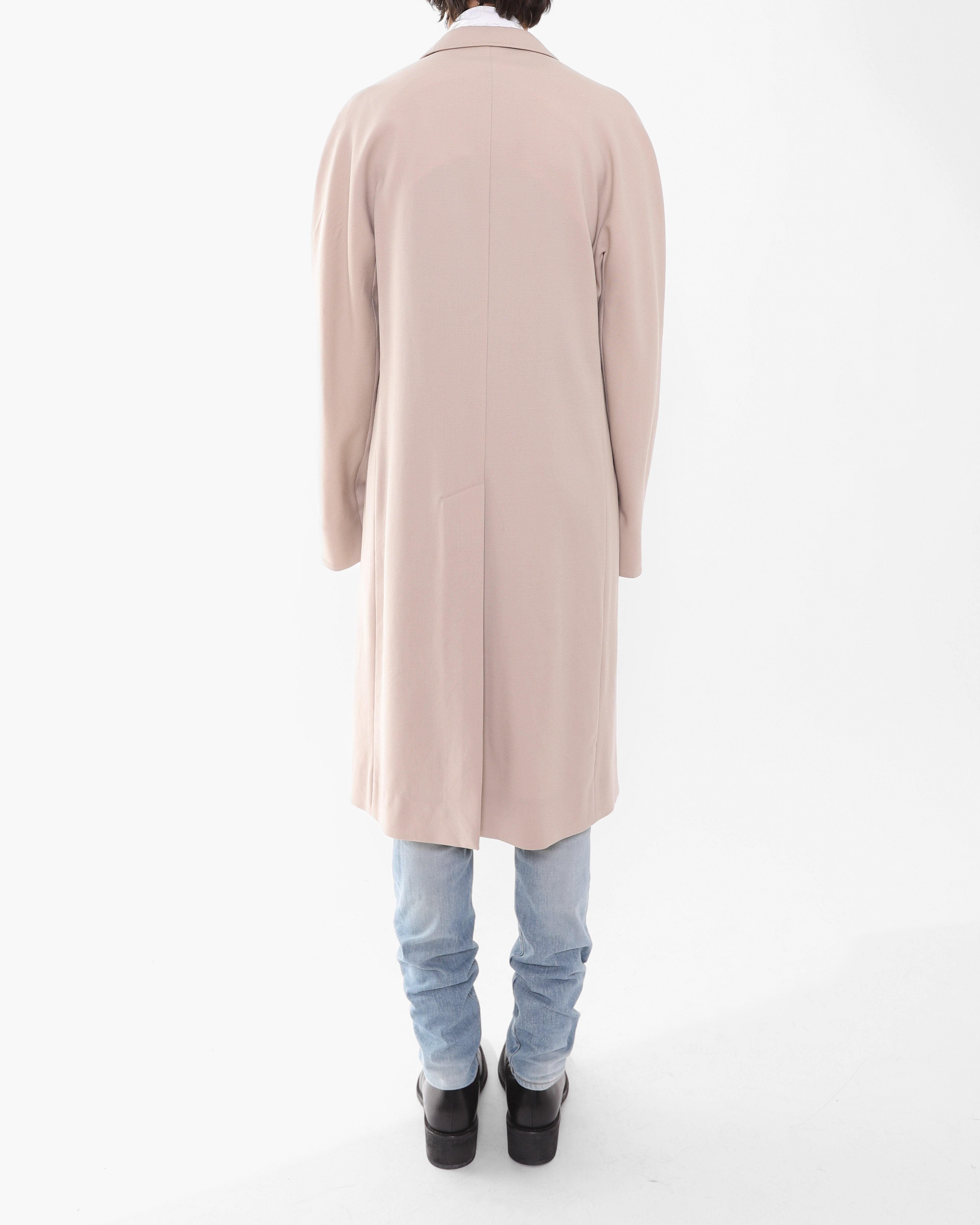 An incredibly beautiful coat as seen on the SS19 runway. Crafted in a luxurious beige wool with raglan sleeves and an oversized fit that drapes with the effortless ease that Haider is known for.