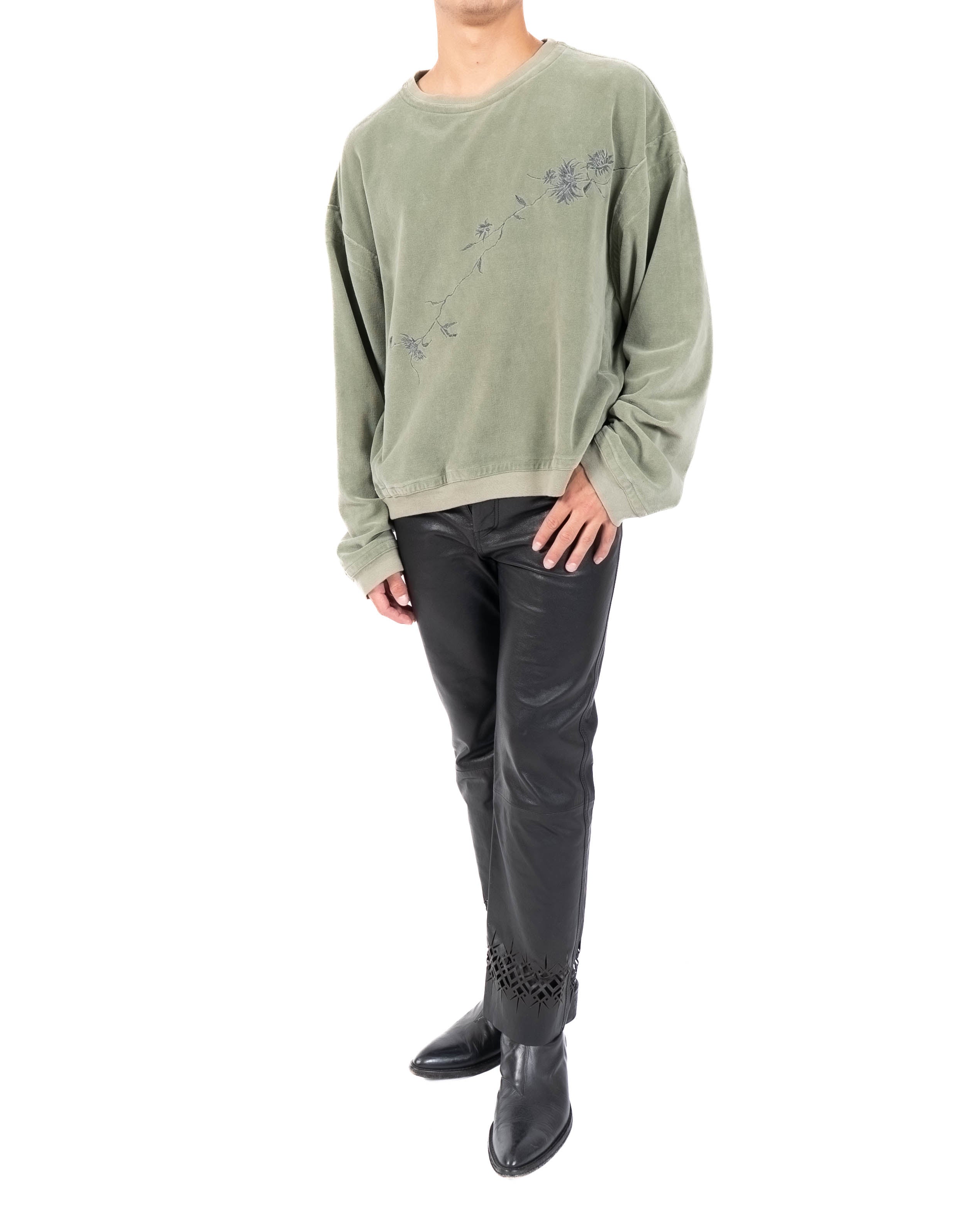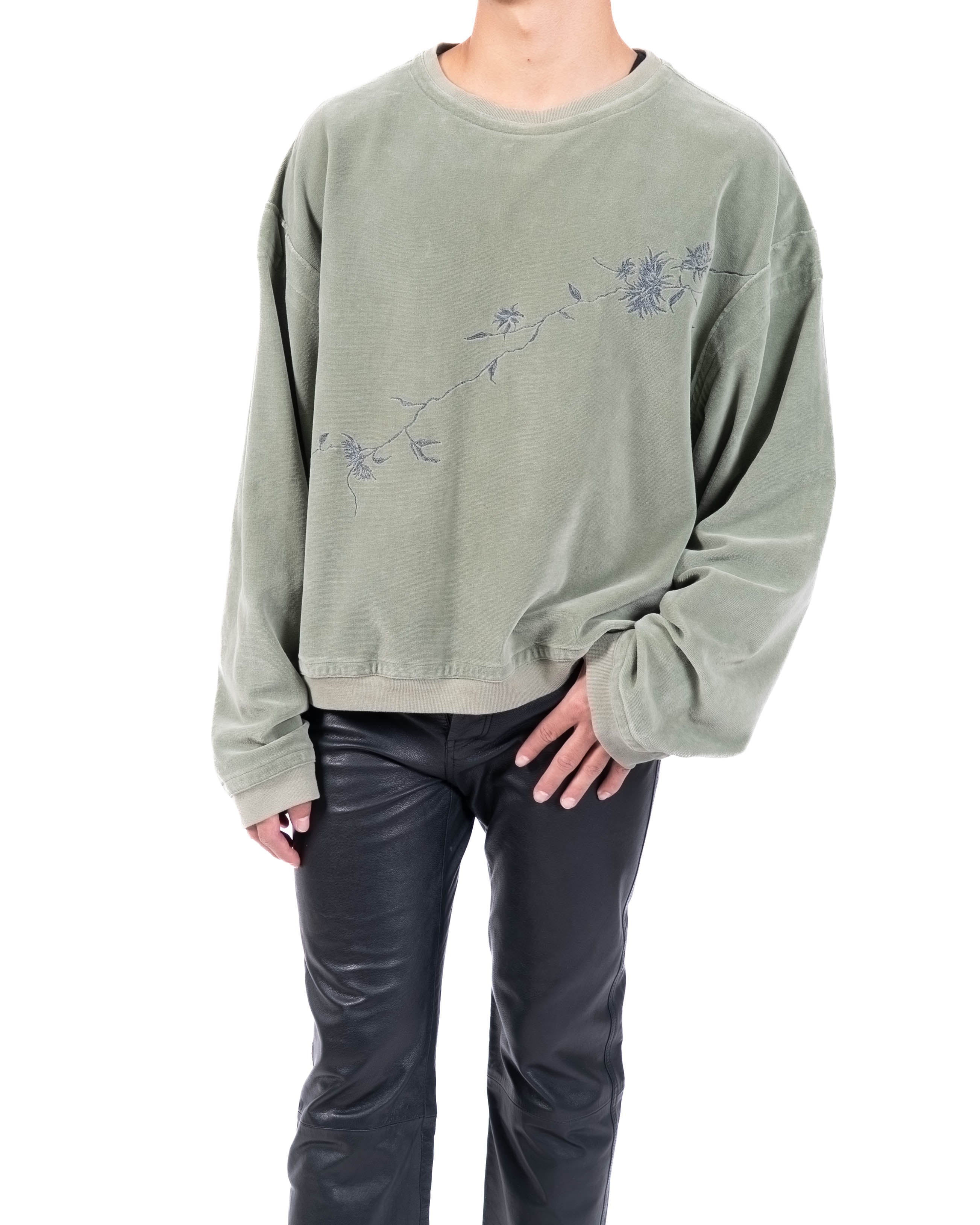 FW18 Oversized Embroidered Sweatshirt in Light Green Velvet
