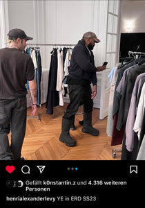This oversized leather jacket was one of the highlights of the acclaimed SS23 collection and brought together all the dystopian emotions of the runway with the by far most recognizable runway look. It features a super soft leather and removable shoulder parts that are attached by buttons and a neck-zip. This was also the jacket that Kanye West was seen wearing in the ERD Showroom. While the black version of the jacket was available on the ERD Website, this grey version of our store is the only one seen available, ever and everywhere, and there are very likely only around 3 in existence.