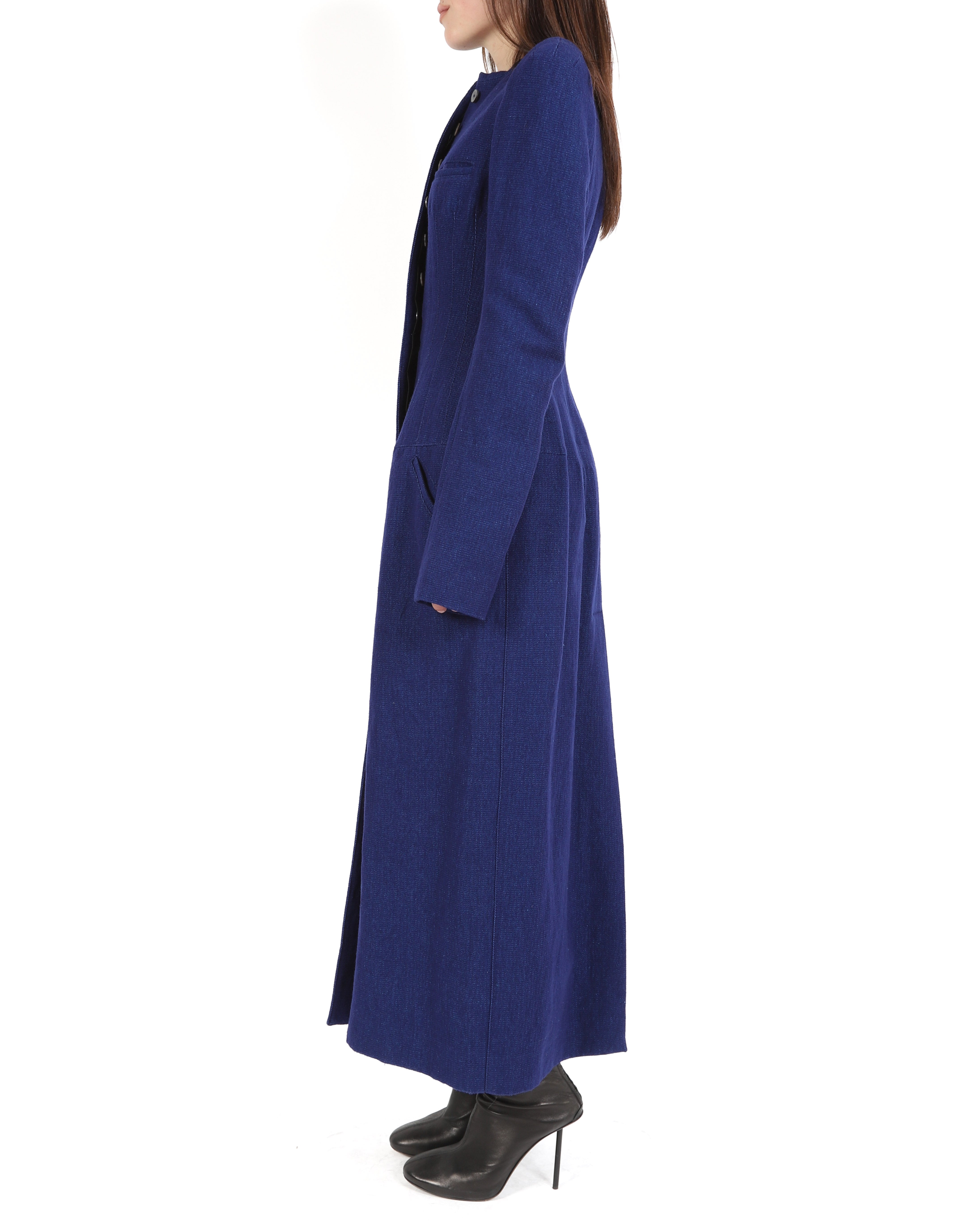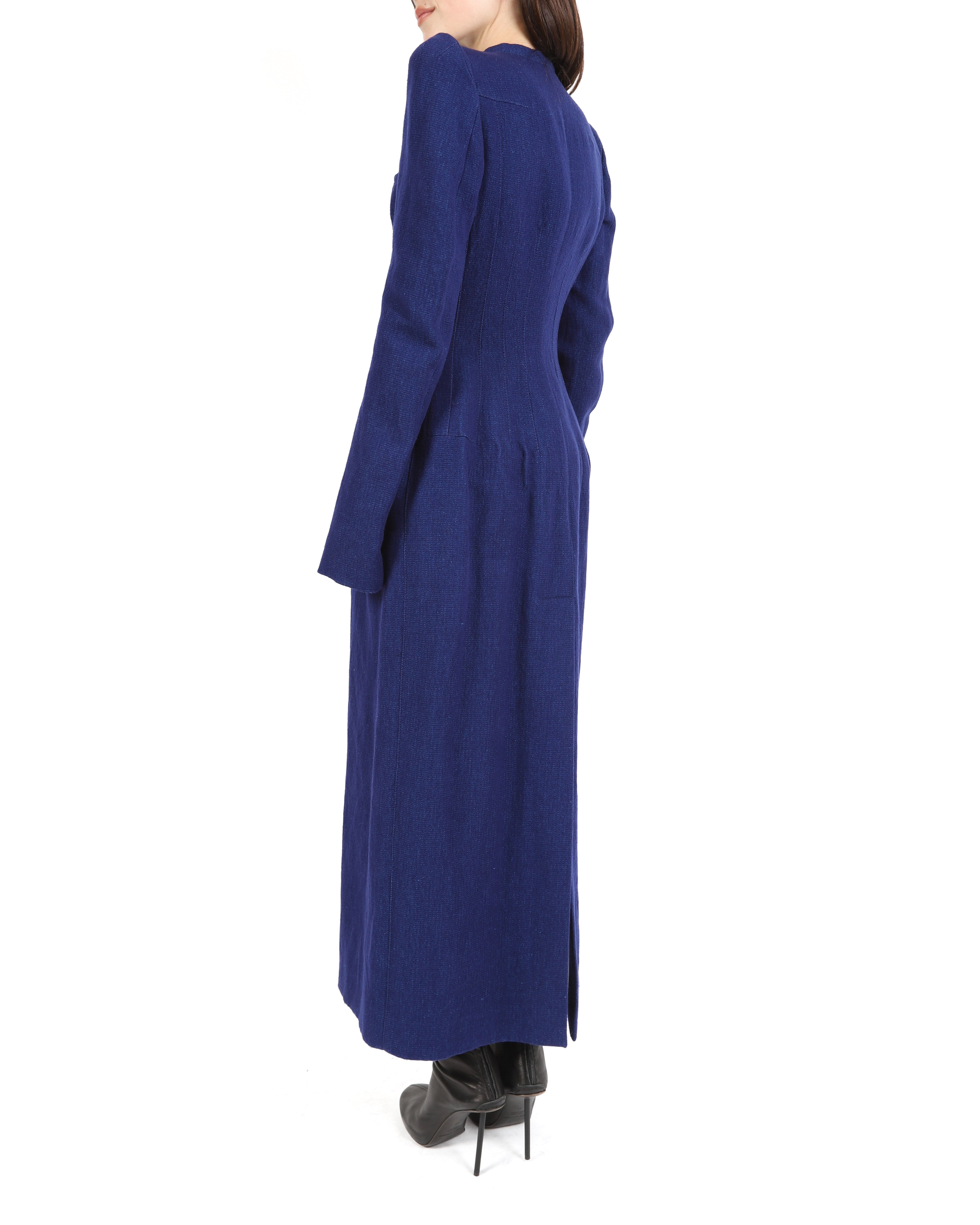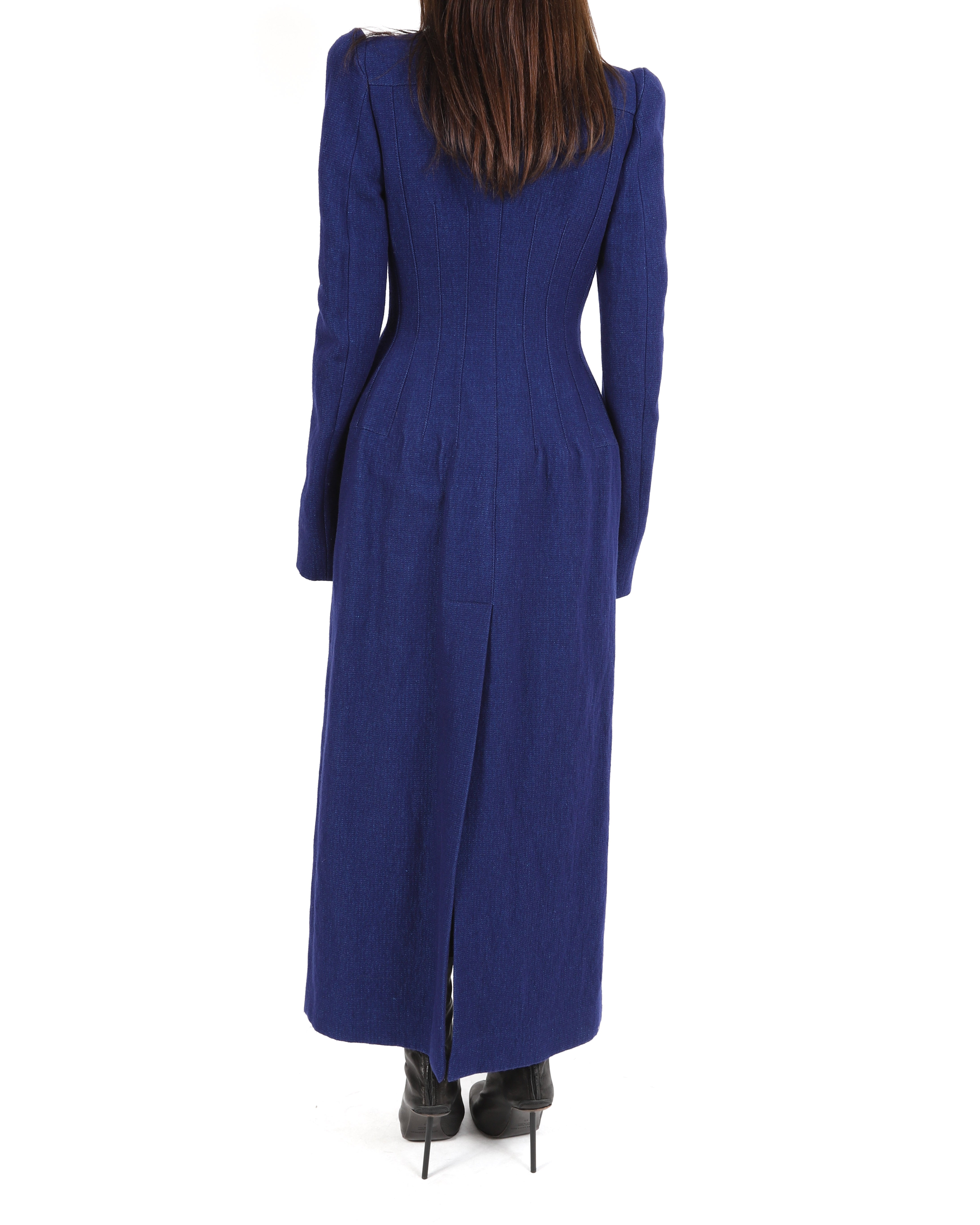 FW17 Round Shoulders Coat with Tailored Waist in Blue Wool