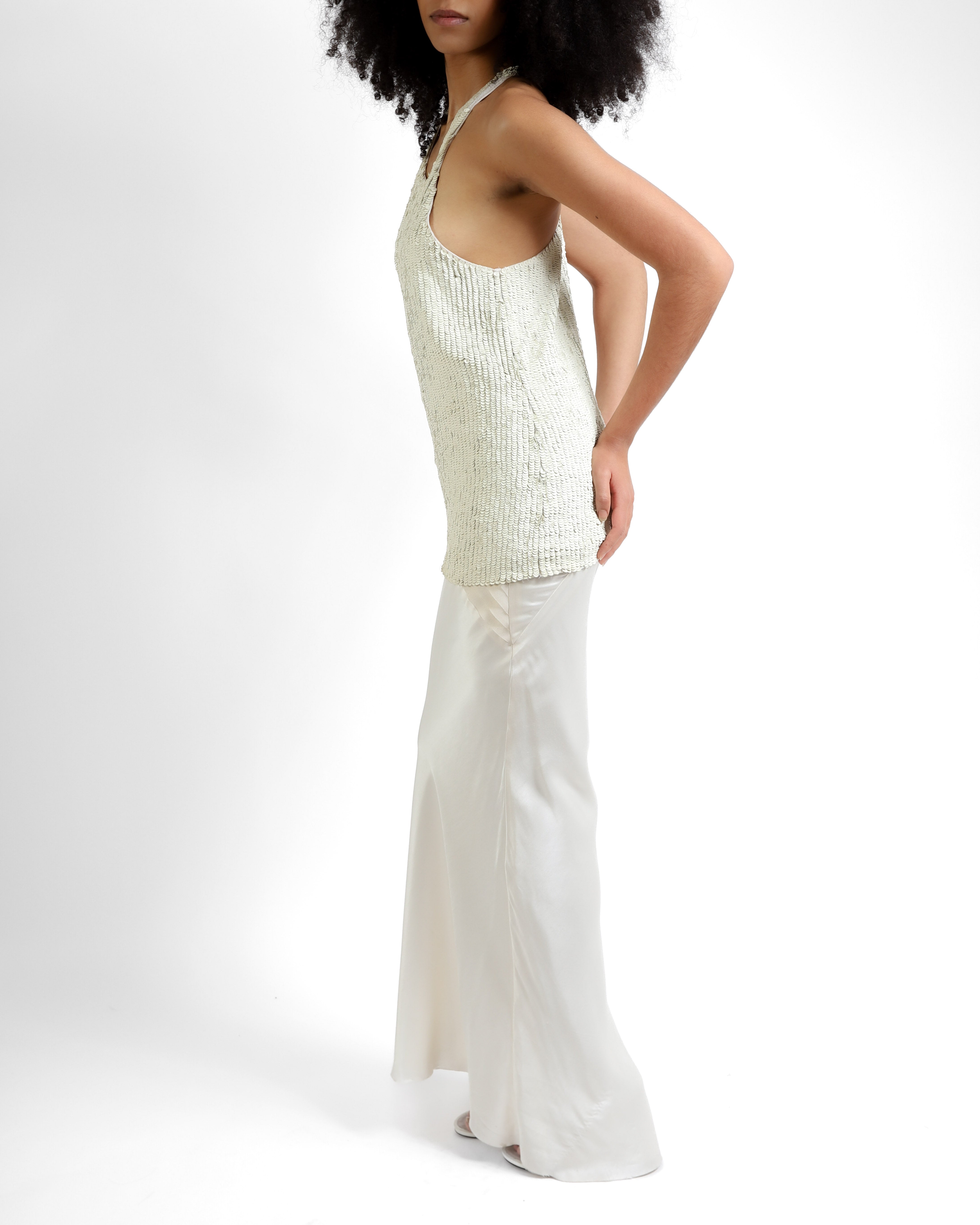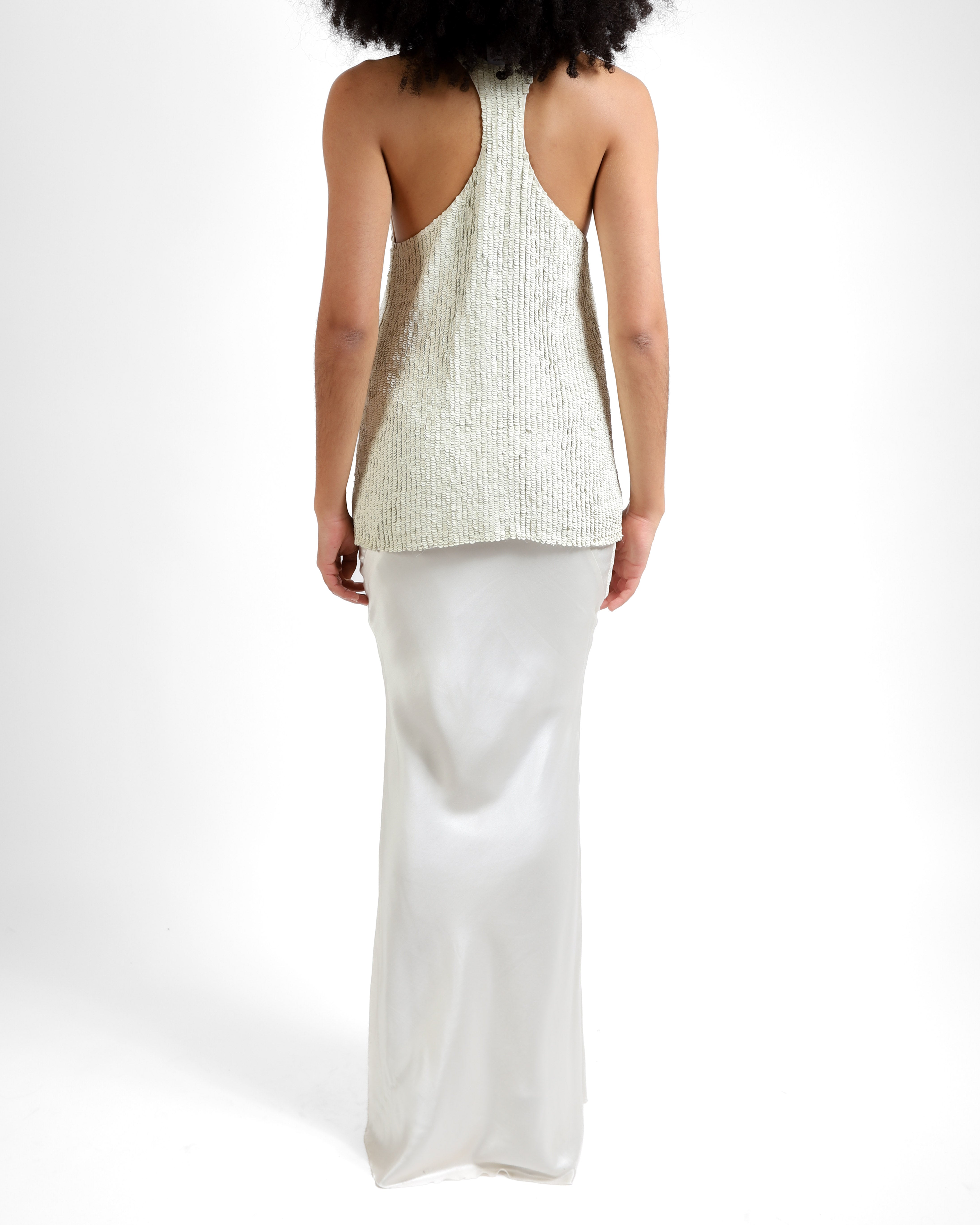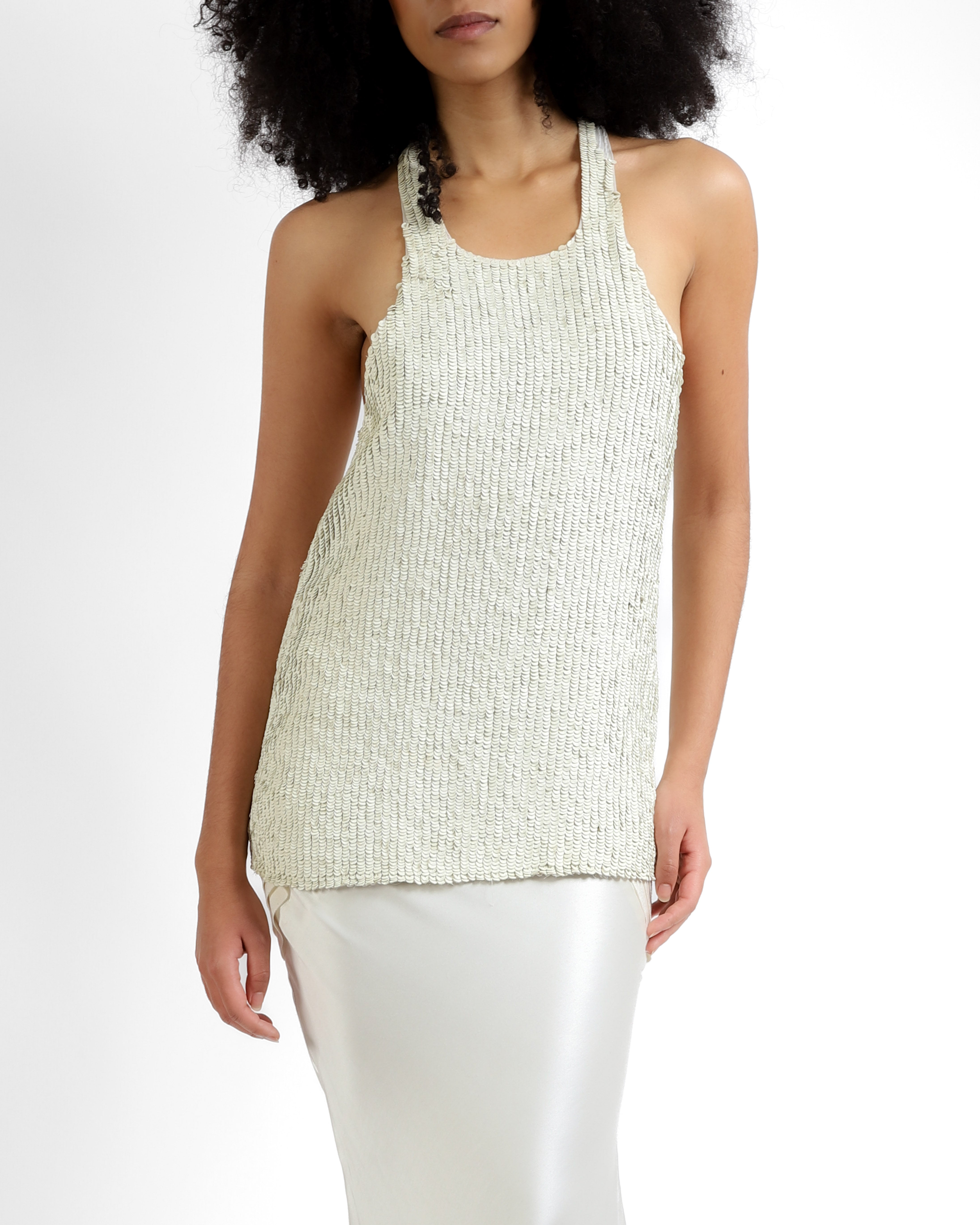 FW18 Tank Top in White Leather Sequins