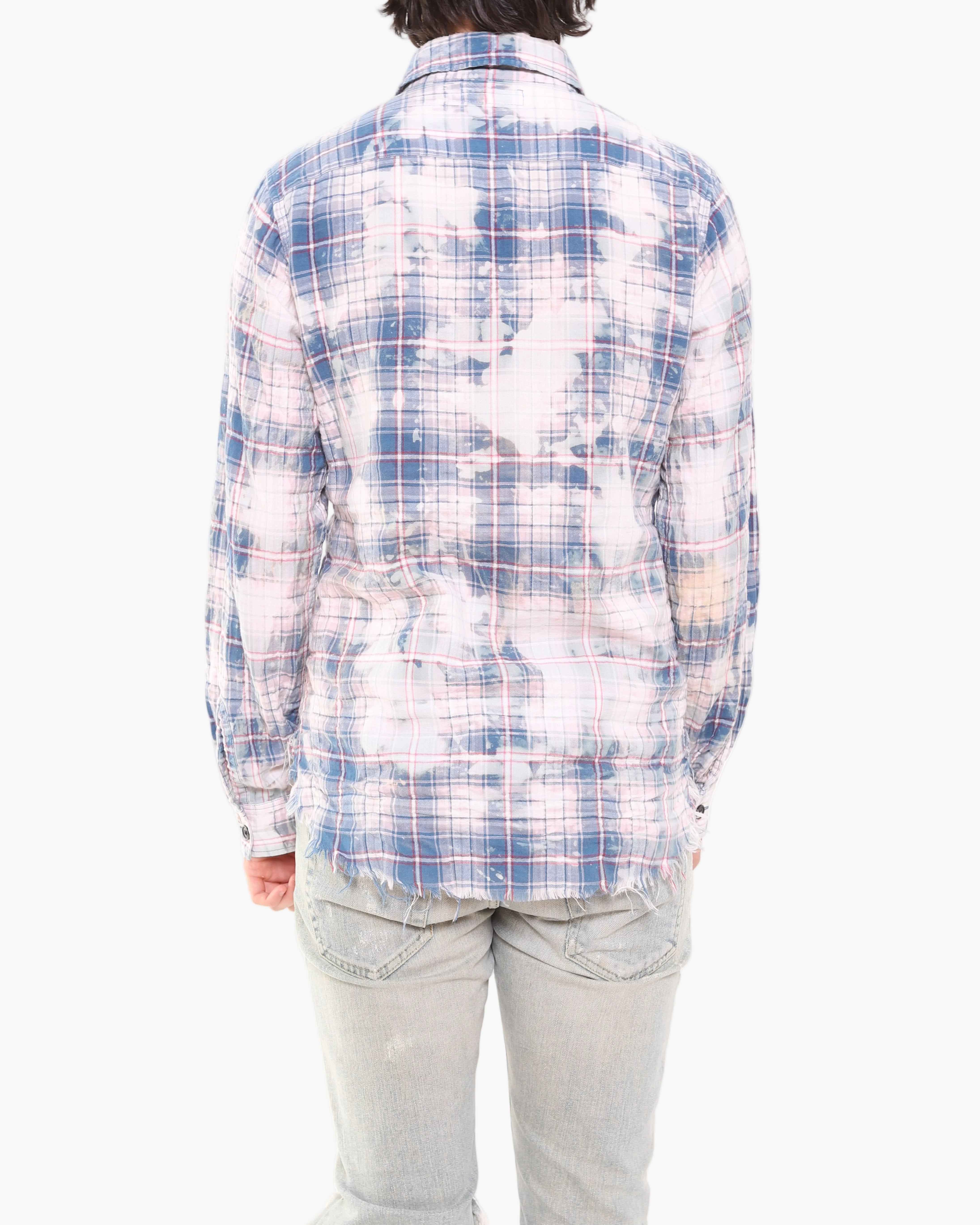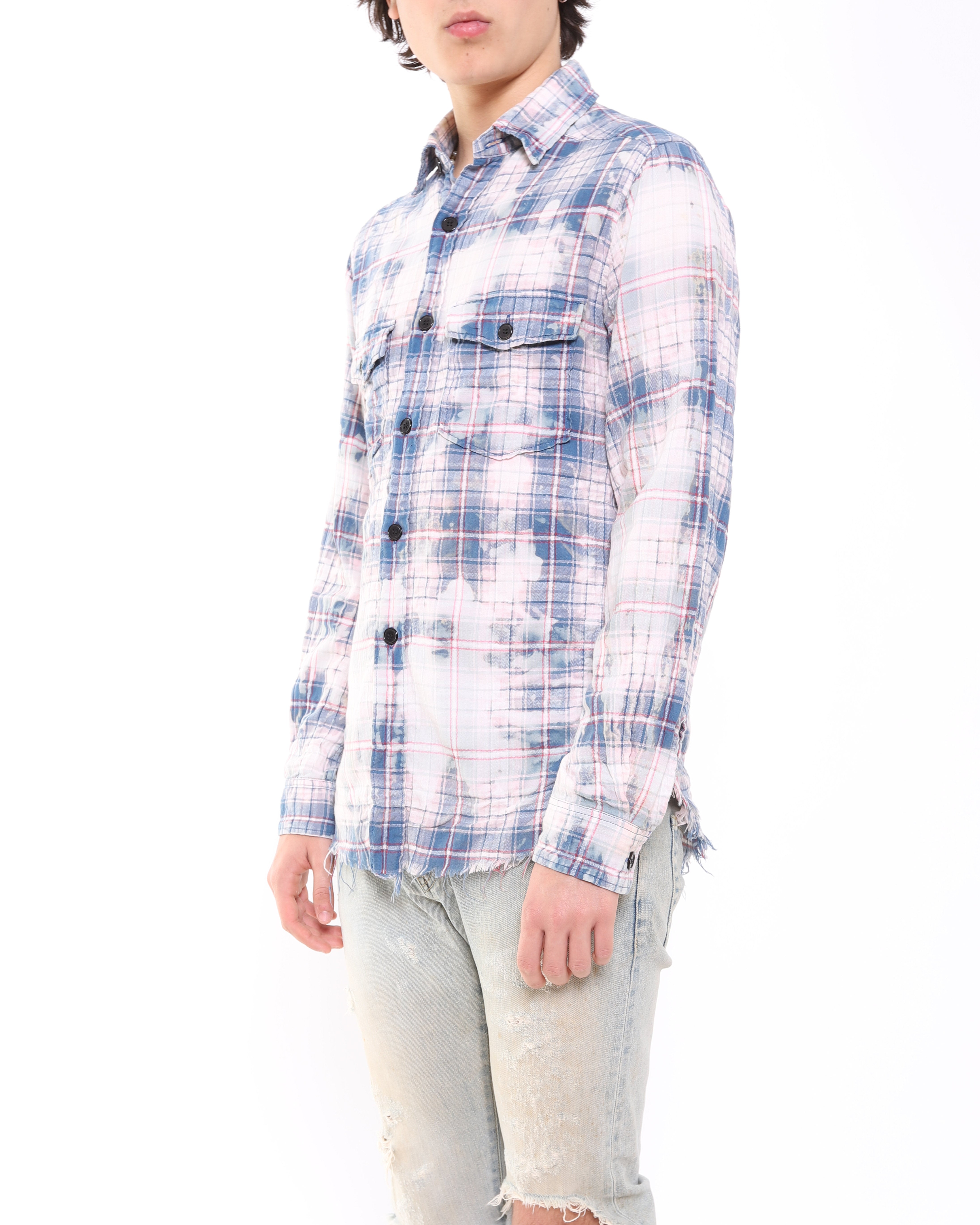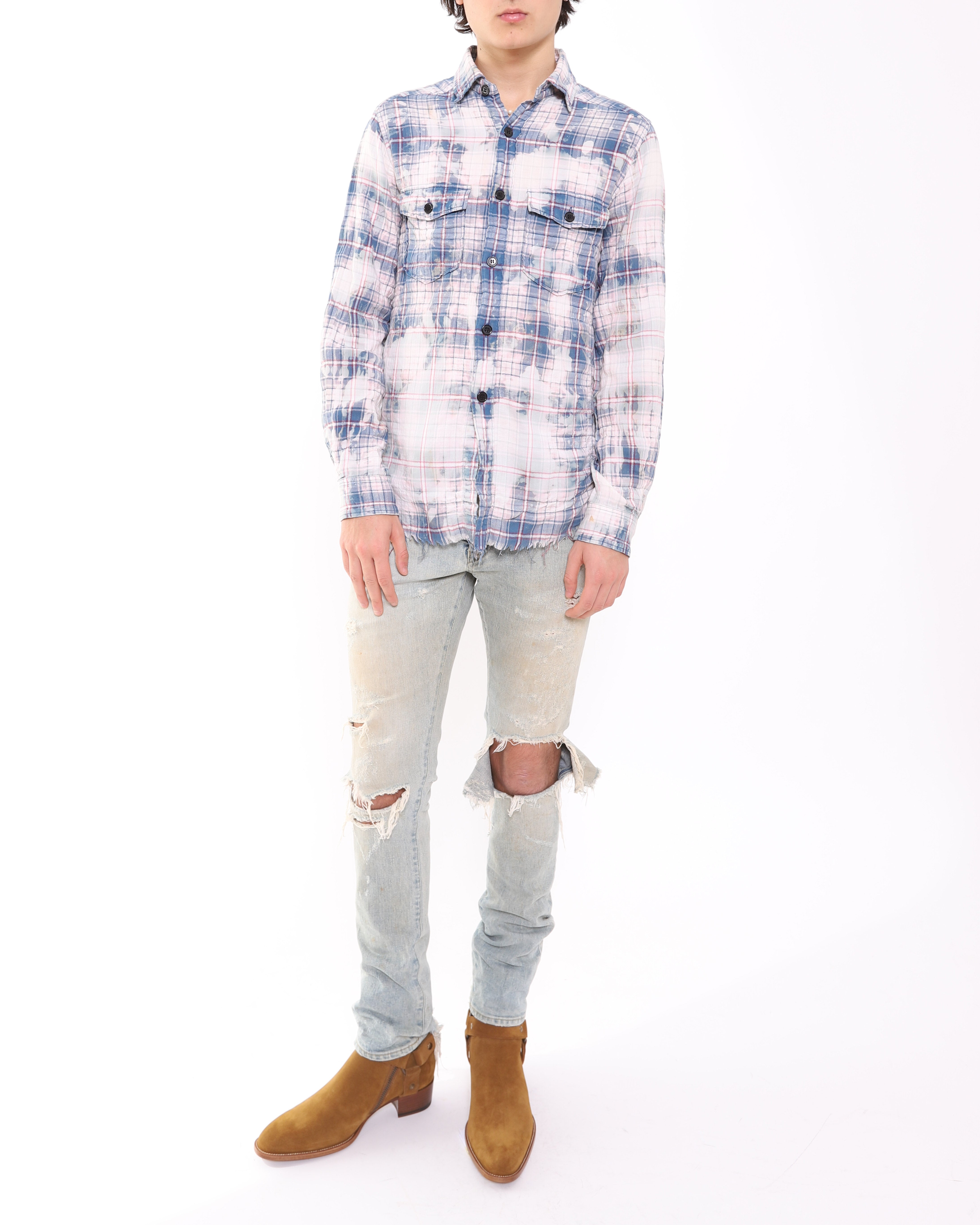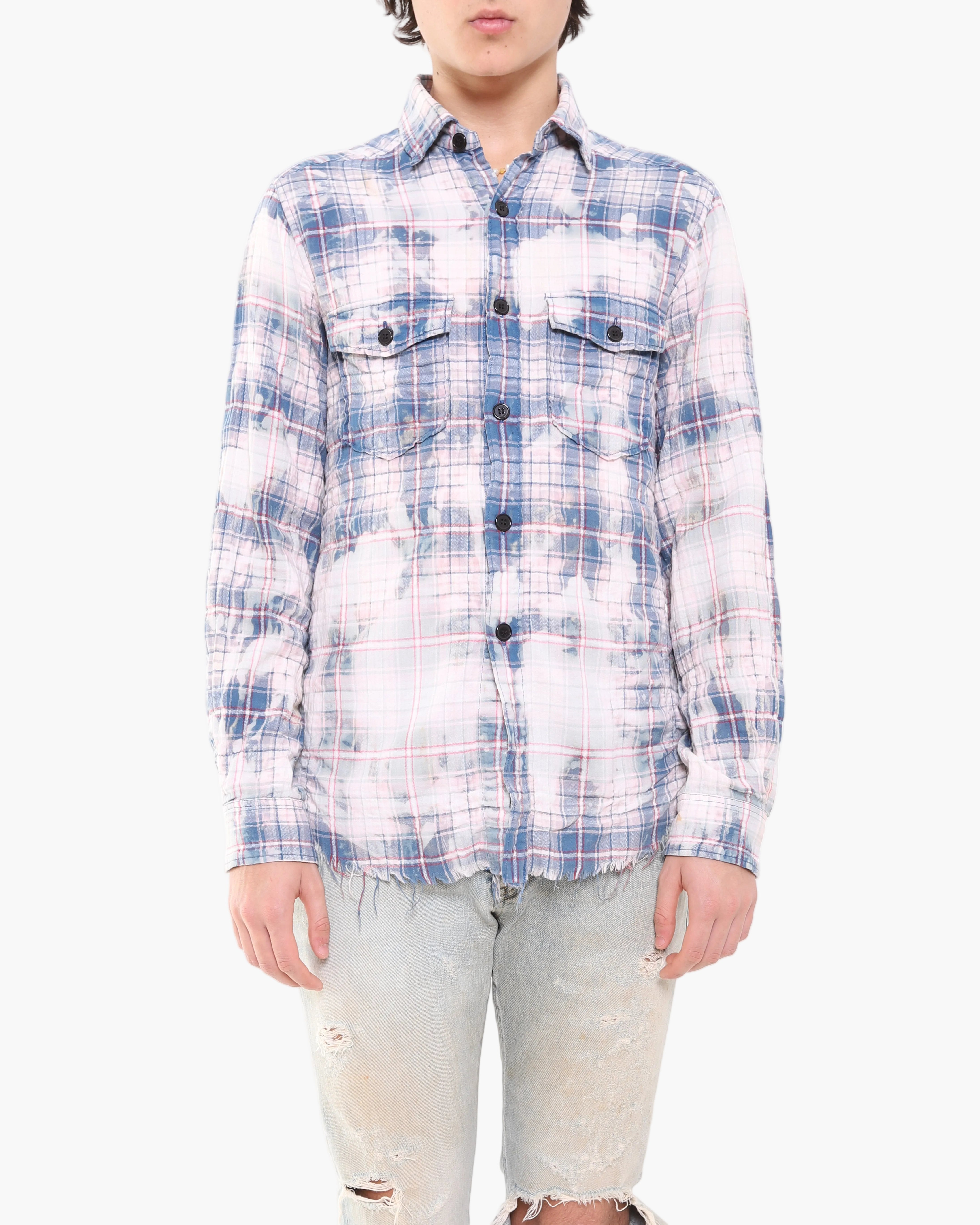SS16 Spot Bleached Distressed Flannel in Blue Cotton