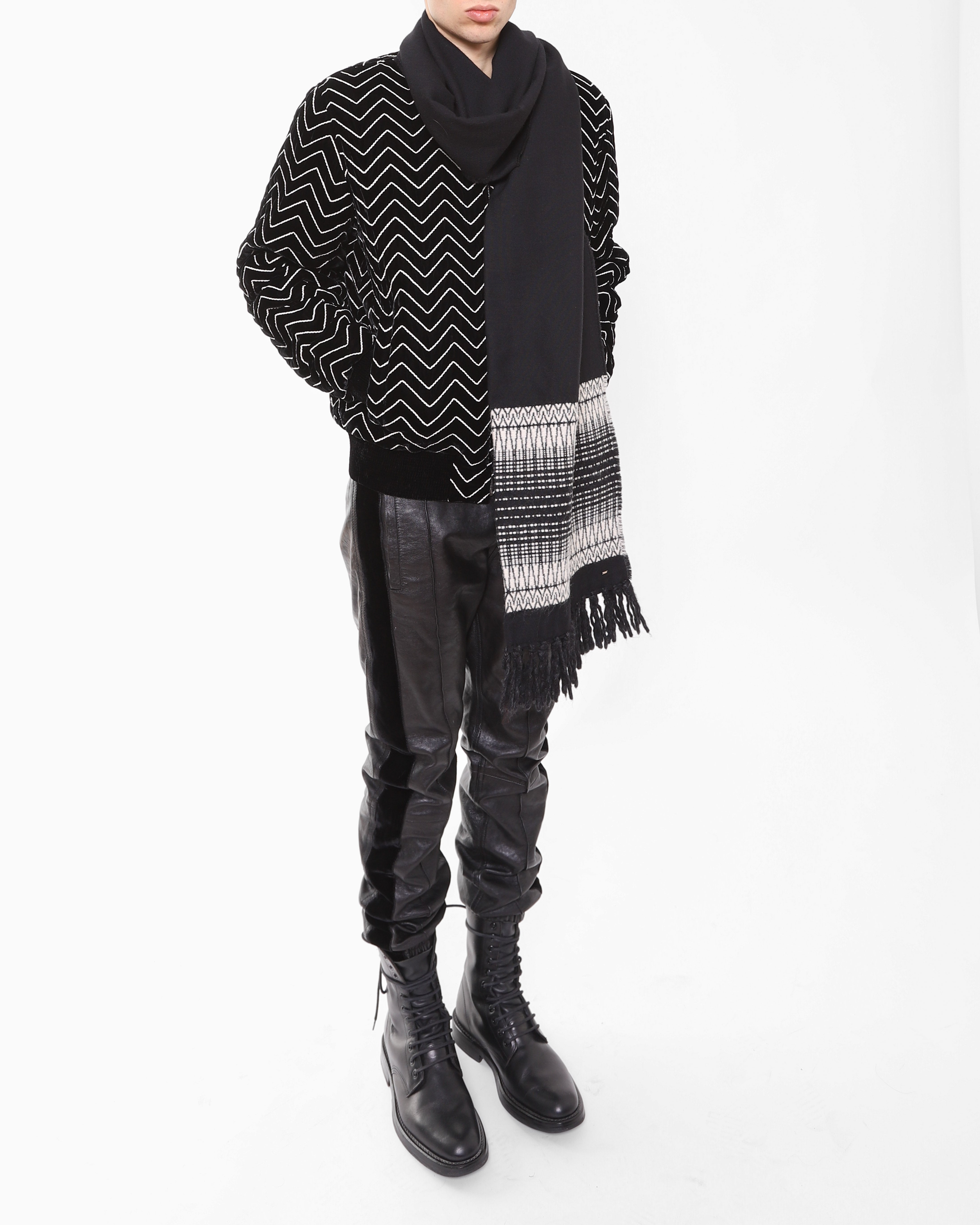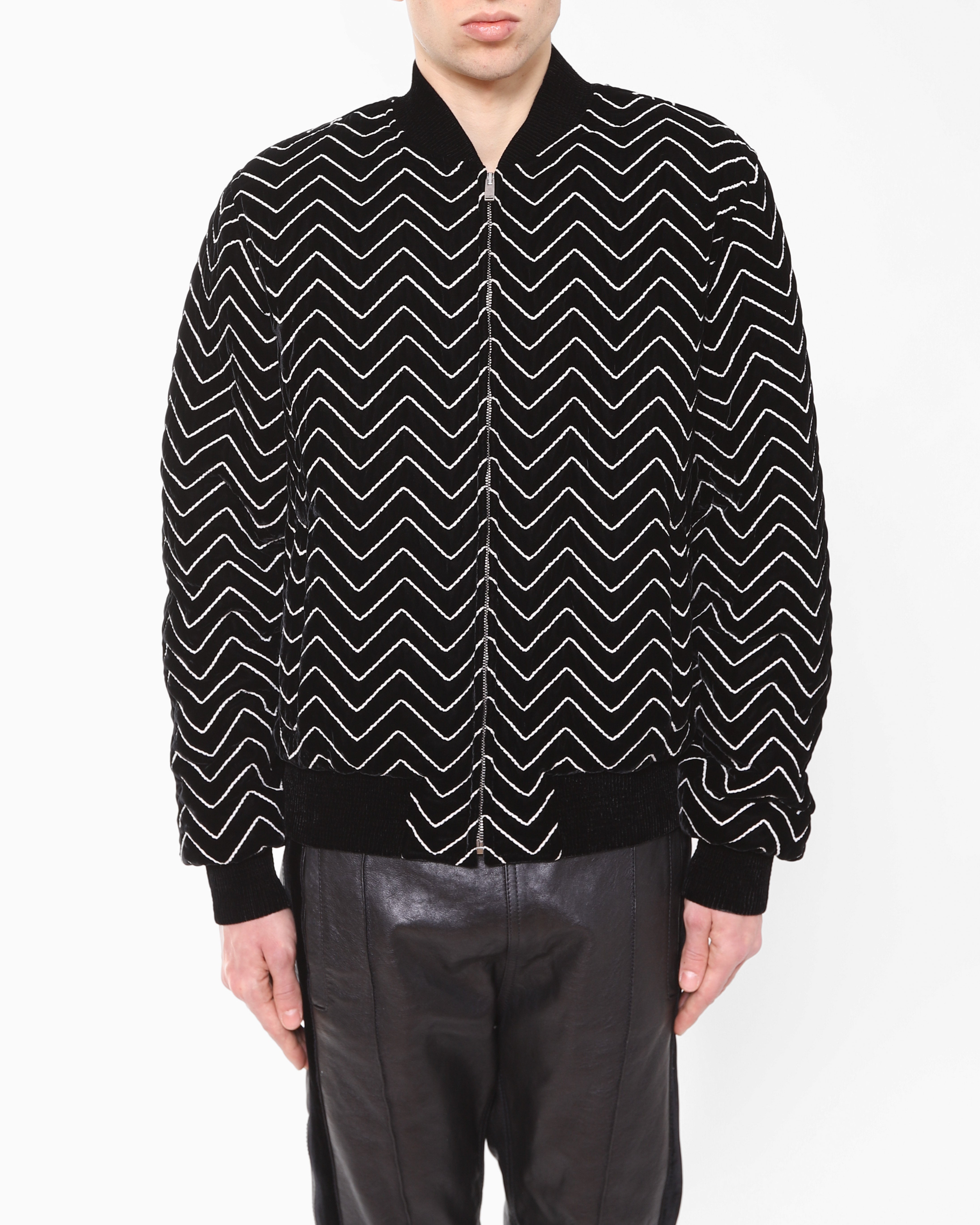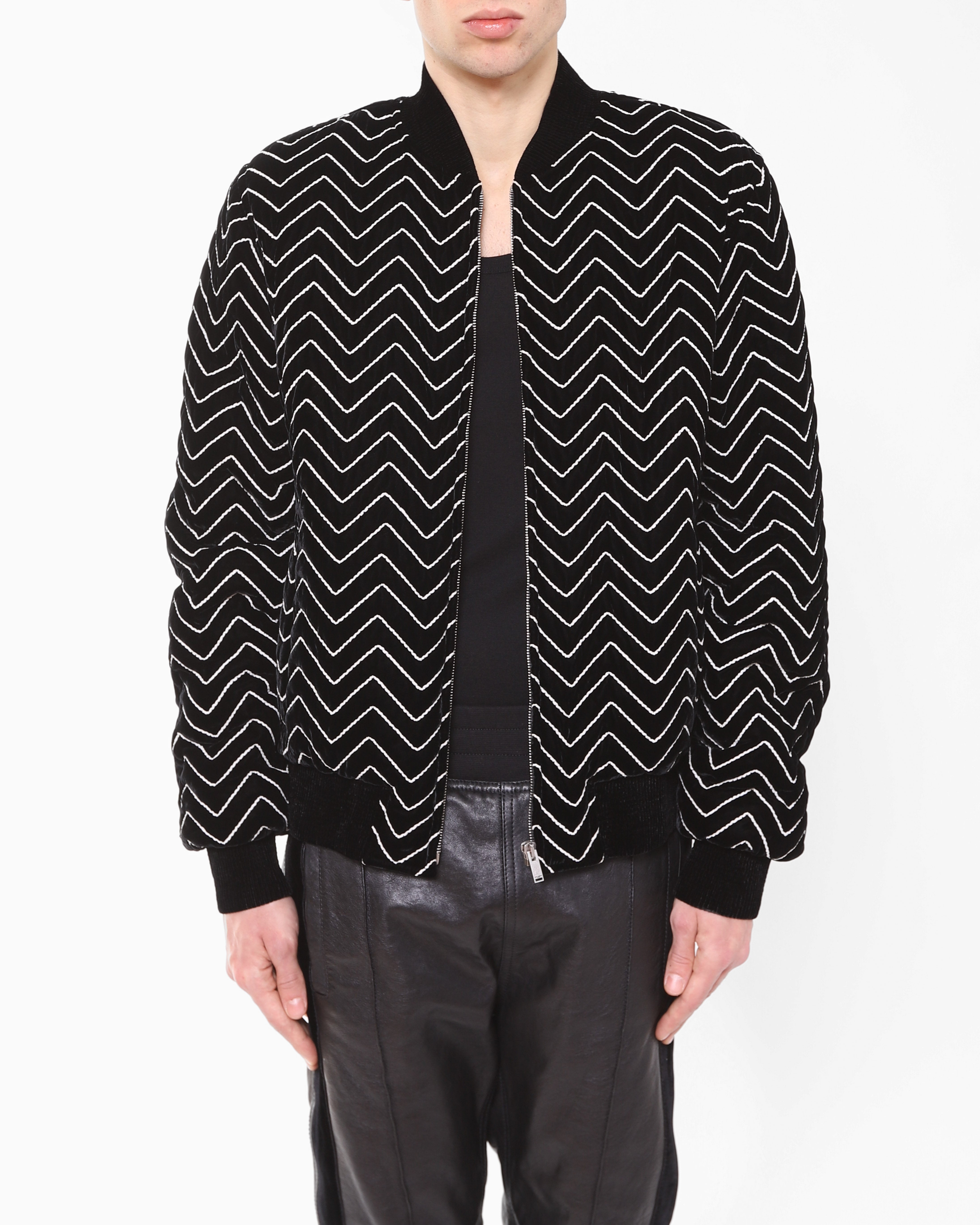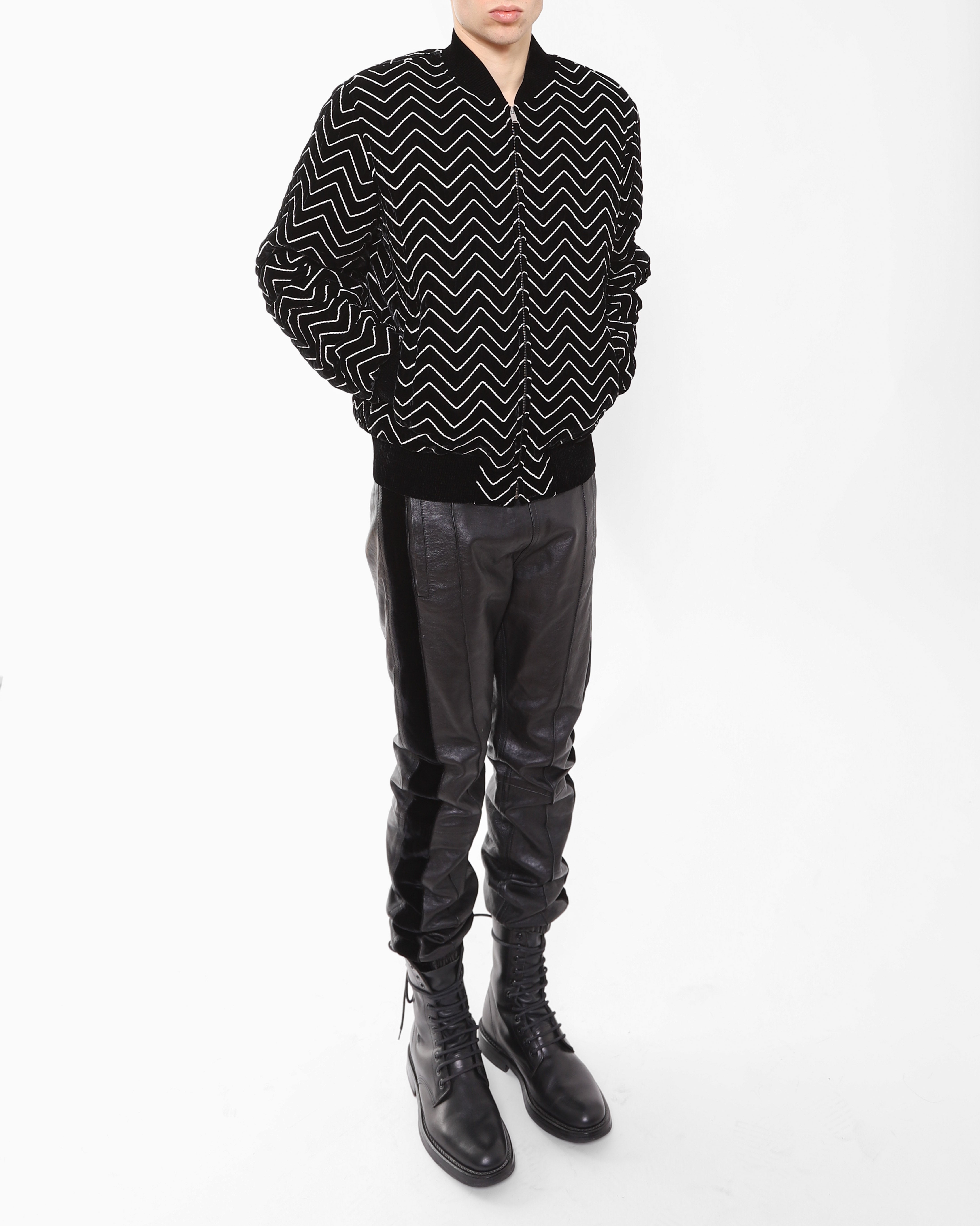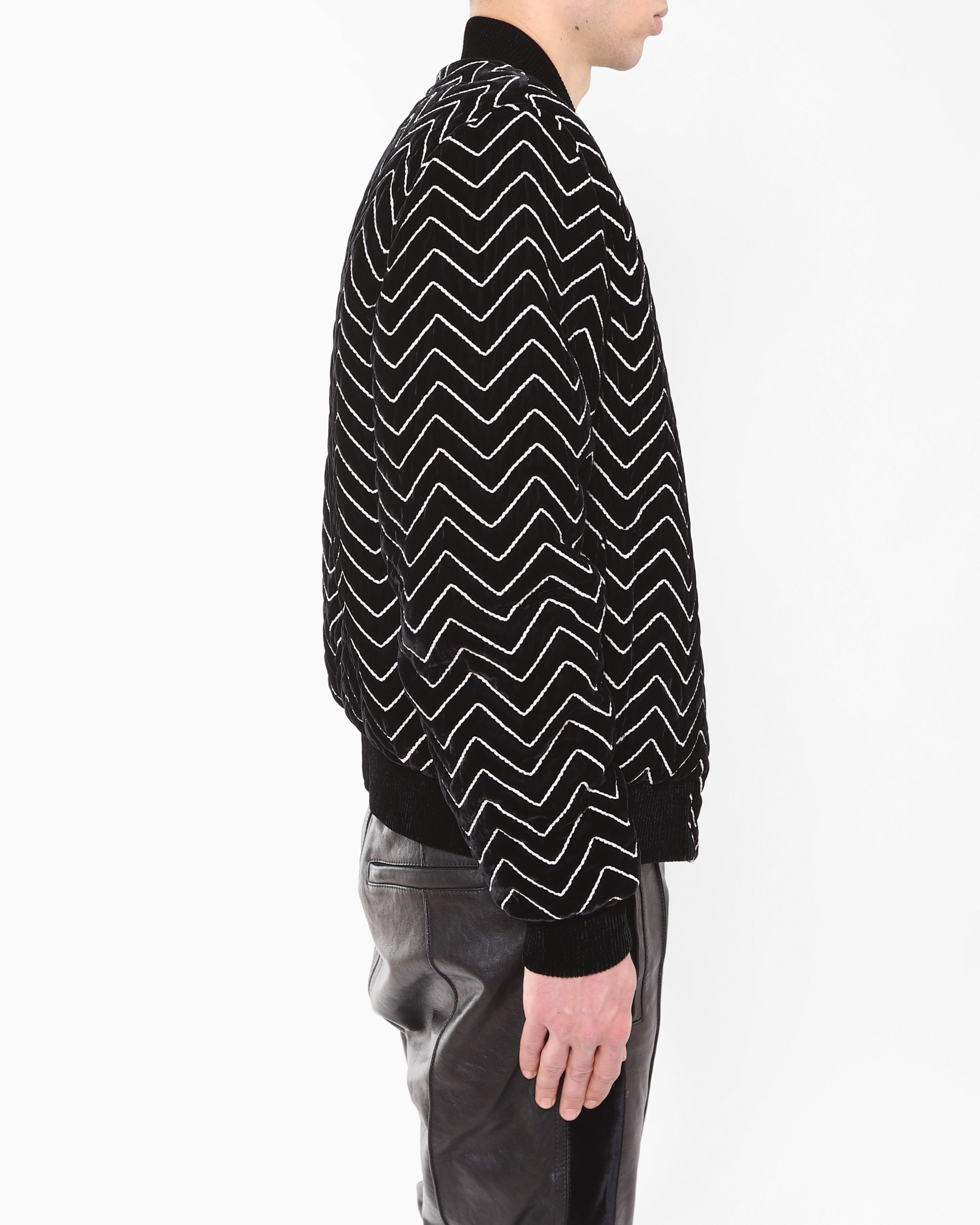 FW21 Chevron Embroidered Bomber in Black Velvet