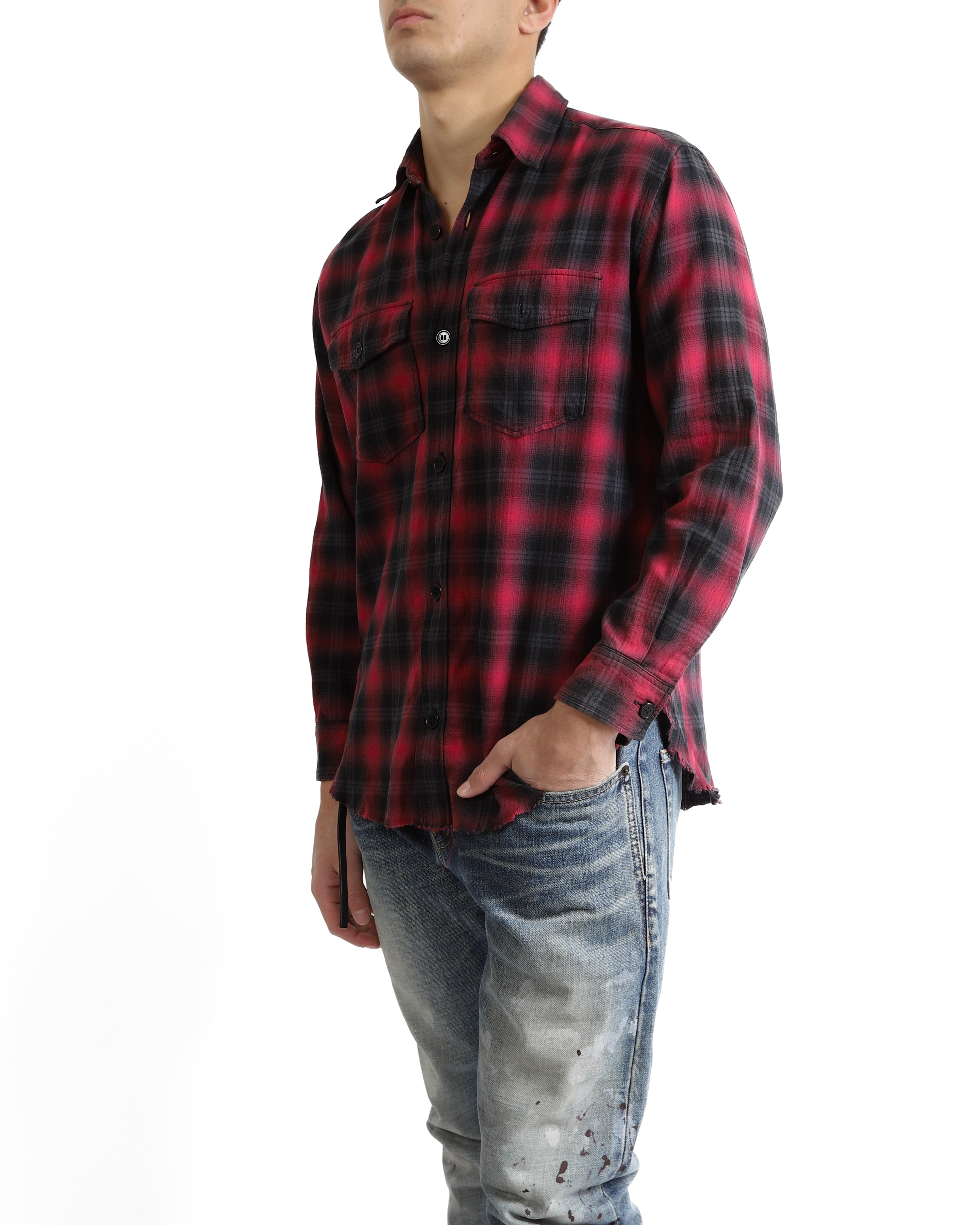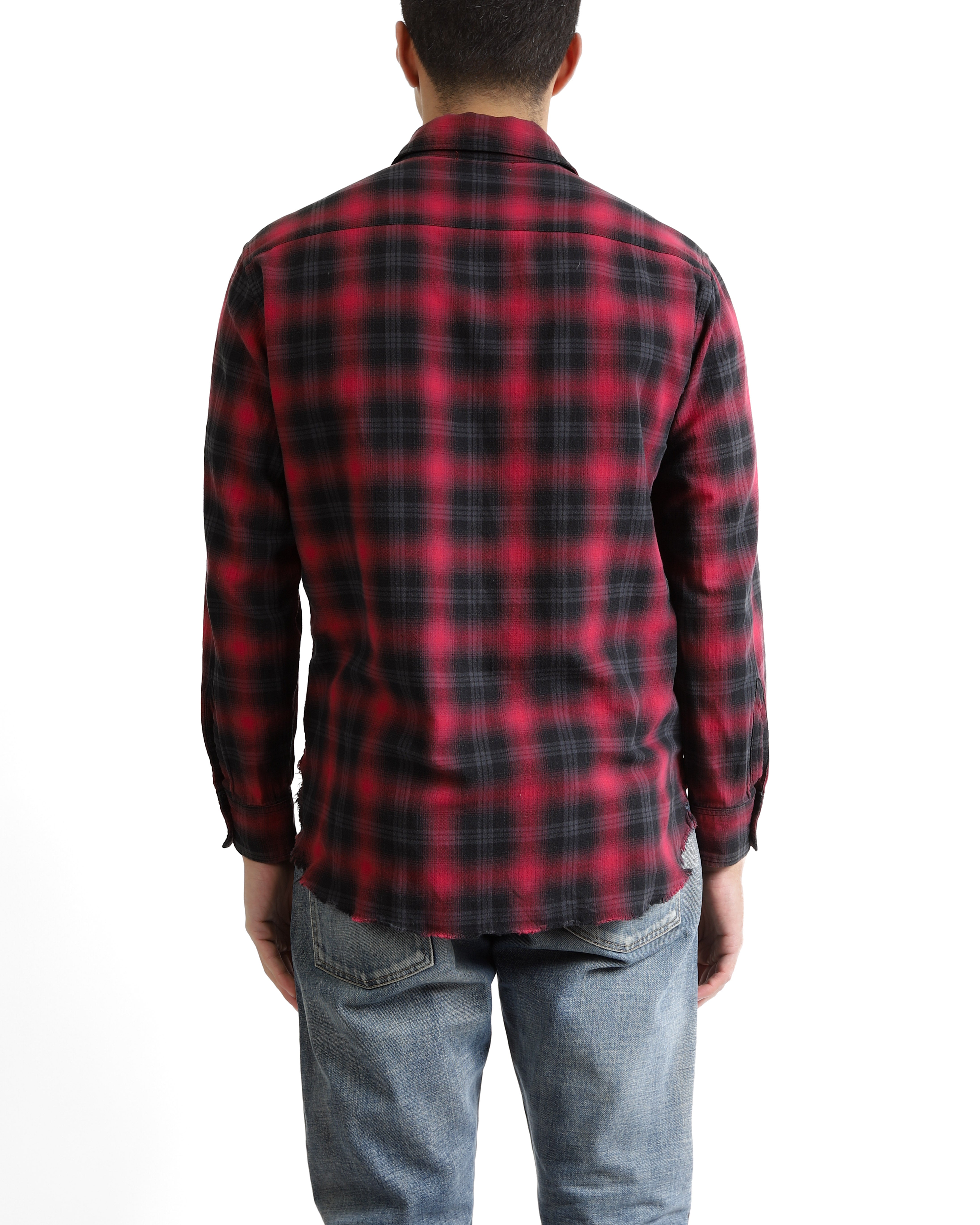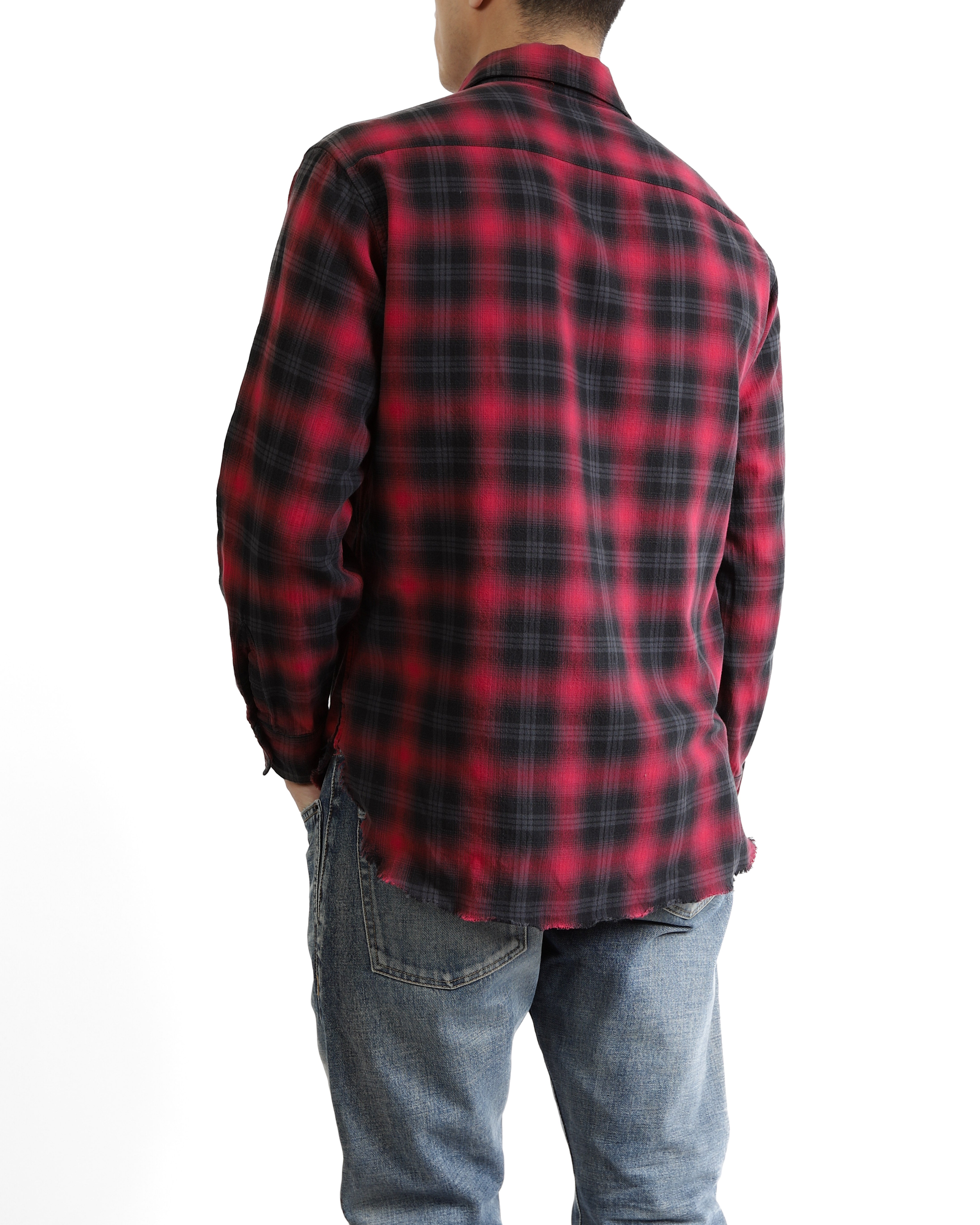 SS16 Distressed Hem Flannel in Black & Red Woool