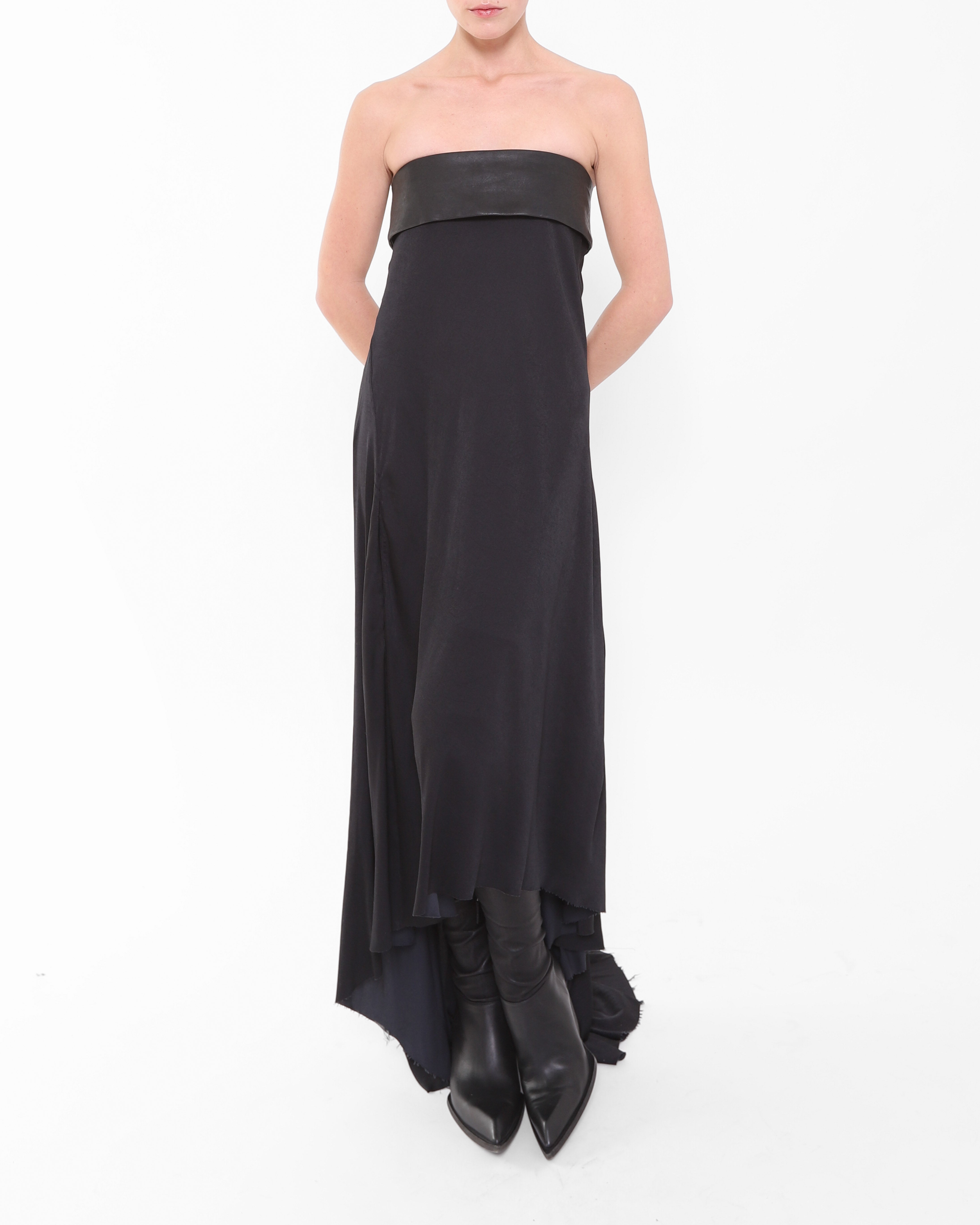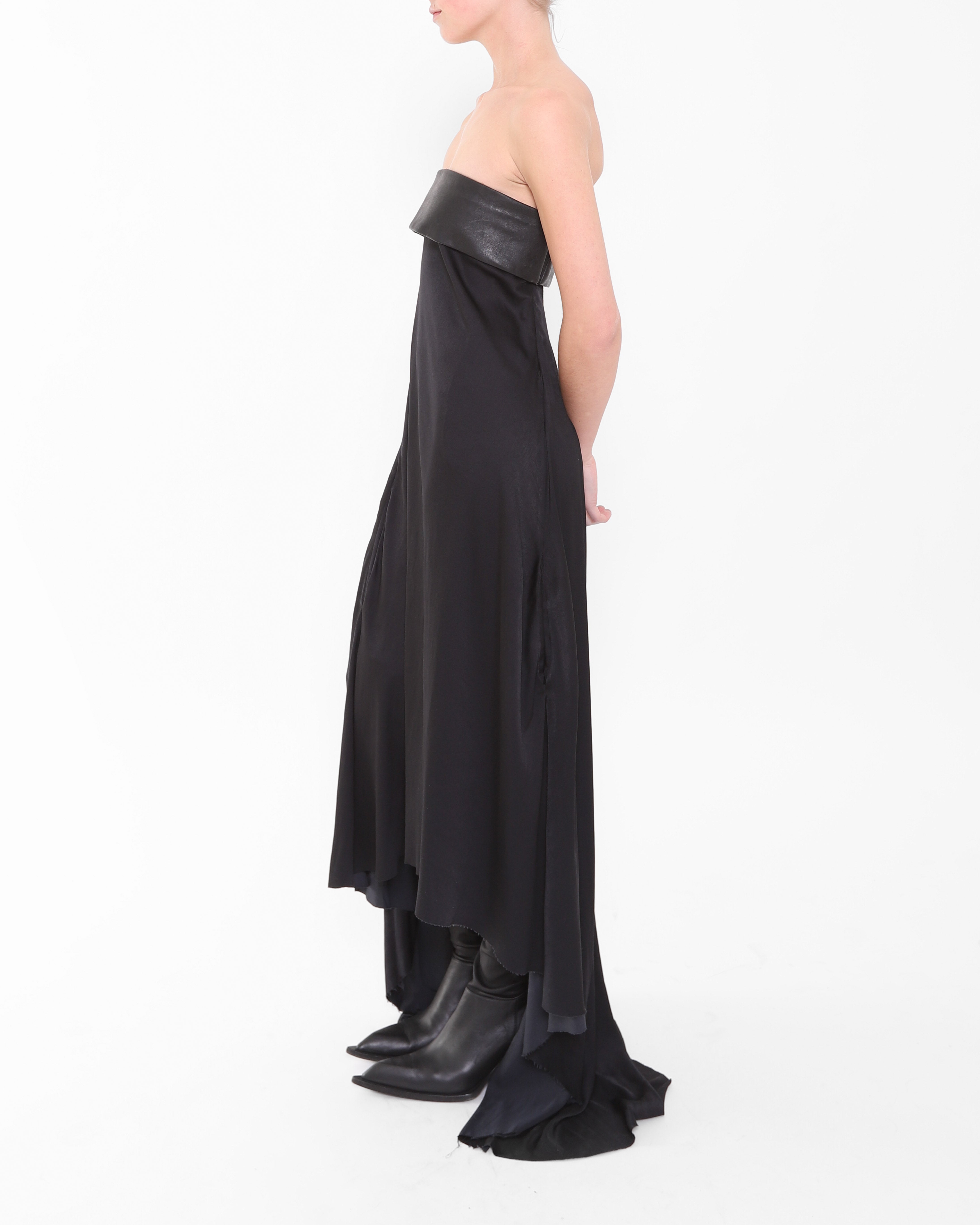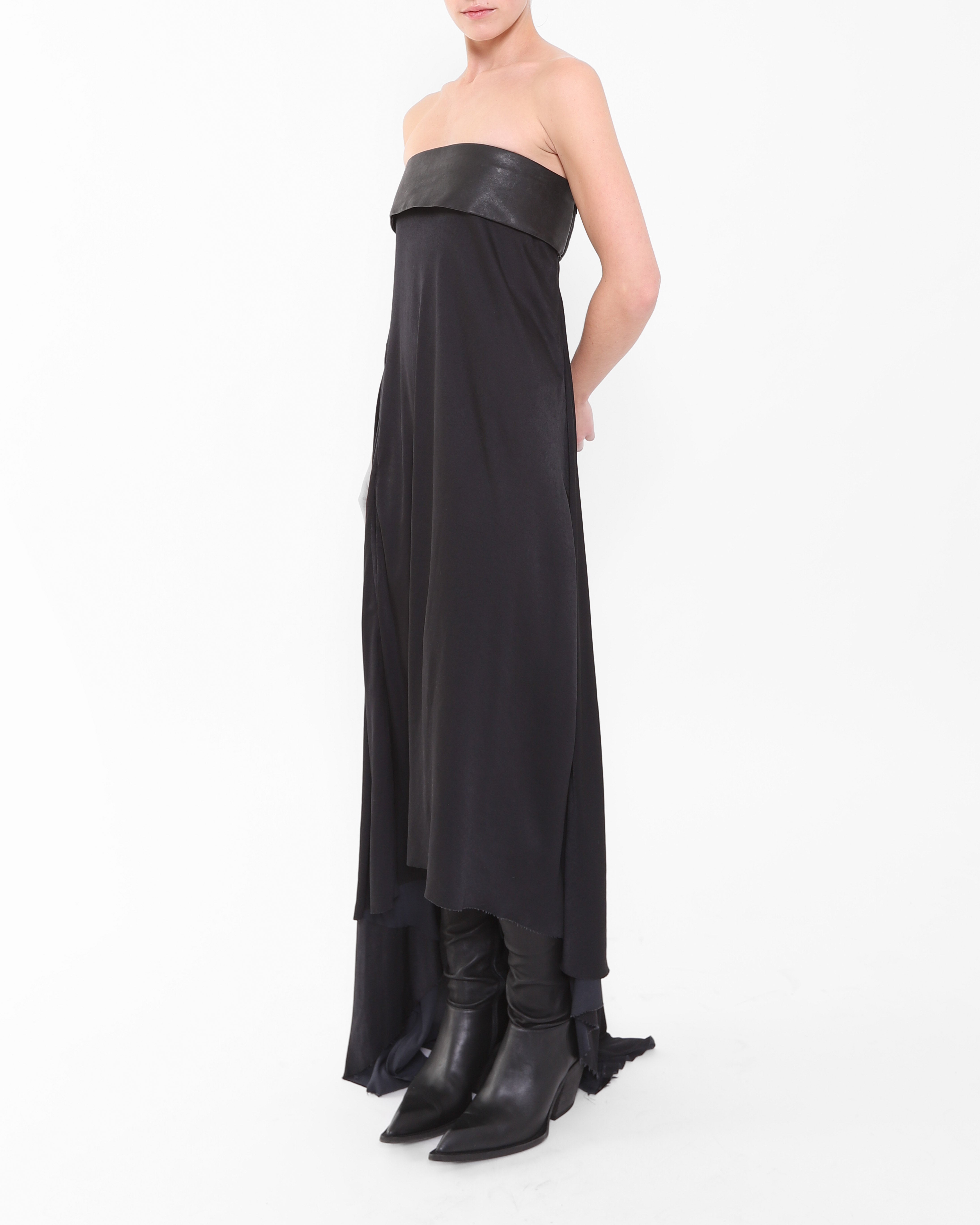 SS13 Leather Bust Dress in Black Silk