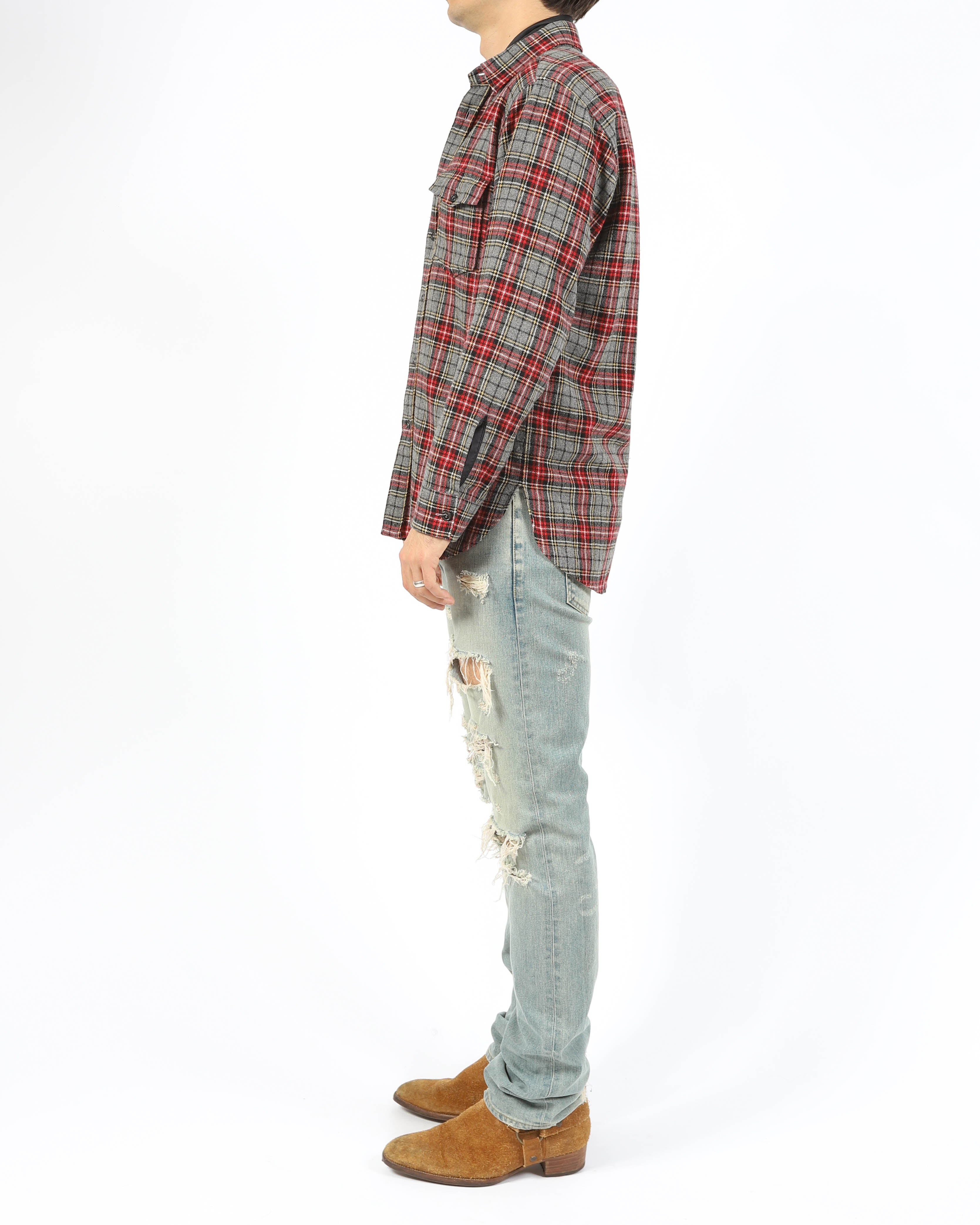 This oversized flannel in checked wool from FW13 combines volume with a warm, textured finish. The classic check pattern lends it a timeless, vintage edge, while the wool fabric adds depth and structure.