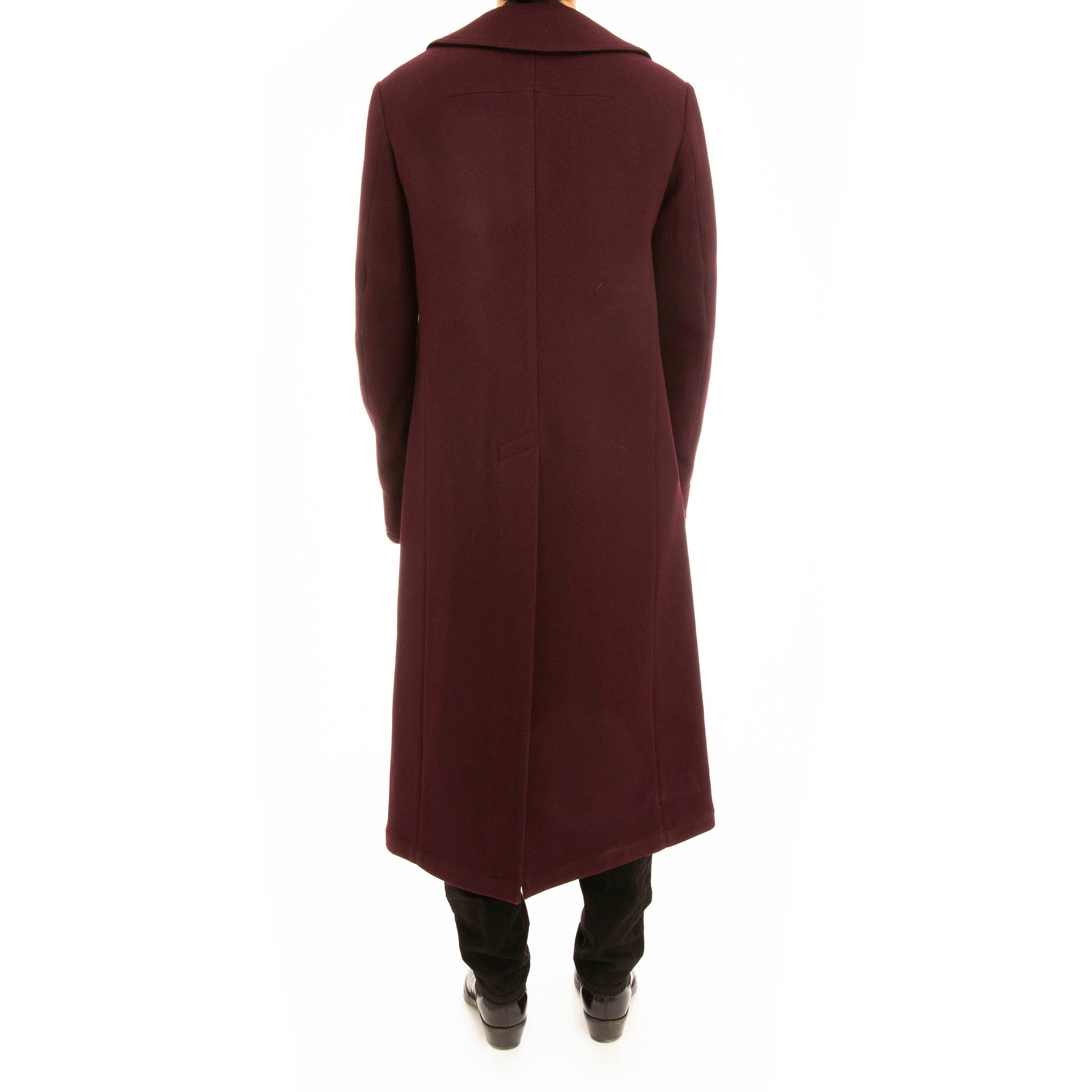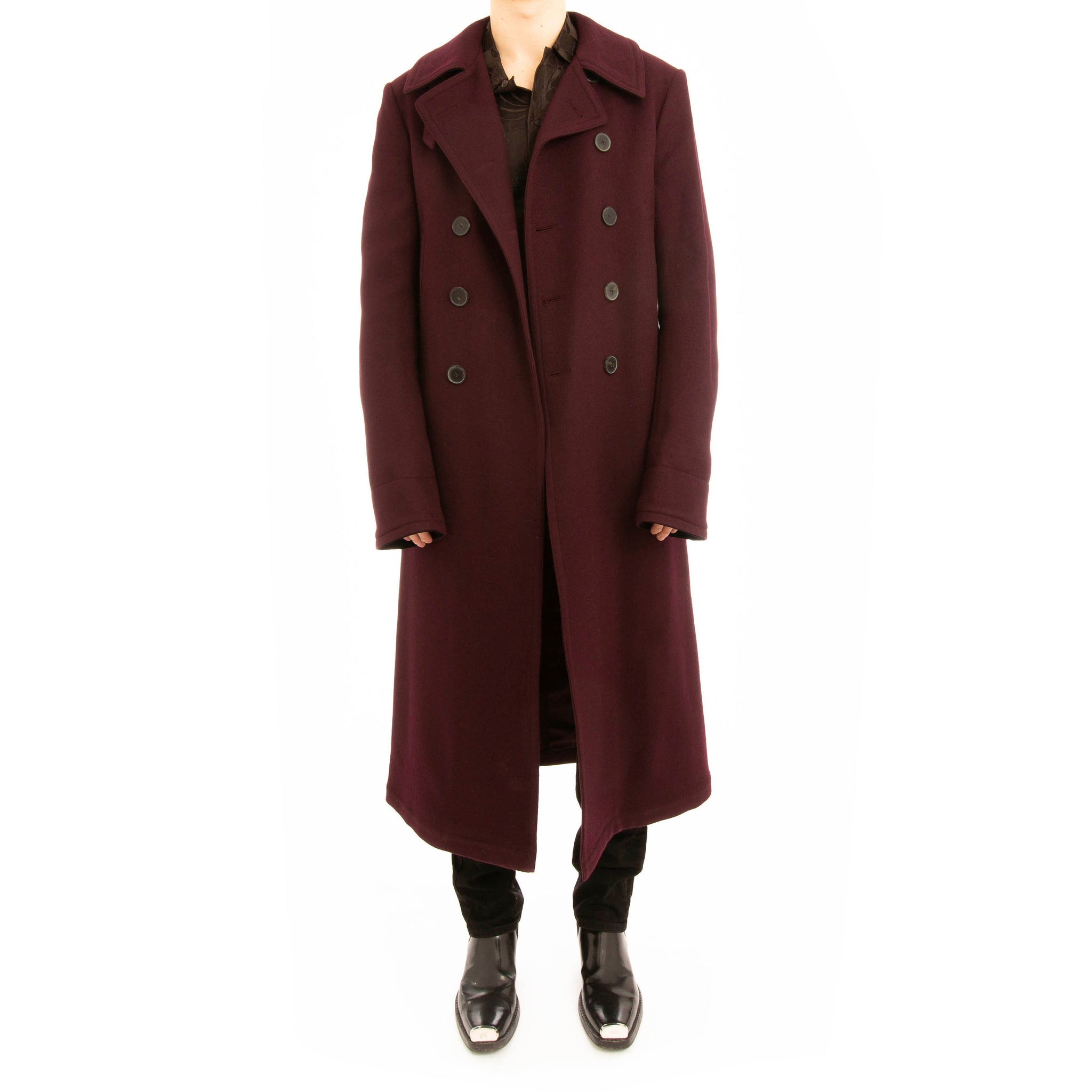 With this coat, Haider Ackermann brought an addition to the ultimate super-villain uniform. The frightening aubergine color, combined with the super long fit makes this a very vicious but beautiful piece, that is why we refer to this coat as the "Joker Coat".