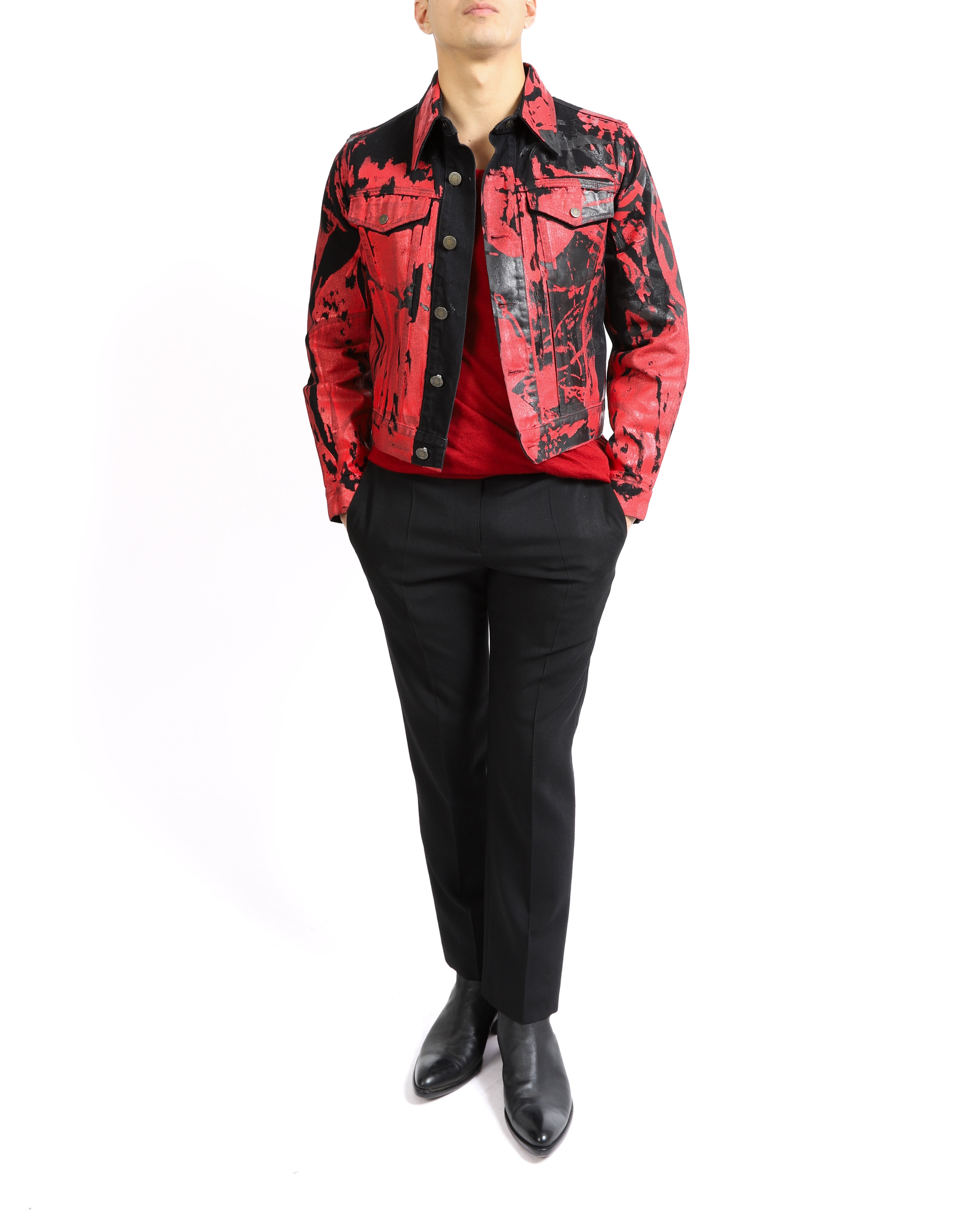 This FW18 screenprinted denim jacket from Calvin Klein 205W39NYC is considered the rarest among the iconic screenprint styles from the collection. The front features a Warhol print applied in thick paint.