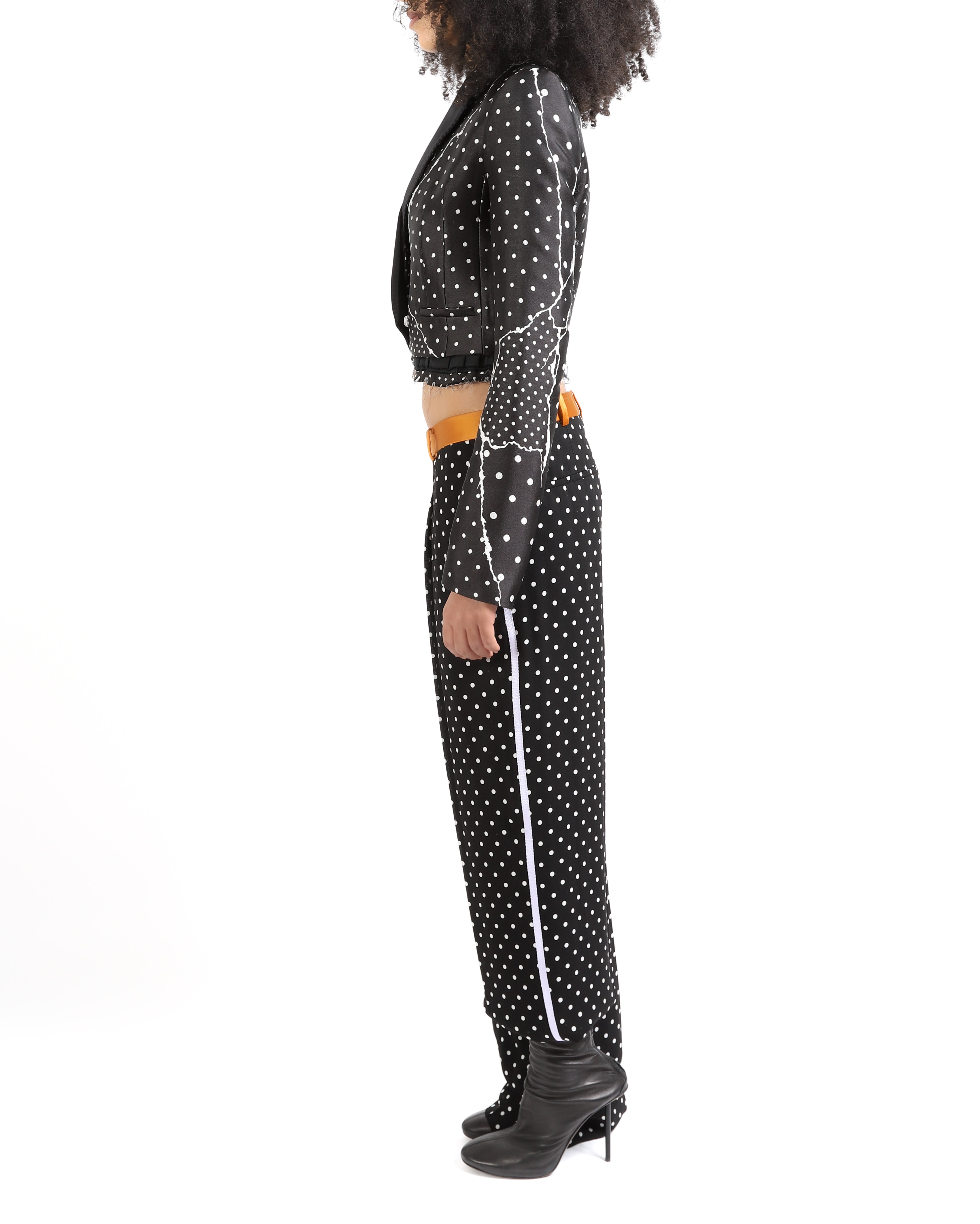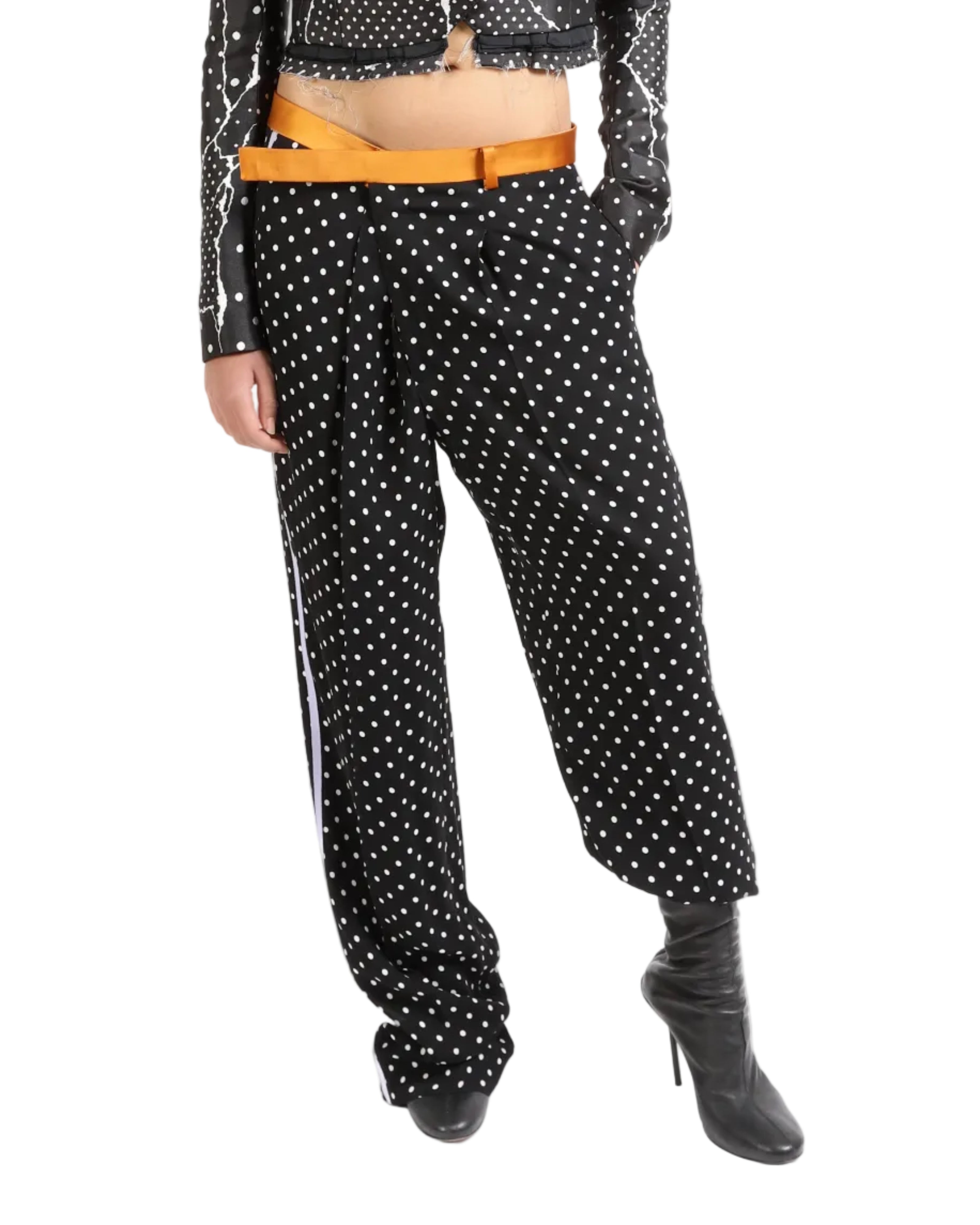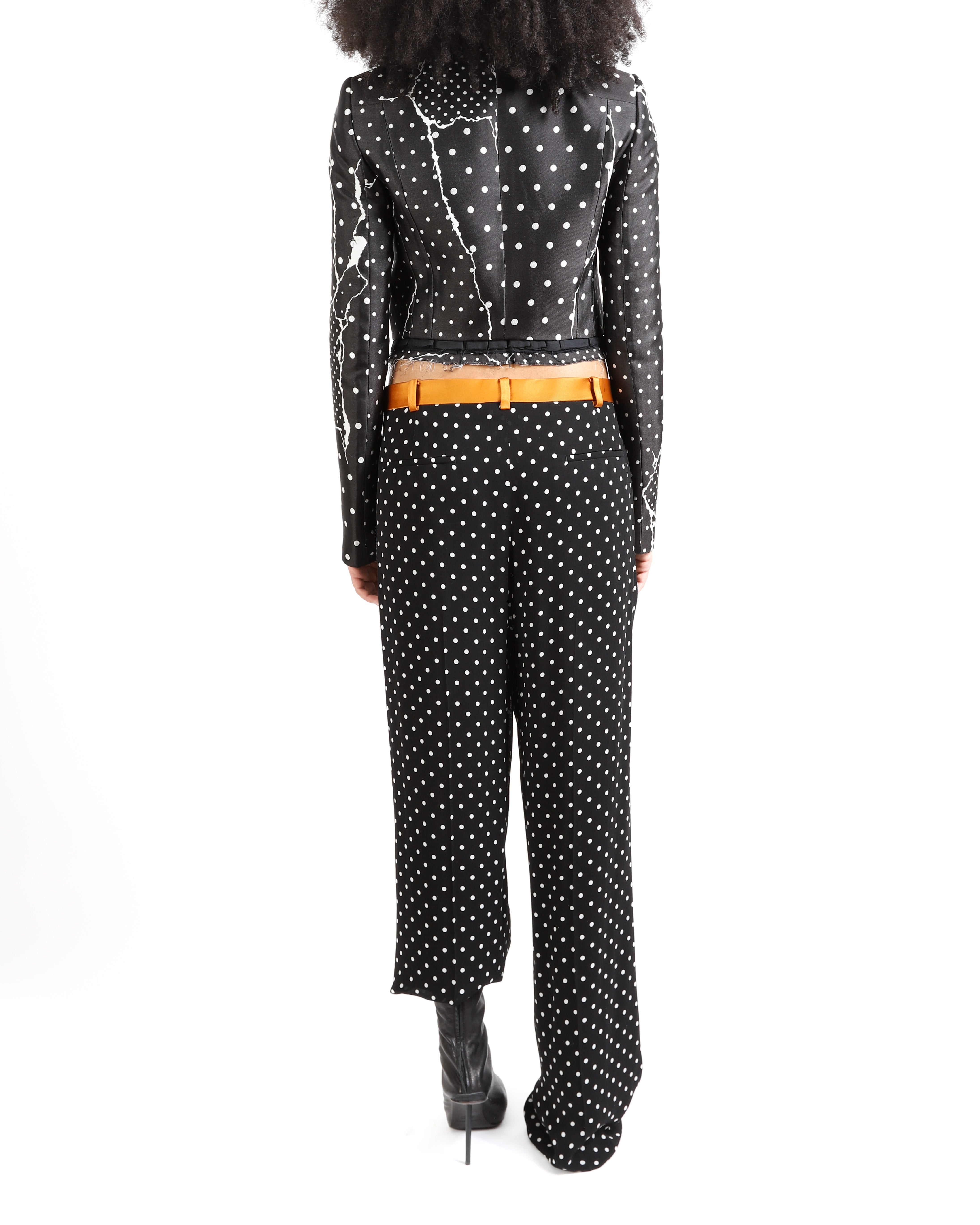 SS20 Straight Leg Trousers in Black and White Dotted Viscose