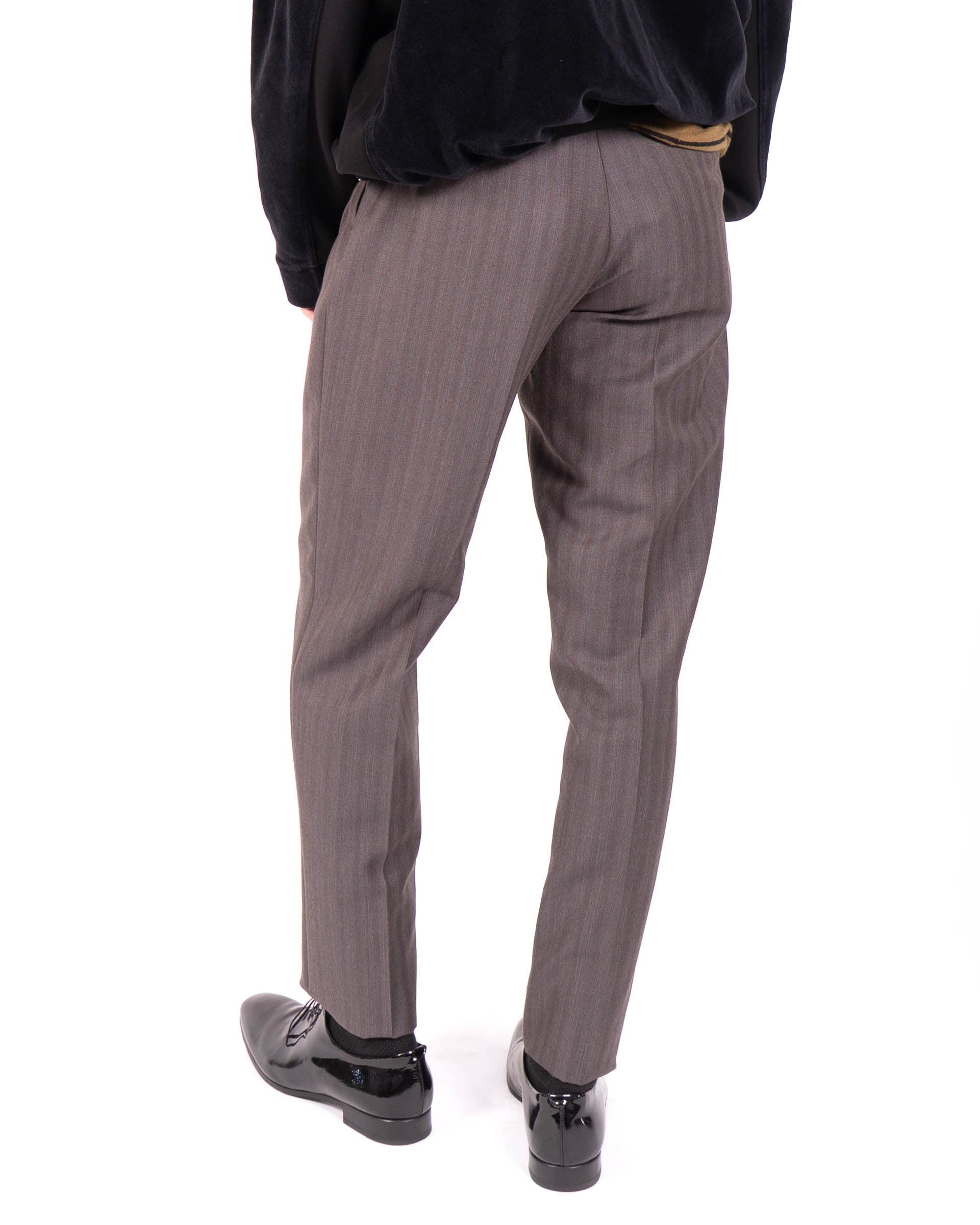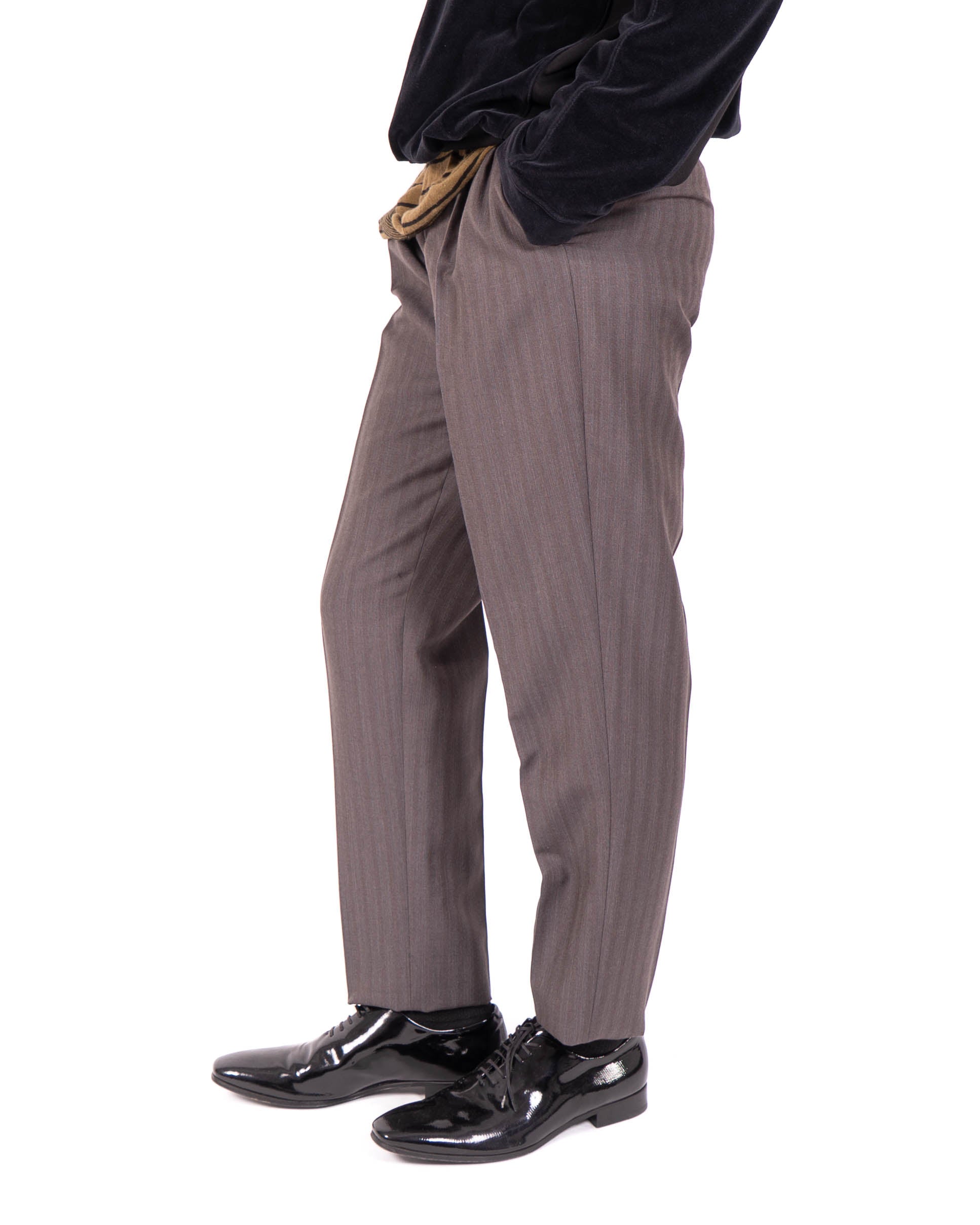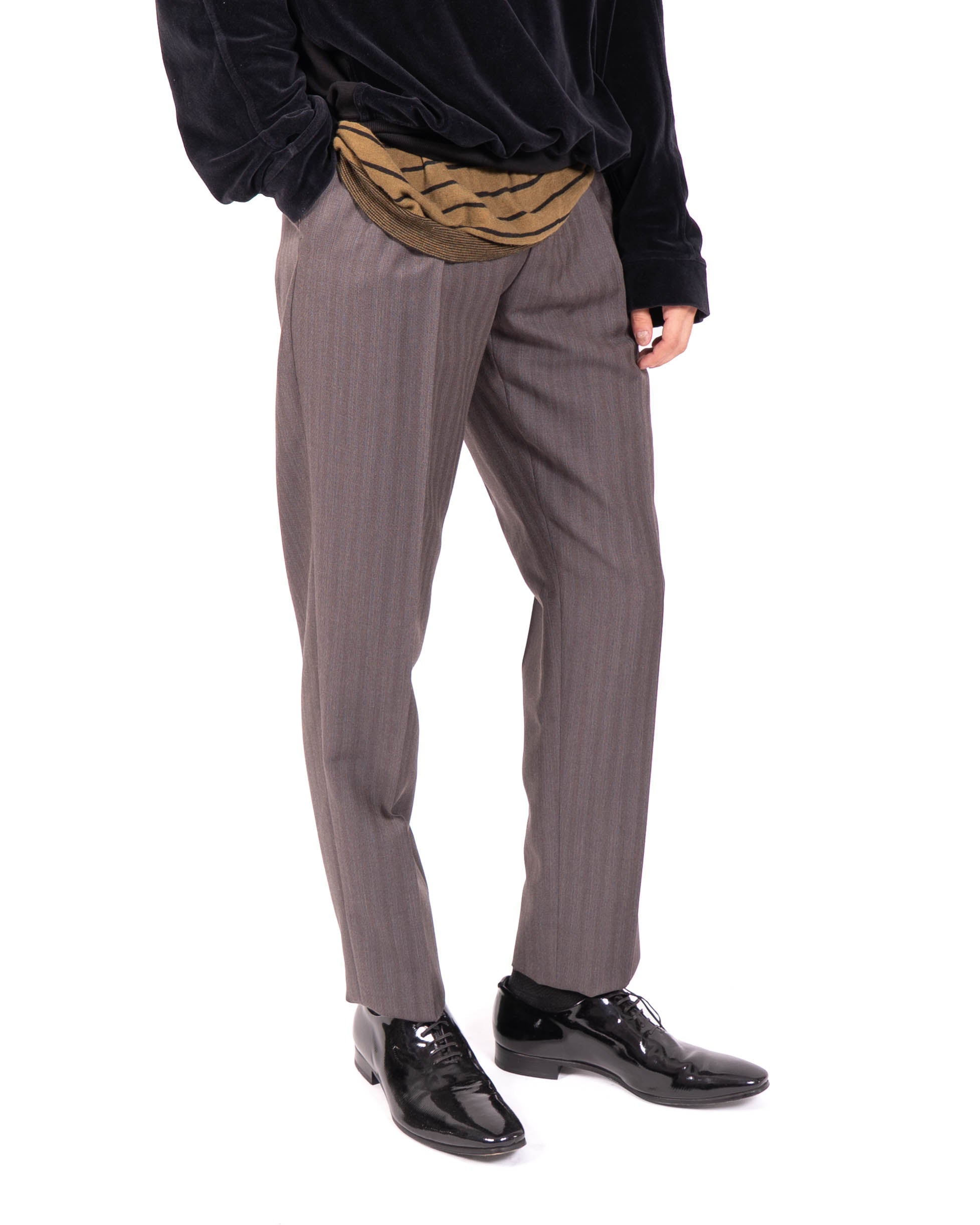These high waisted pleated trousers in grey wool by Dior are understated yet beautifully structured. The soft, midweight wool drapes elegantly while maintaining a clean silhouette.