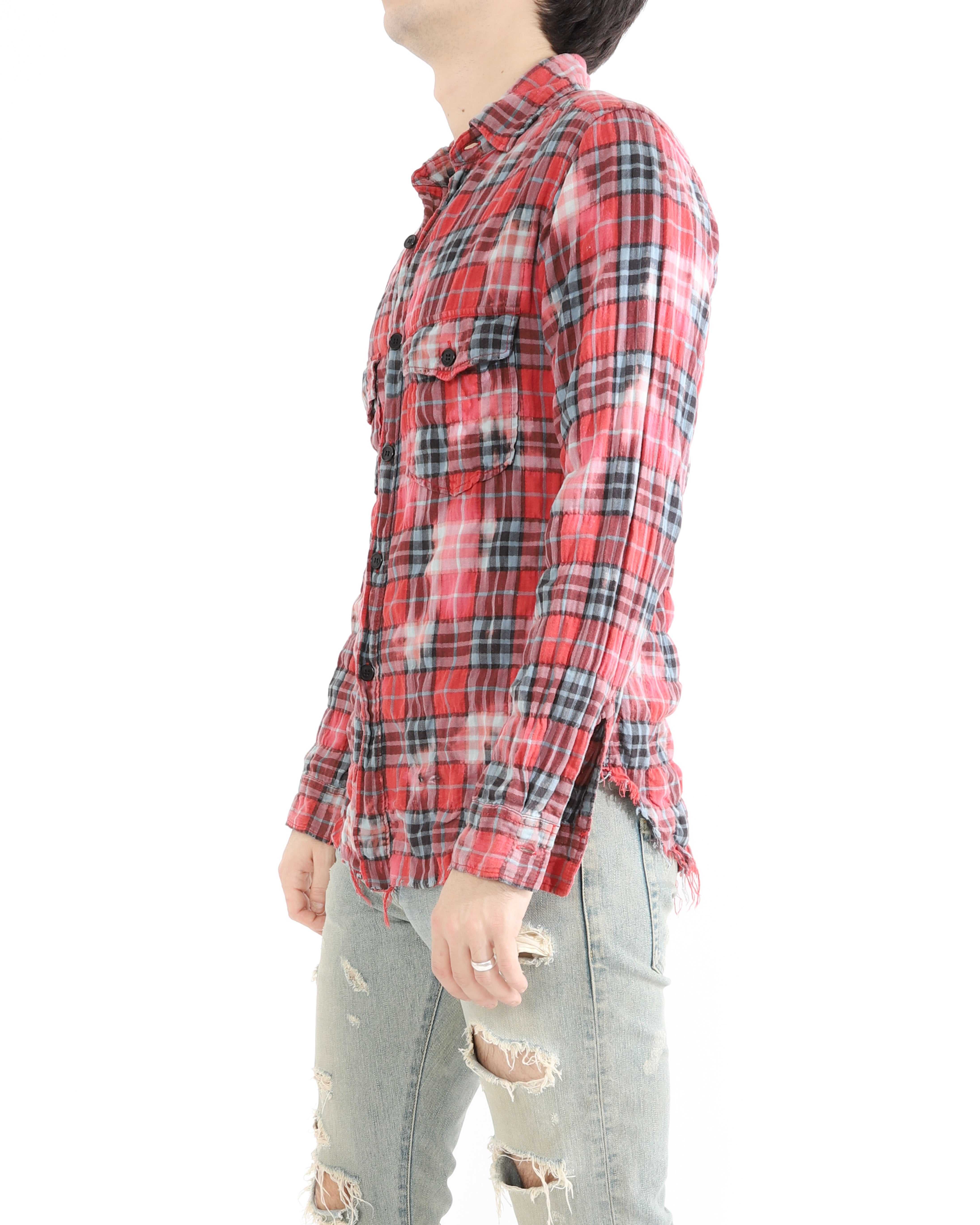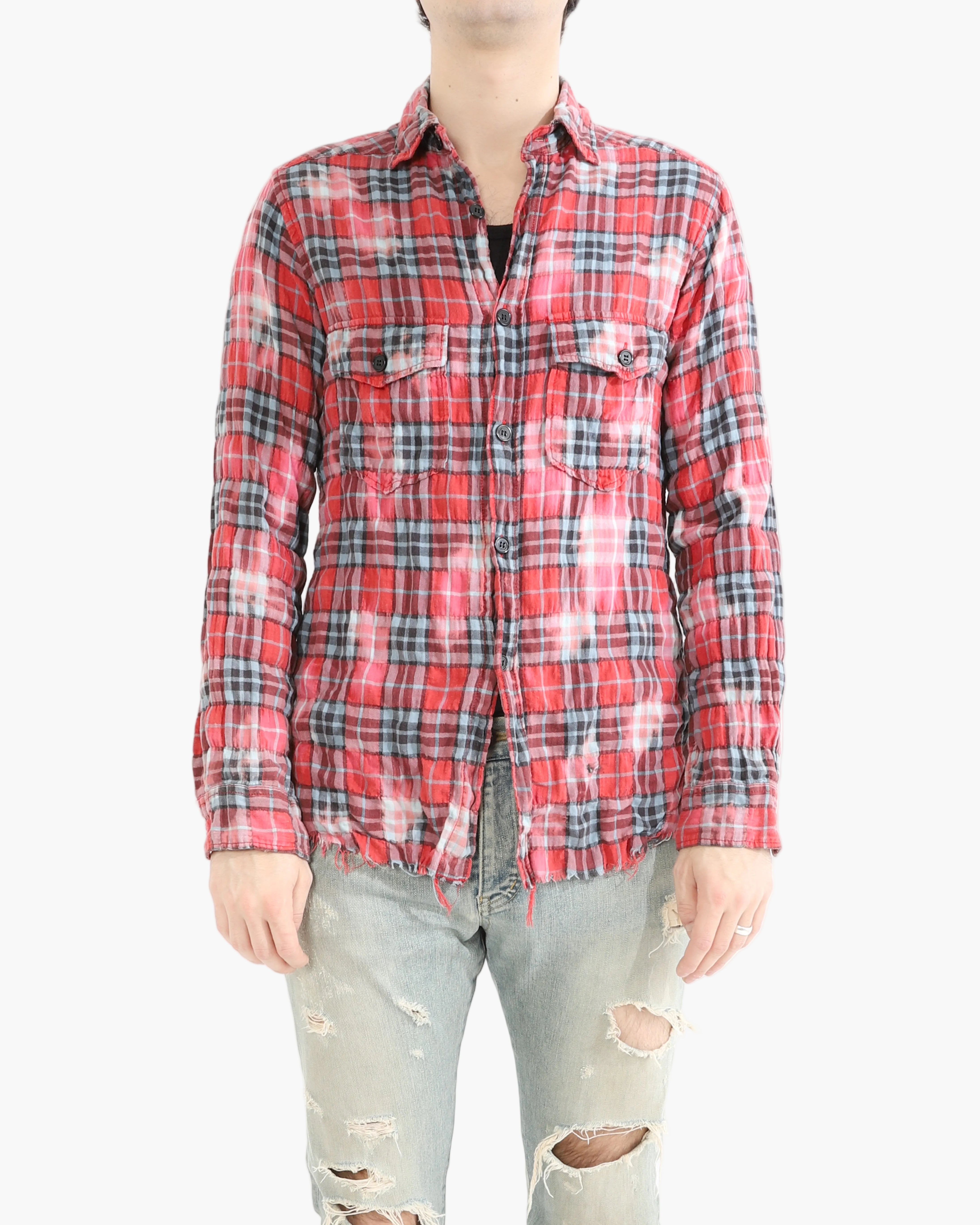 SS16 Distressed Flannel Shirt in Bleached Cotton