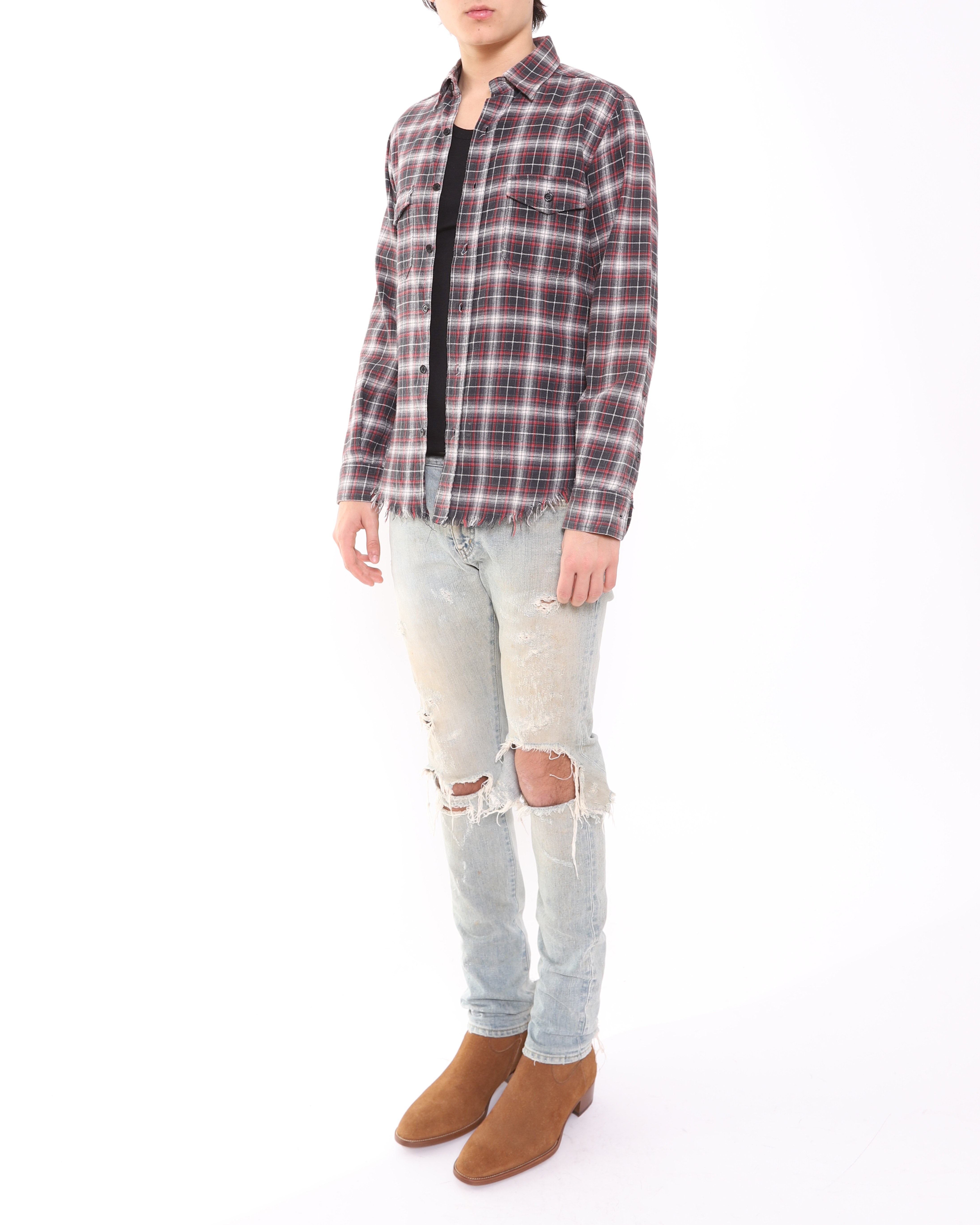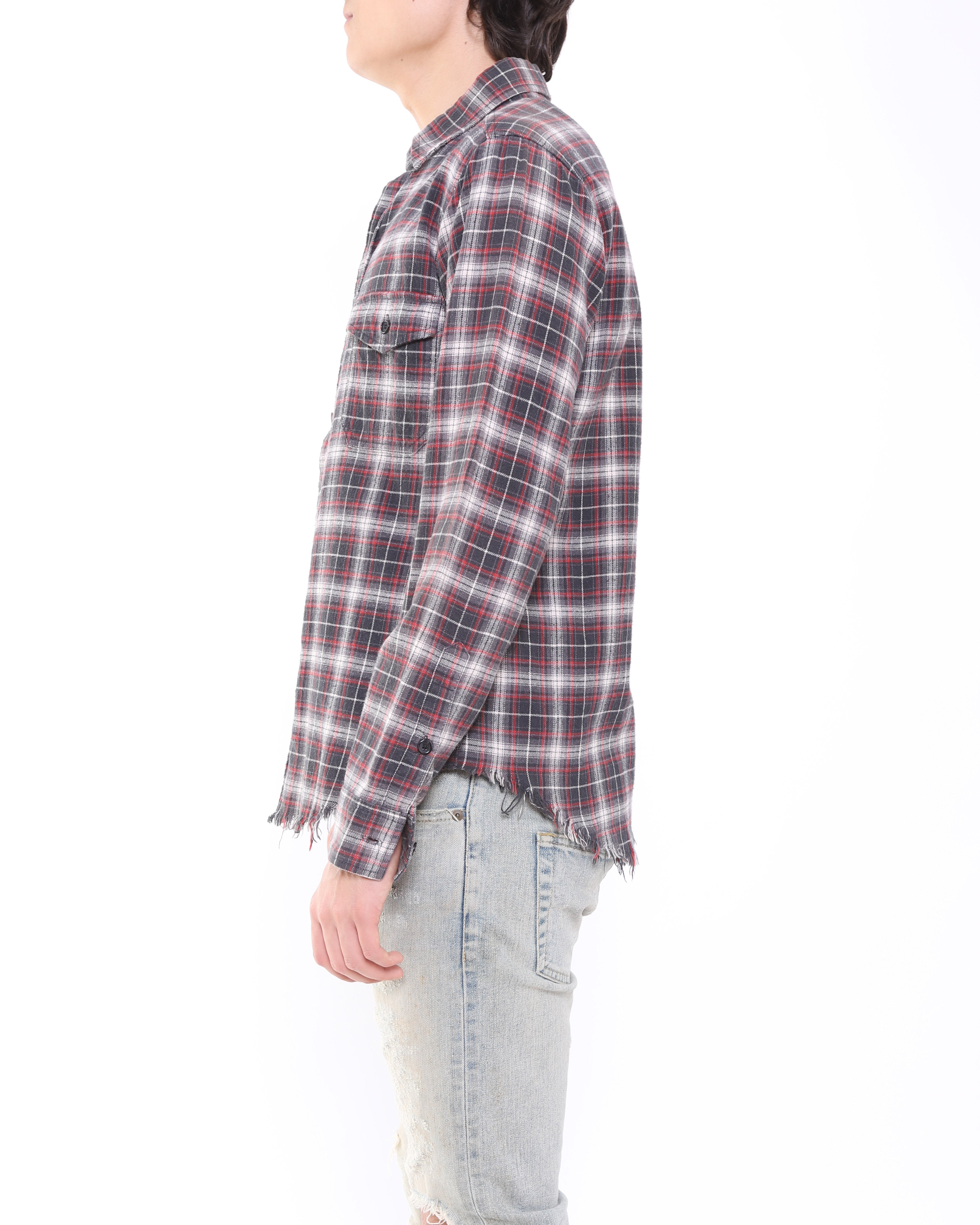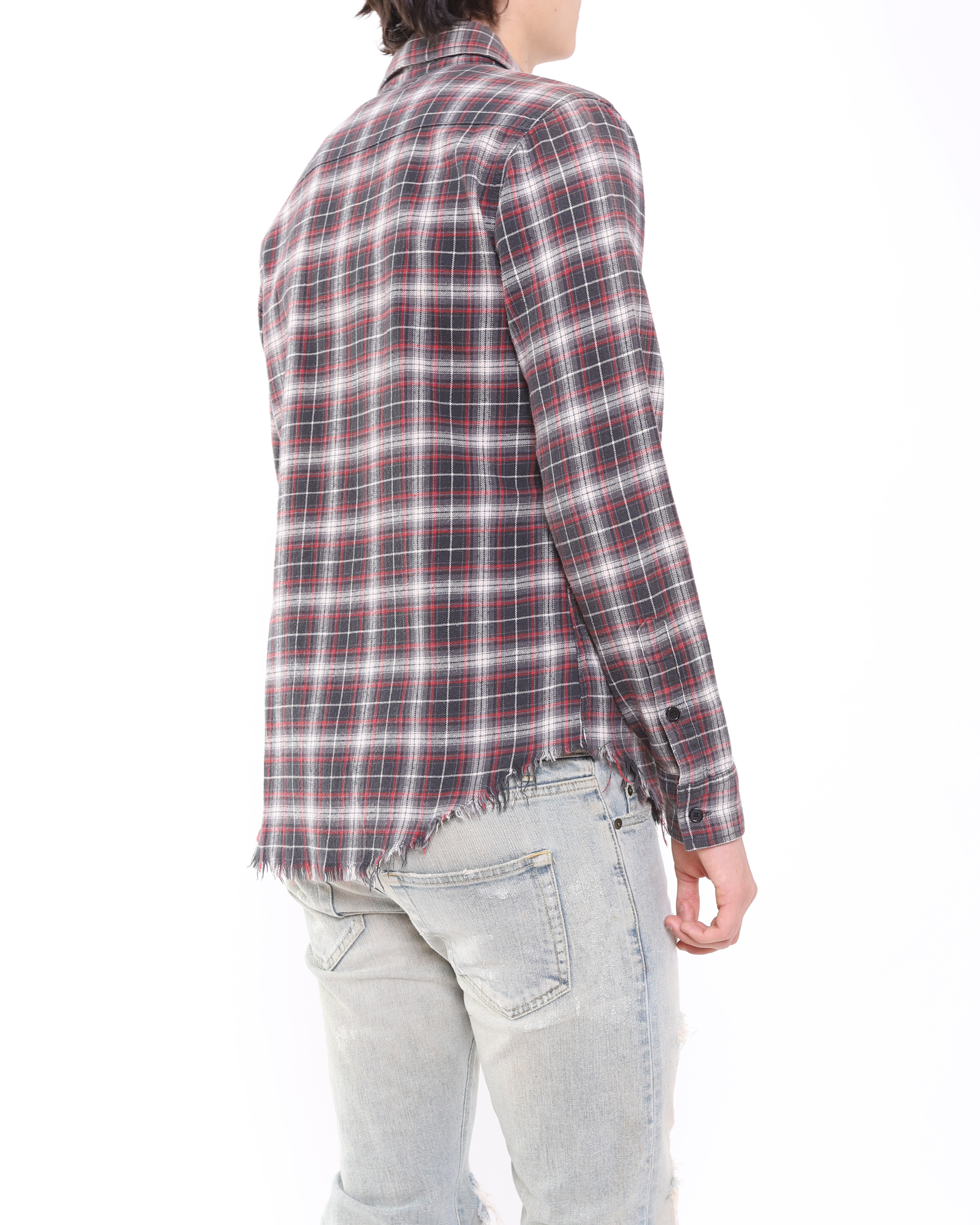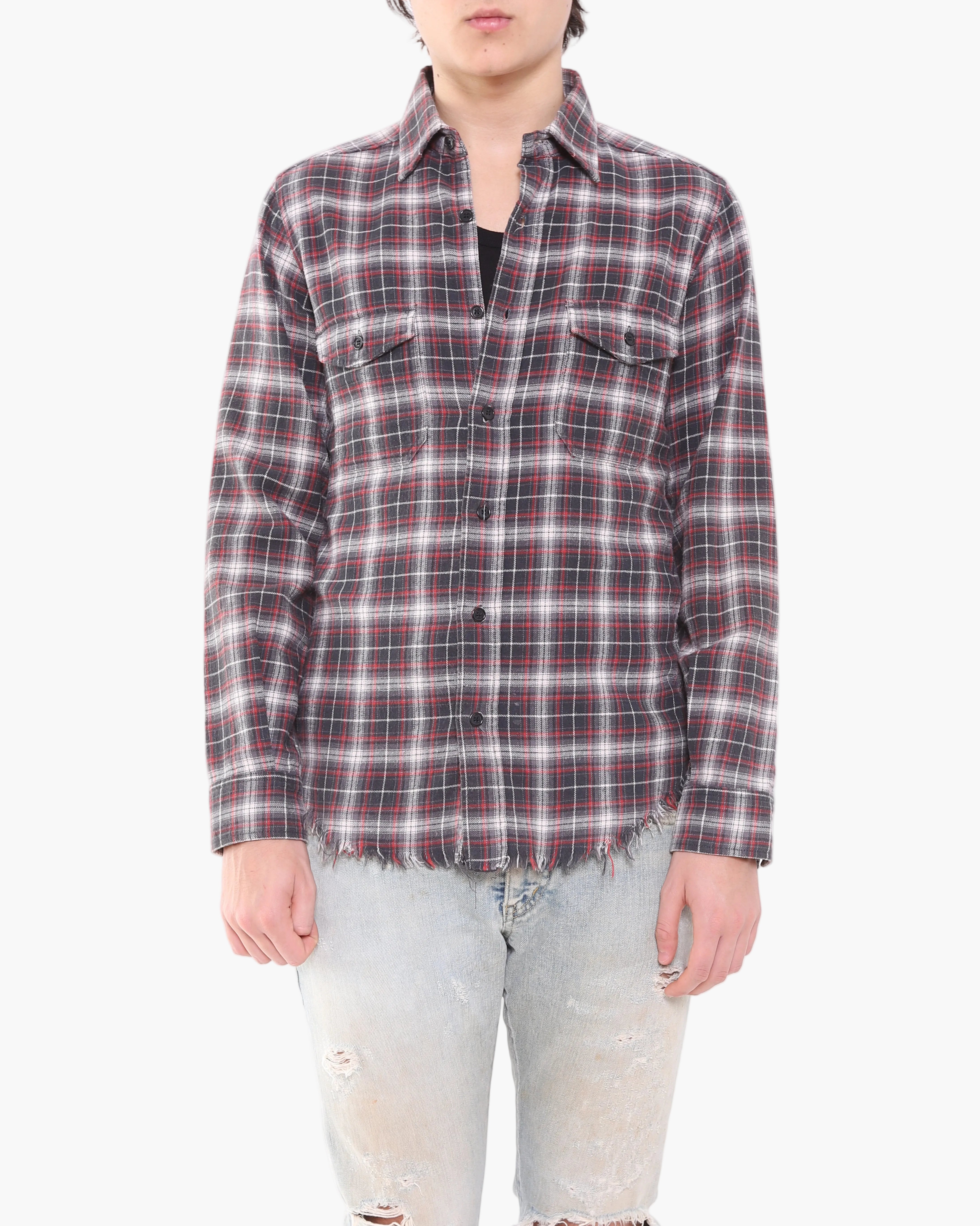 SS16 Distressed Hem Checked Flannel in Grey & Red