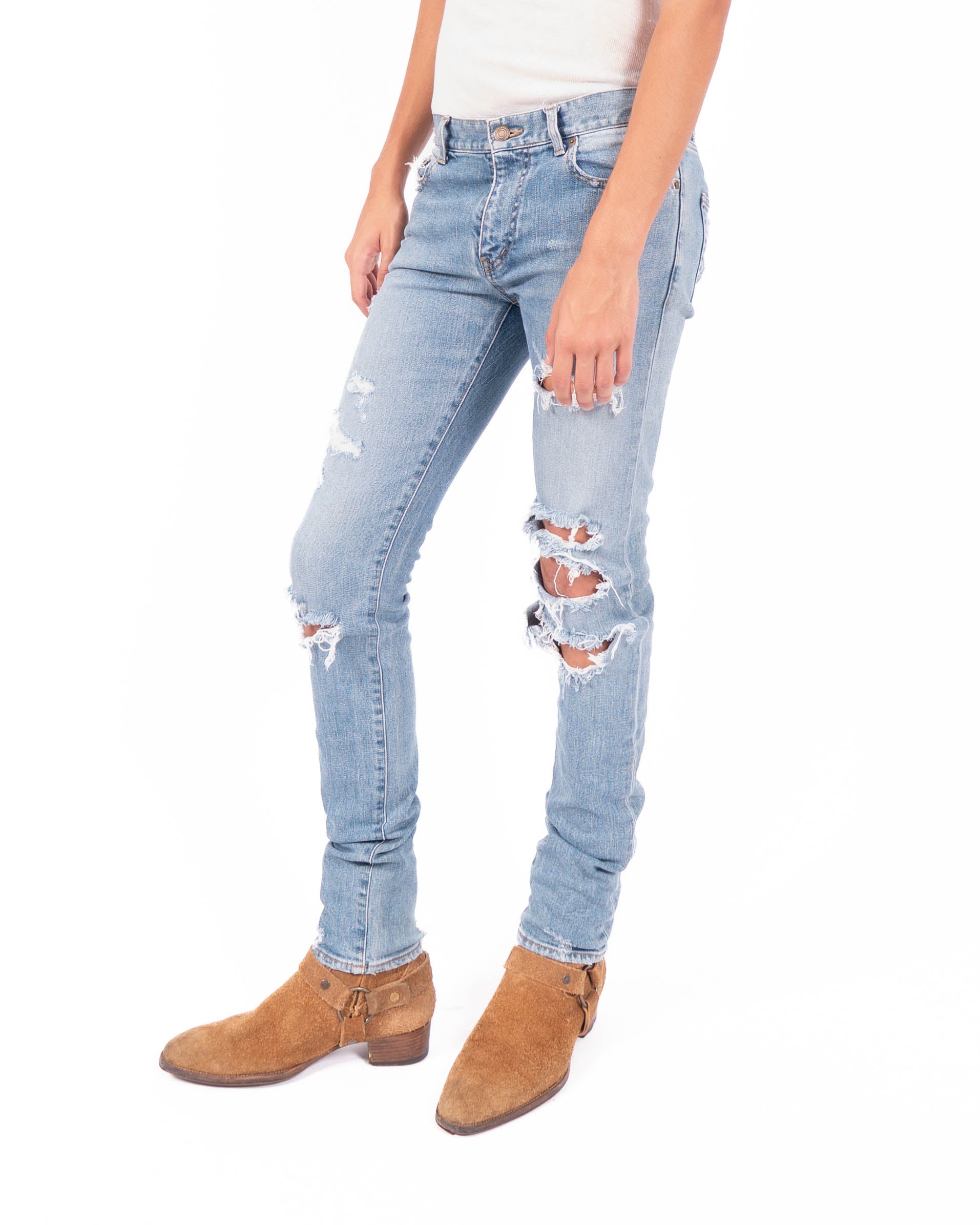 An essential within the SS16 lineup, this piece reflects Slimane’s vision of youth culture and the raw spirit of rock style. A statement of effortless attitude, the jeans remain a key representation of Saint Laurent’s denim legacy.