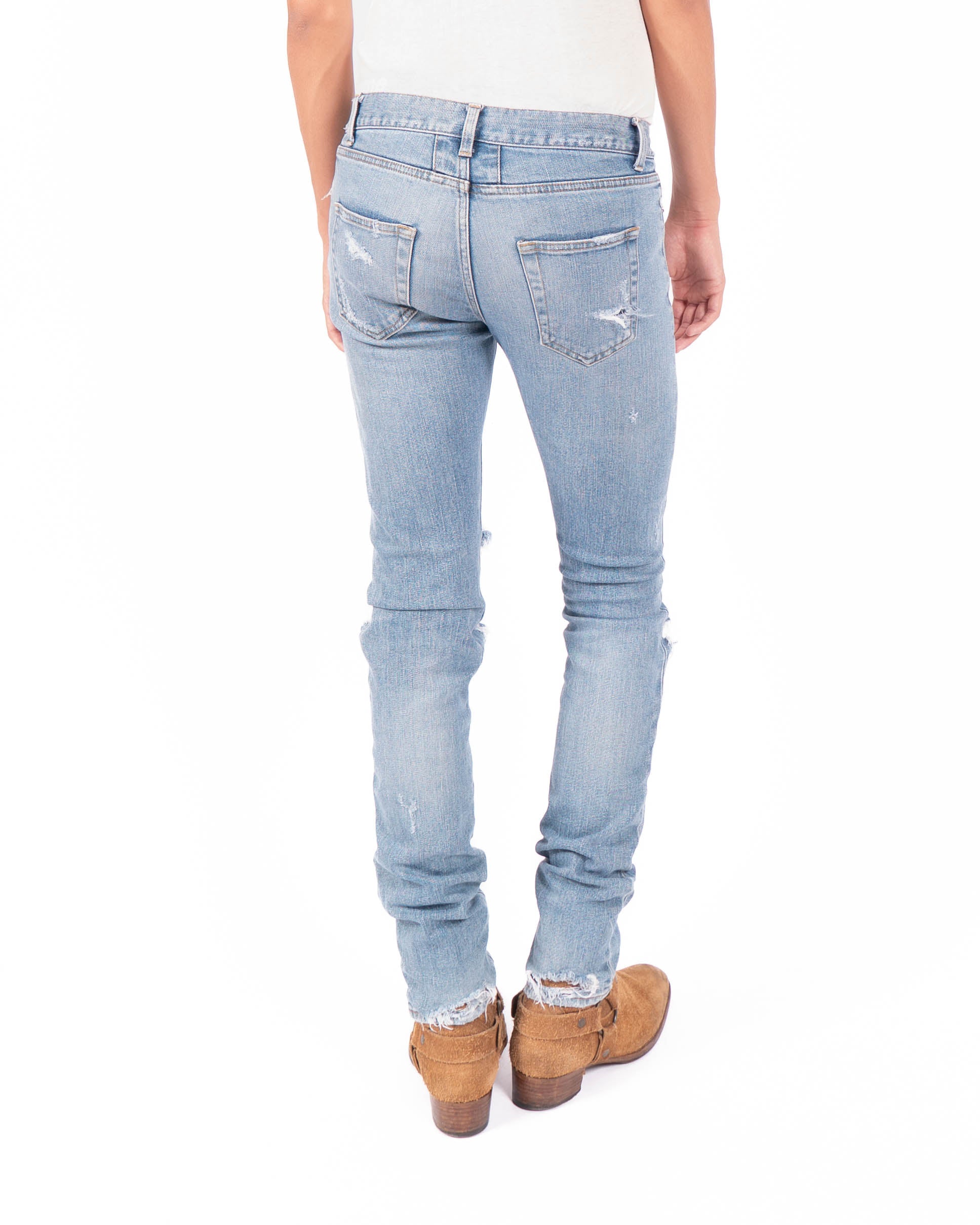 From the Spring Summer 2016 collection, these jeans carry Saint Laurent’s distinctive denim identity under Hedi Slimane. Cut in the D02 skinny silhouette, the fit is slim and elongated, finishing with a narrow ankle for a sharp profile.