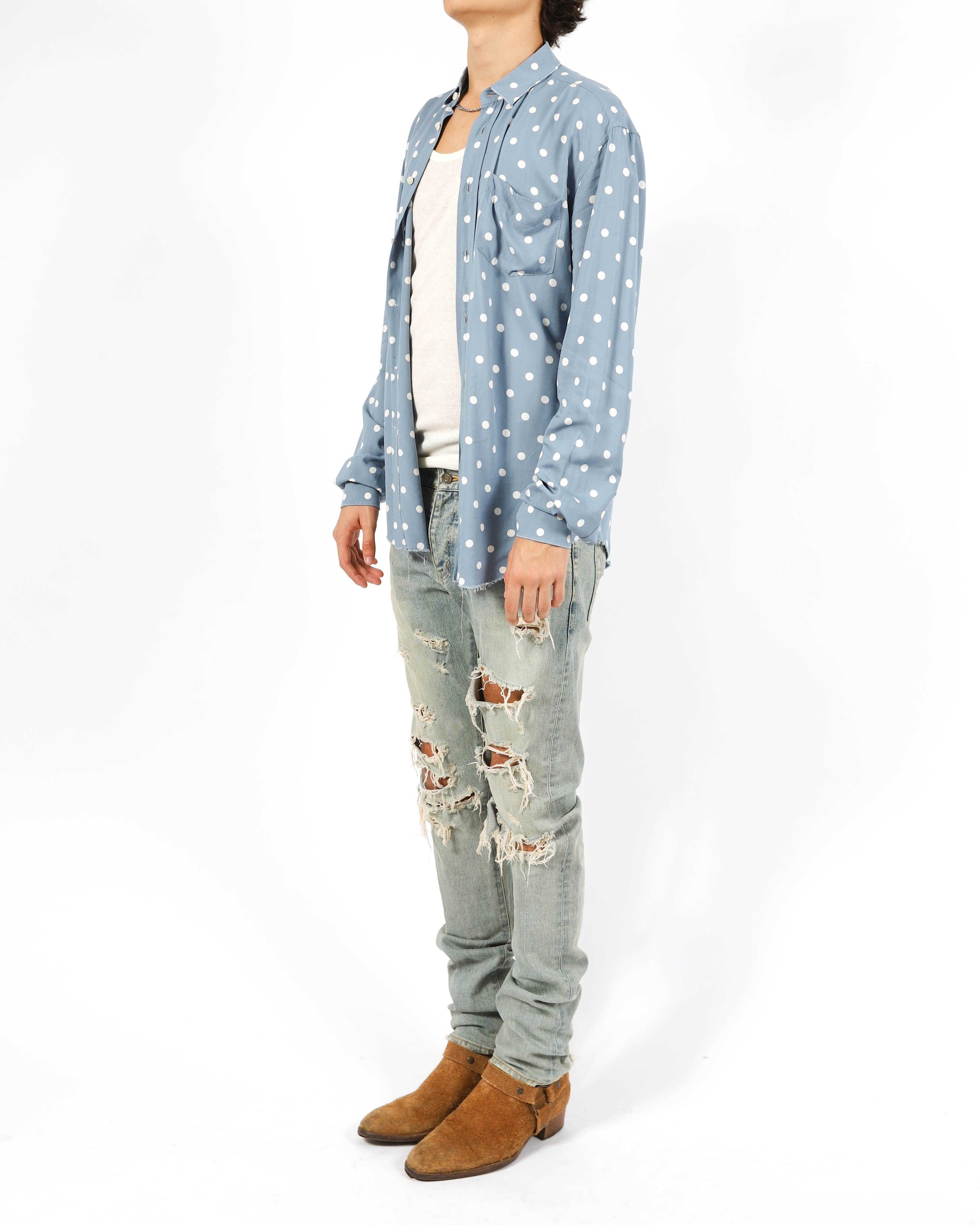 SS16 Raw Hemd Polka Dot in Light Blue Viscose